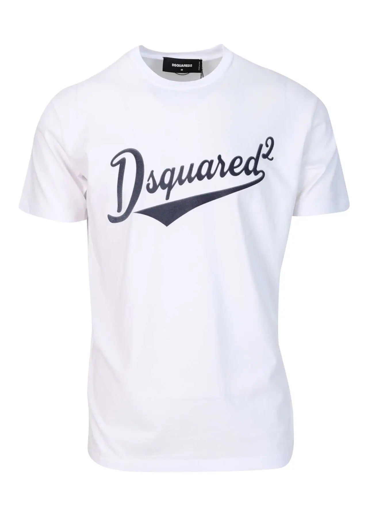 Camiseta blanca con maxilogo "dsquared2" vintage -