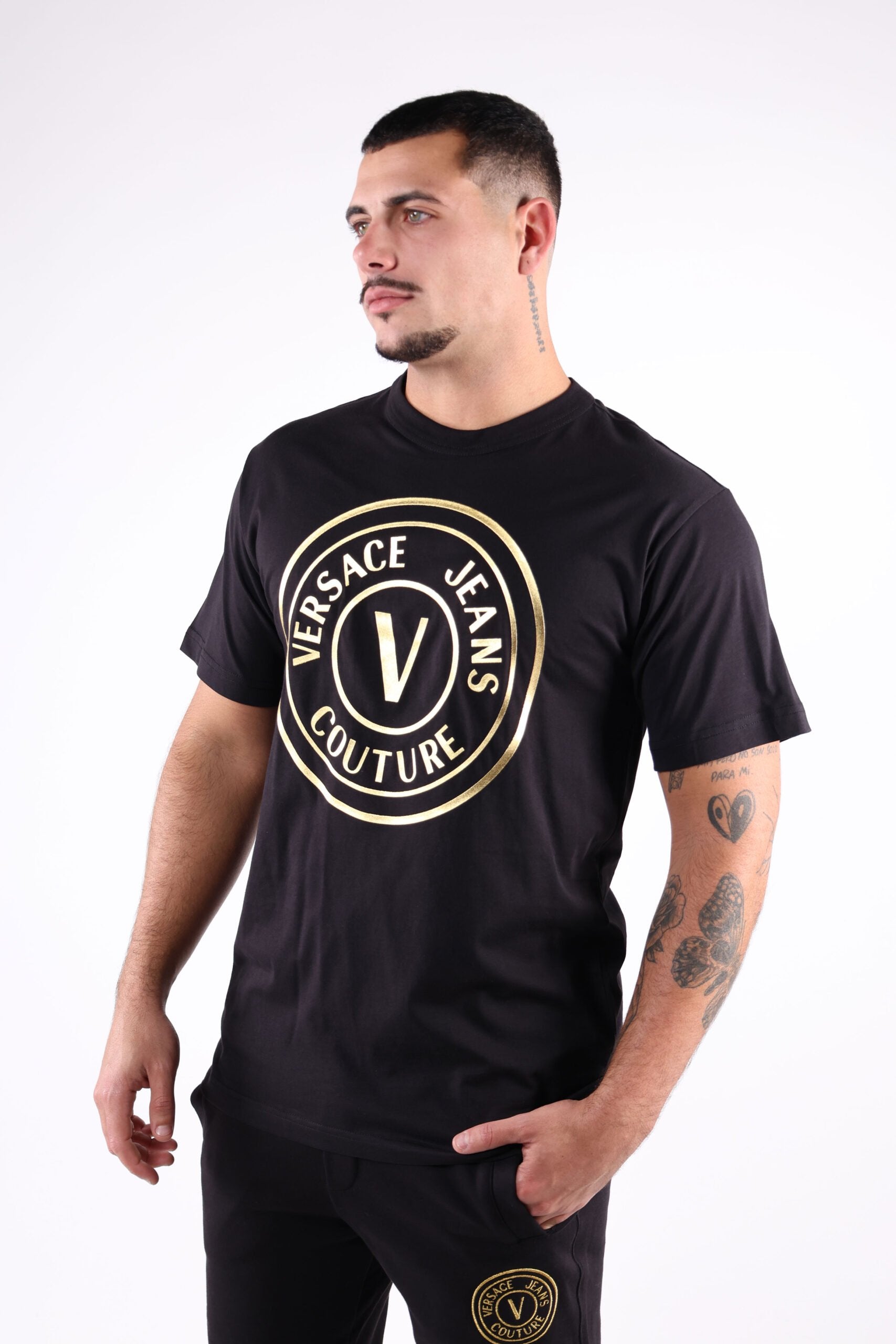 Samarreta negra amb maxil·logo "v-emblem" daurat - M -