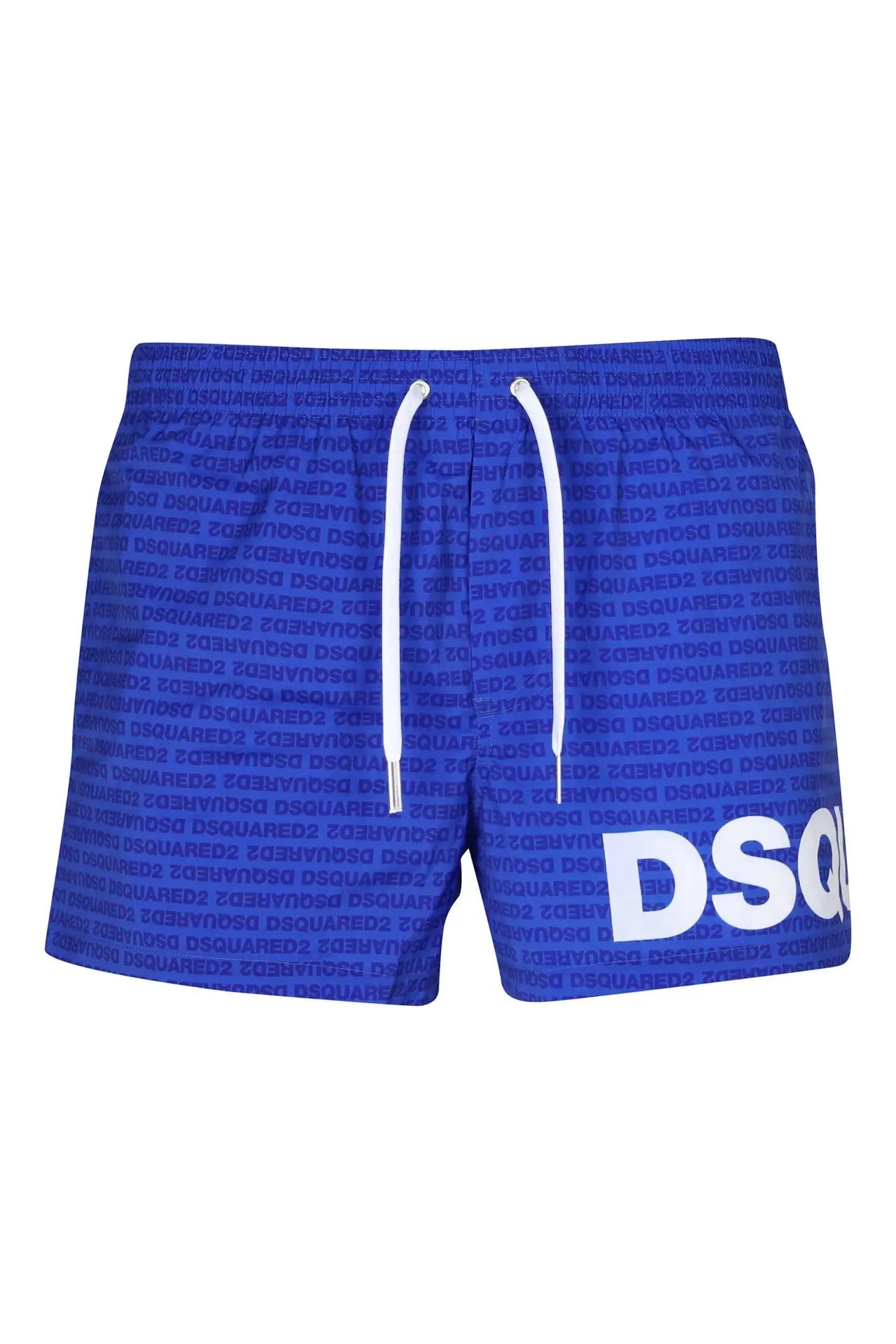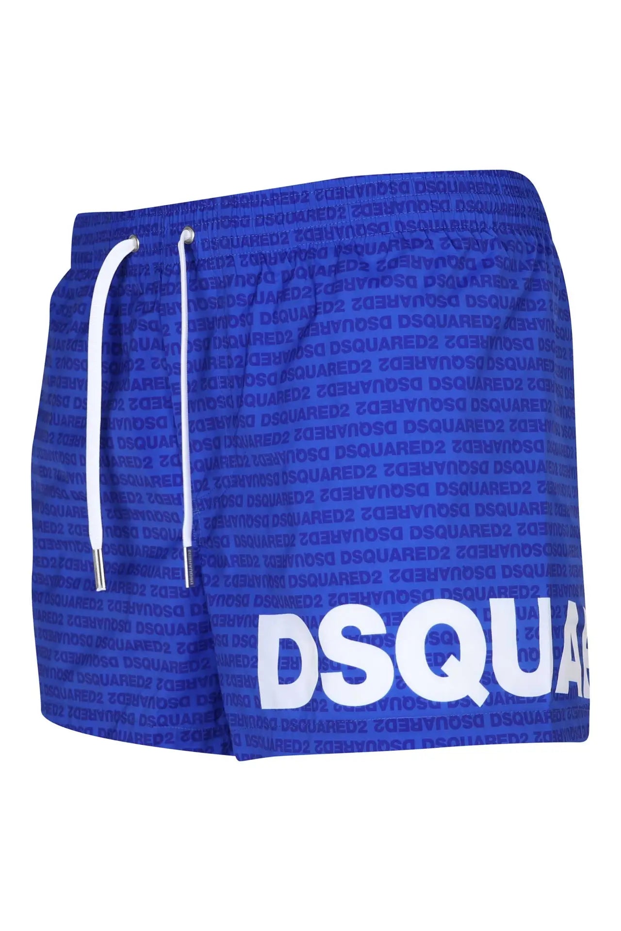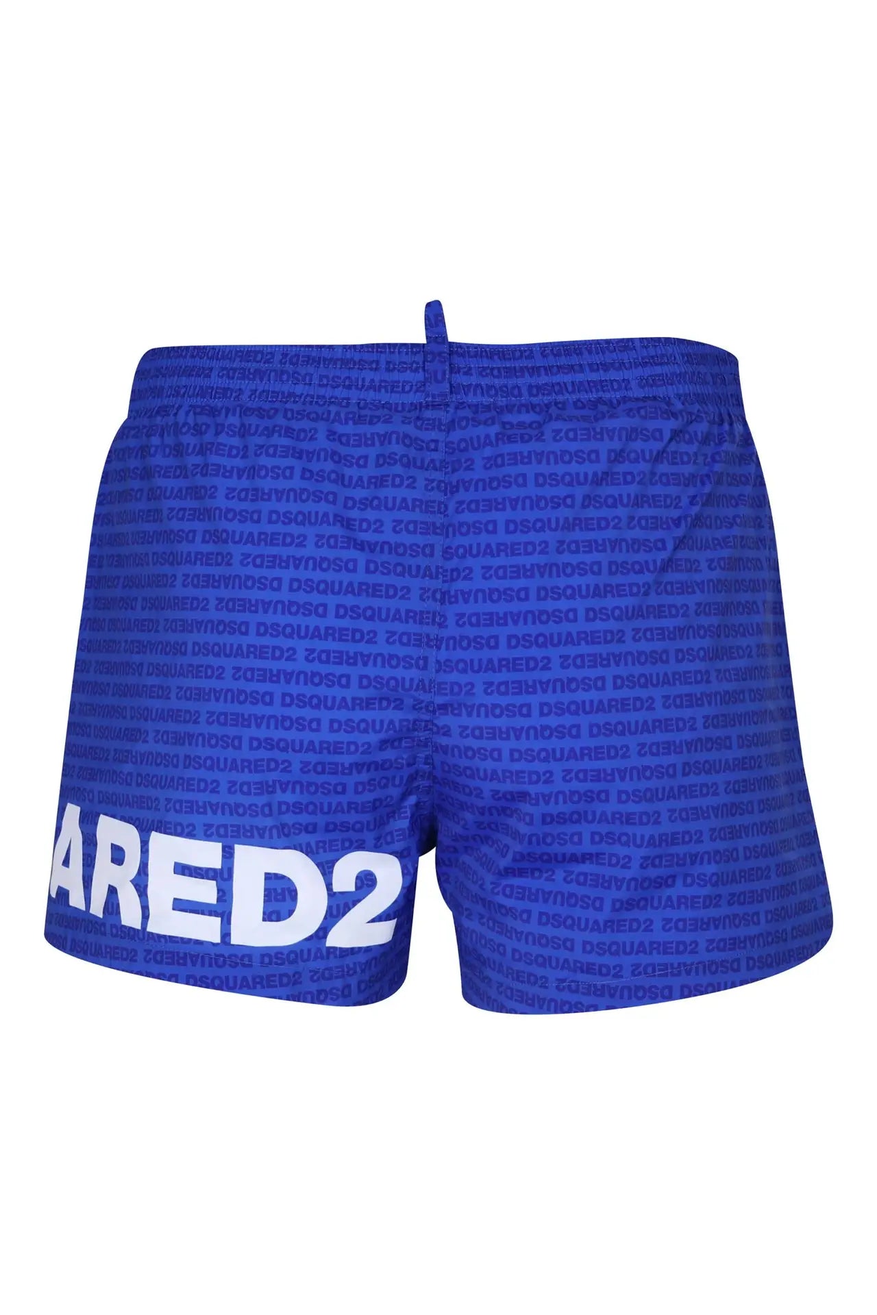 Bañador azul midi "all over logo" monocromático y con maxilogo "dsquared2" blanco -
