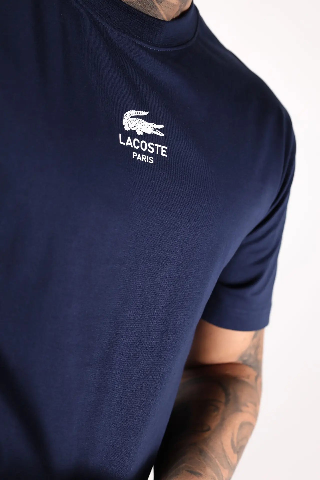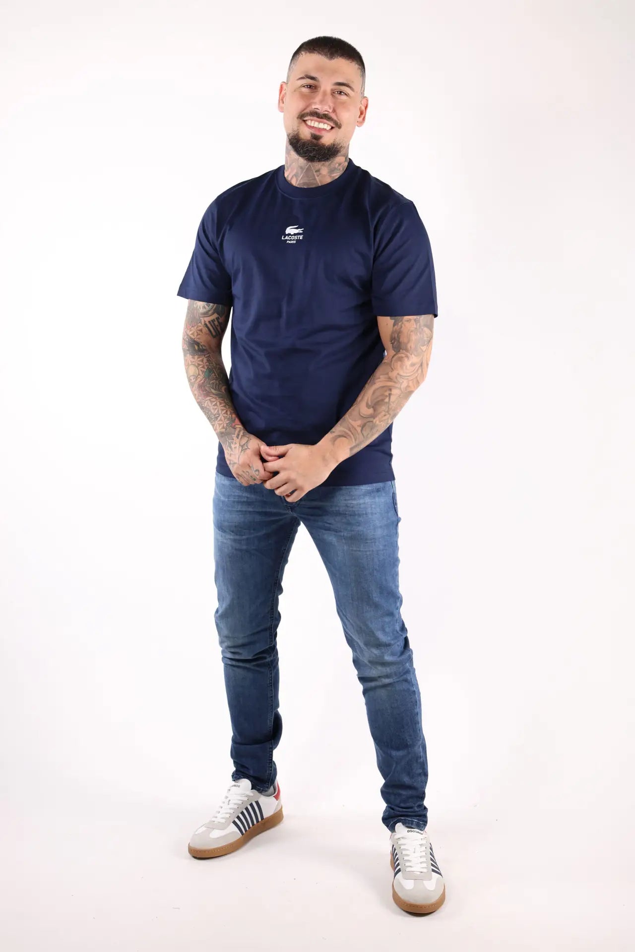 Camiseta azul oscura con minilogo "lacoste paris" centrado -