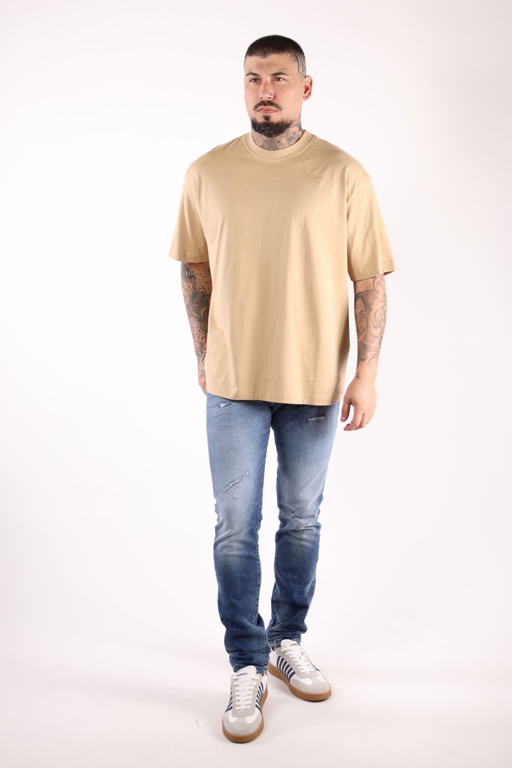 Samarreta beix amb maxil·logo "megoval-D" darrere - M -