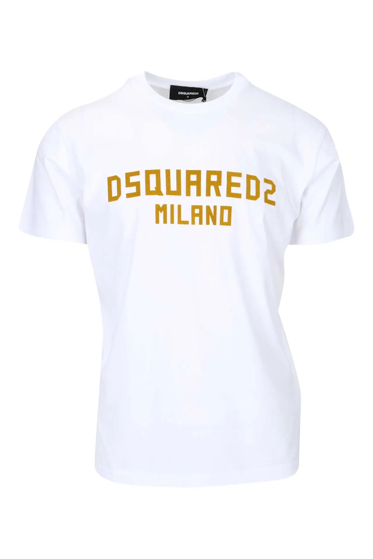 Camiseta blanca con maxilogo "dsquared2 milano" en amarilla -