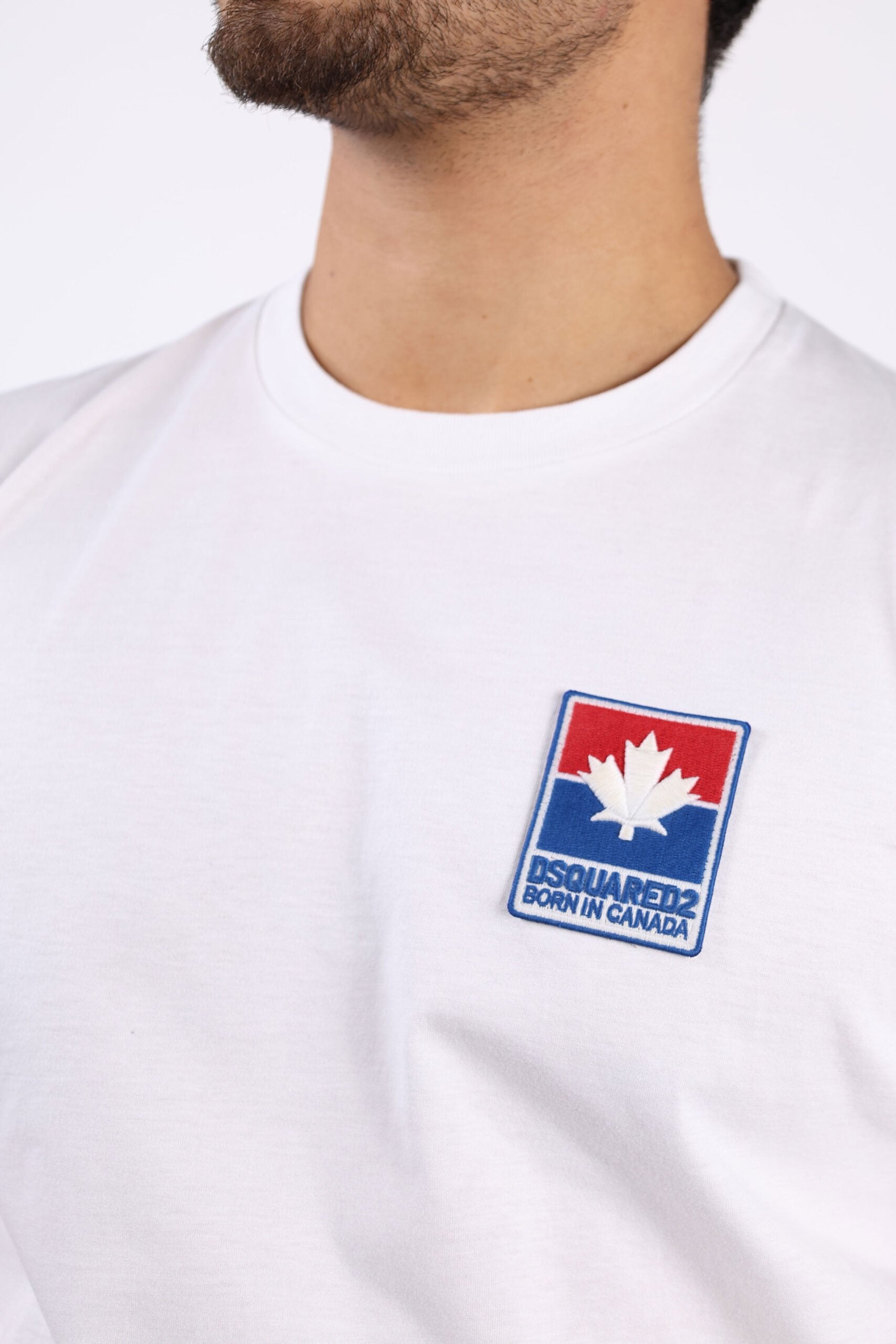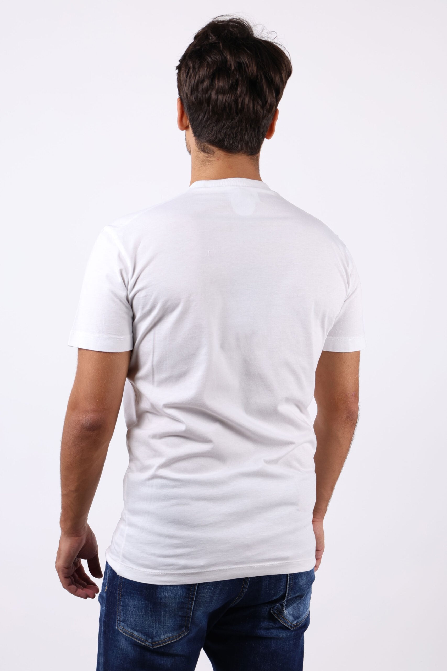 Samarreta blanca amb minilogo fulla en contrast blau i vermell - S -