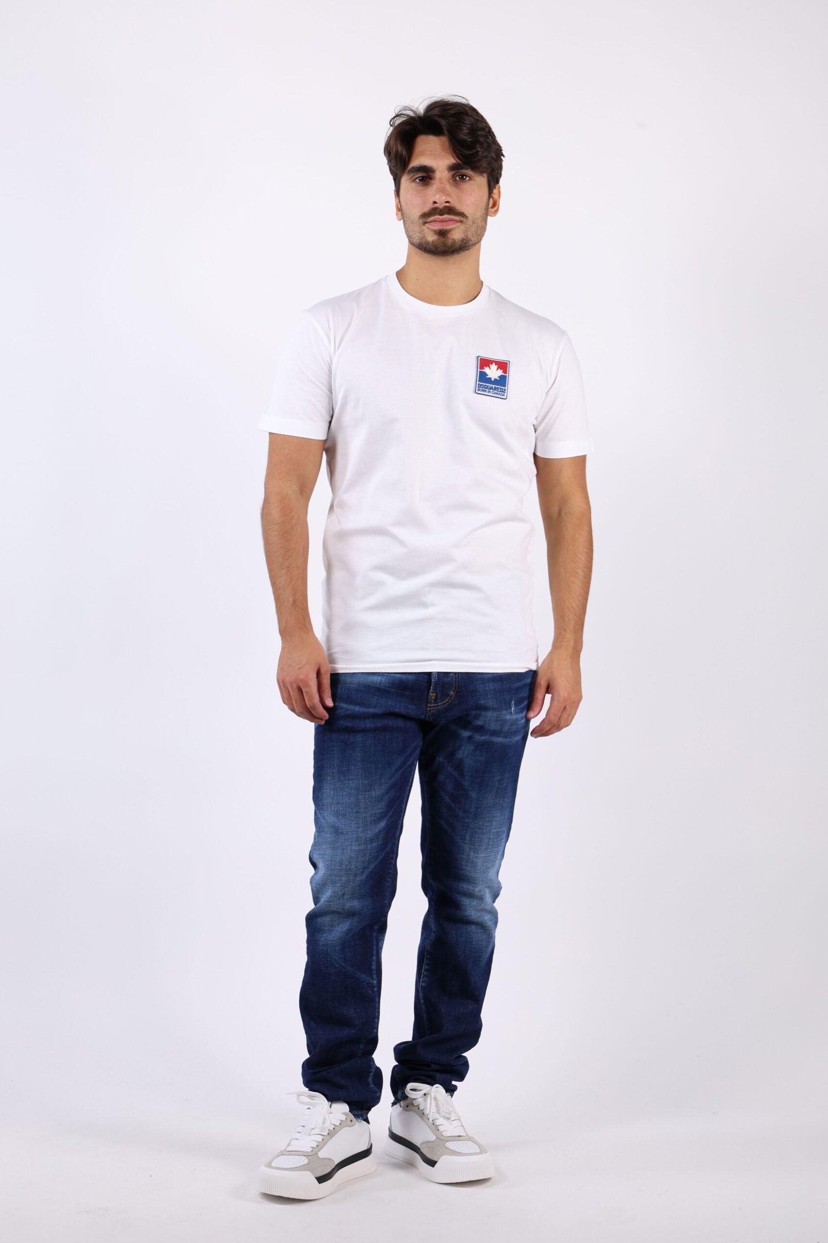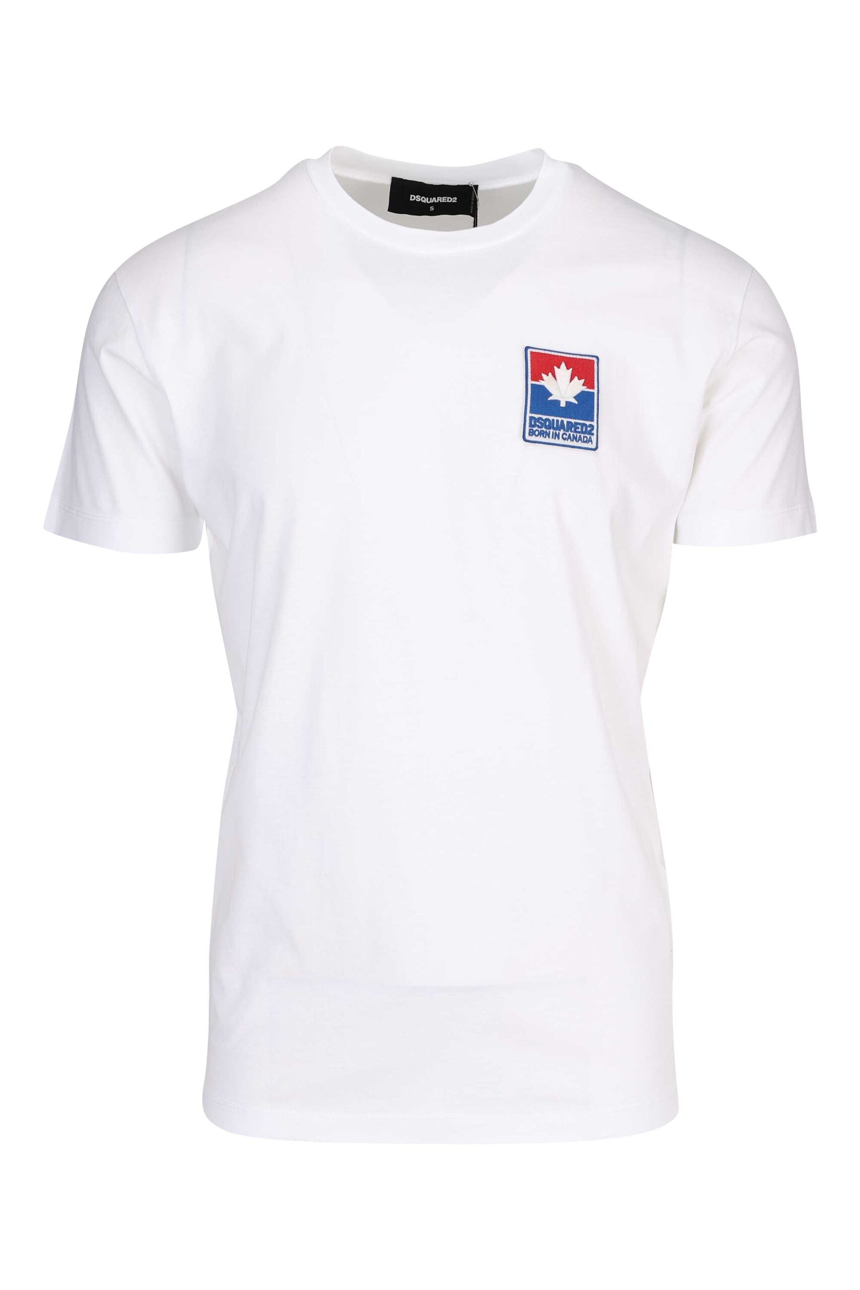 Samarreta blanca amb minilogo fulla en contrast blau i vermell - XL -
