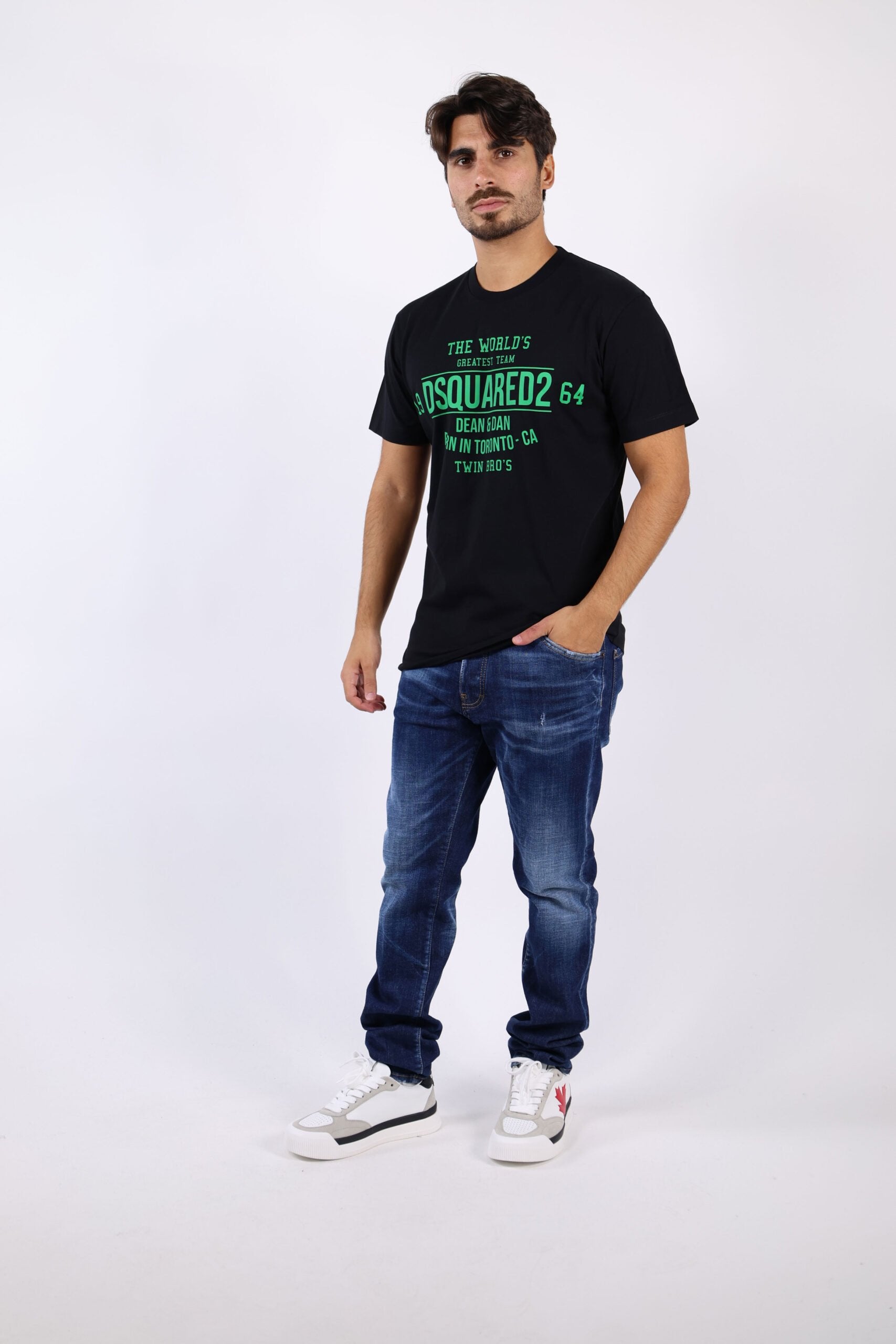 Samarreta negra amb maxil·logo "dsquared" en verd - L