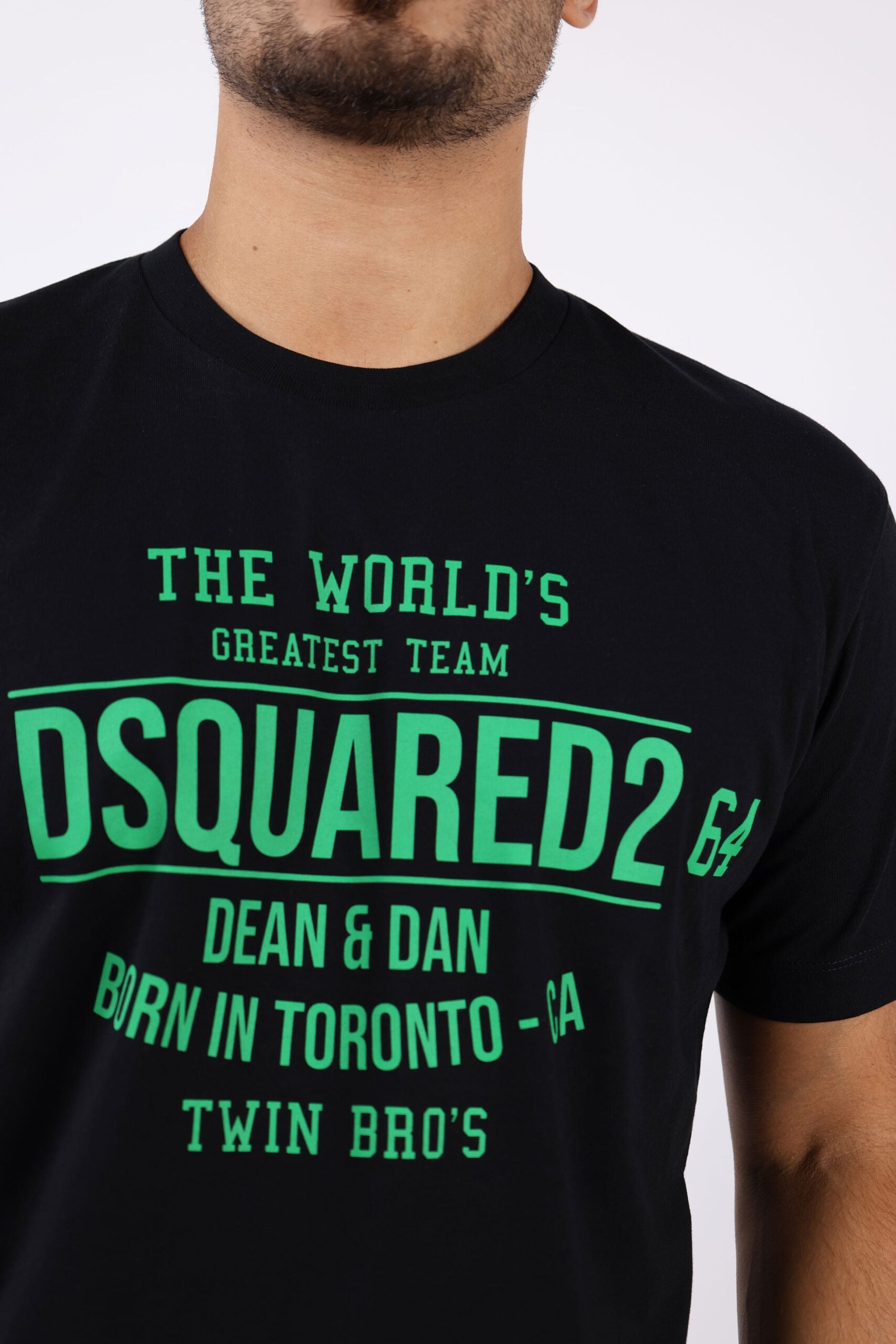 Samarreta negra amb maxil·logo "dsquared" en verd - L -