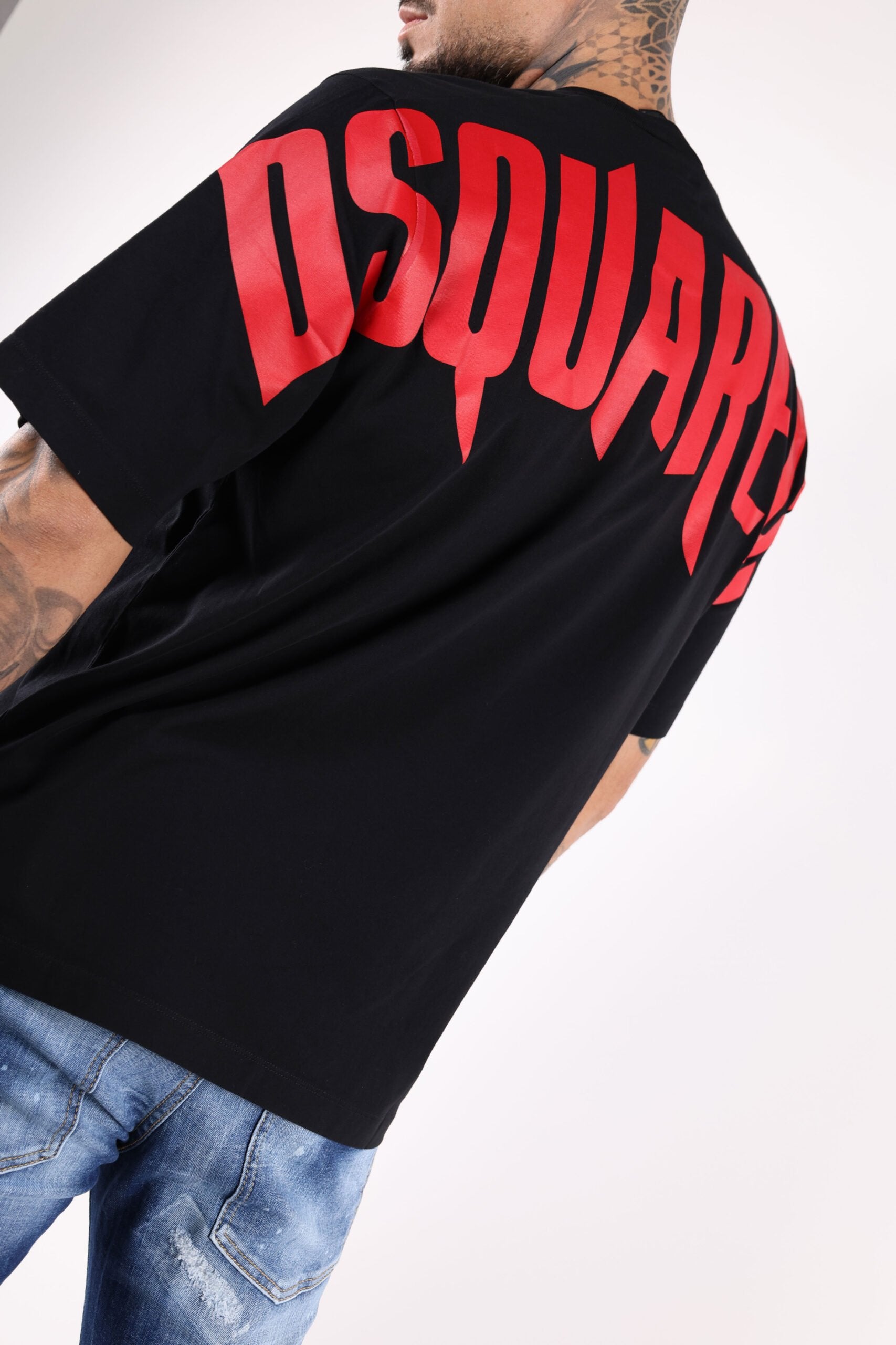 Samarreta negra "Oversize" amb maxil·log vermell a l'esquena - L