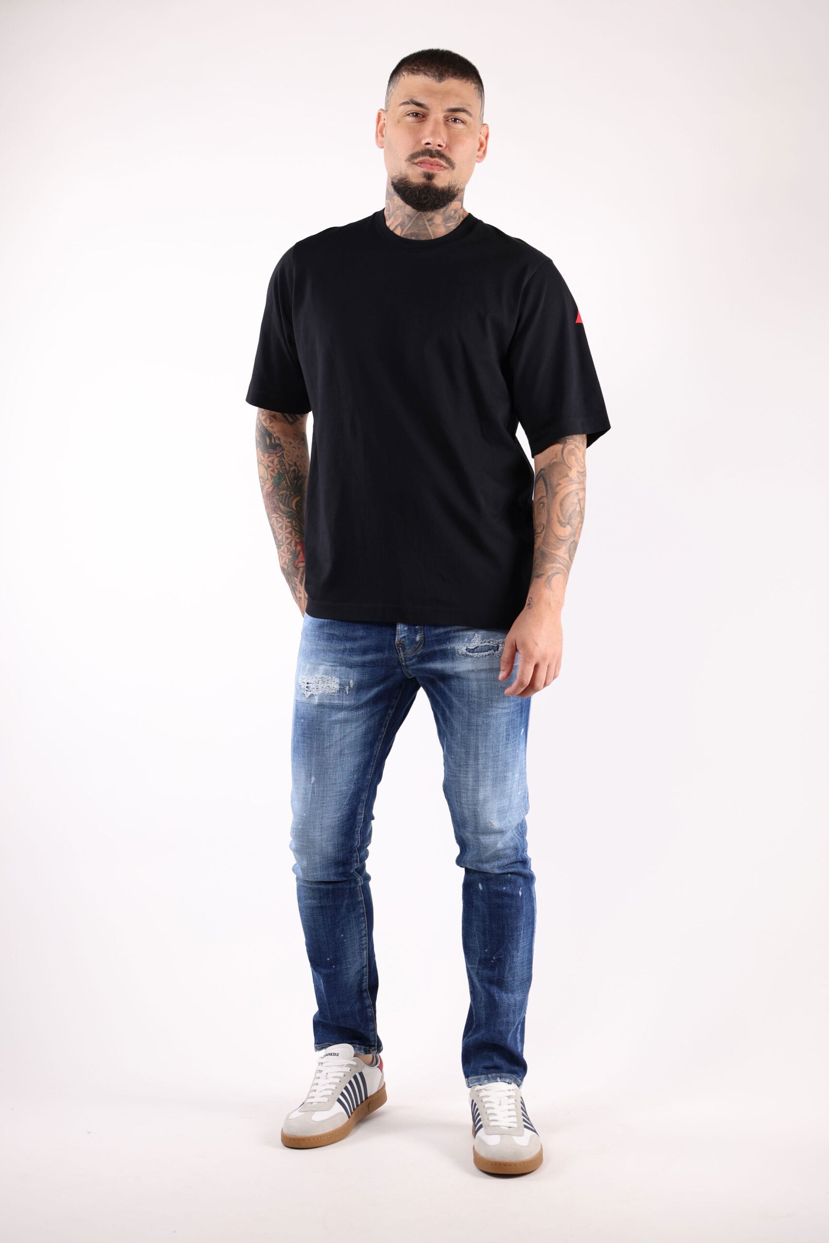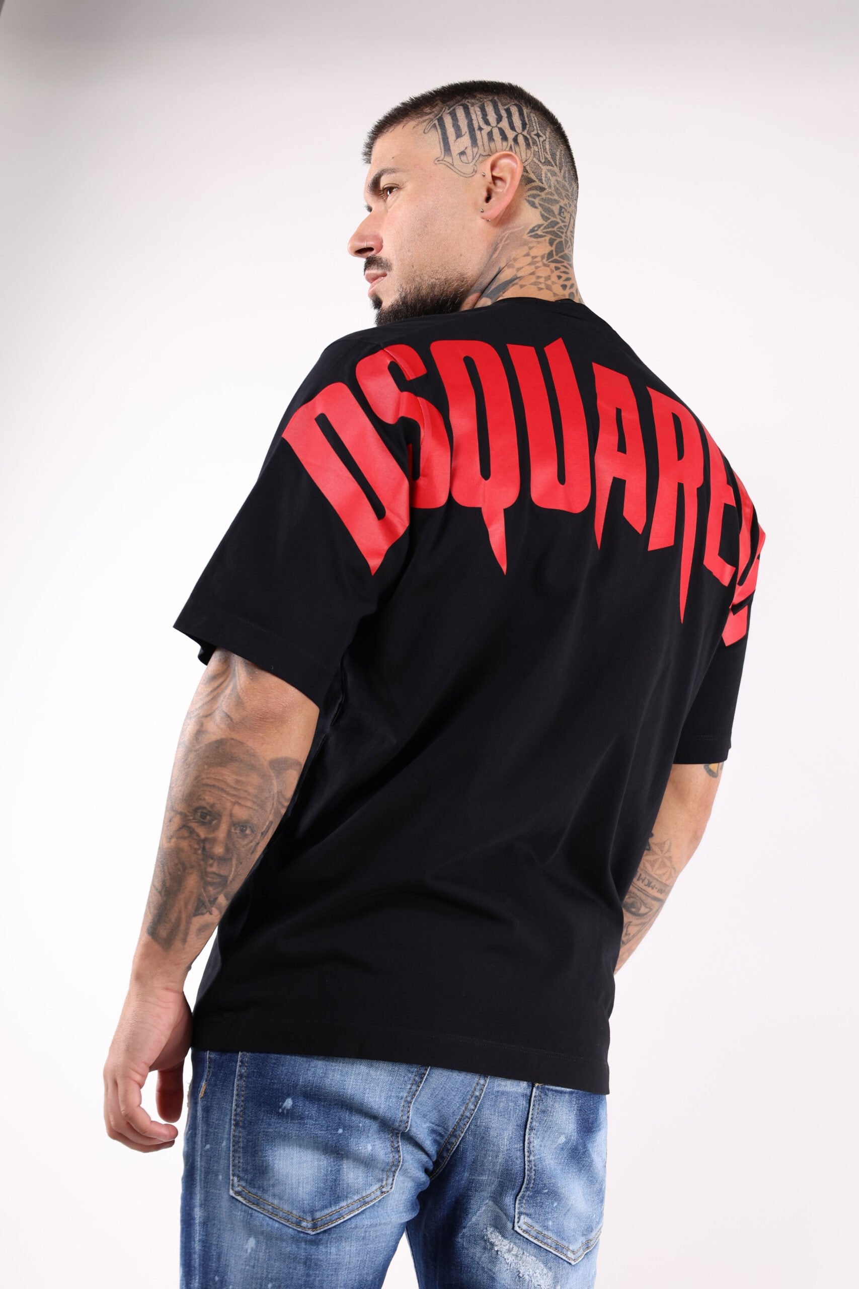 Samarreta negra "Oversize" amb maxil·log vermell a l'esquena - S
