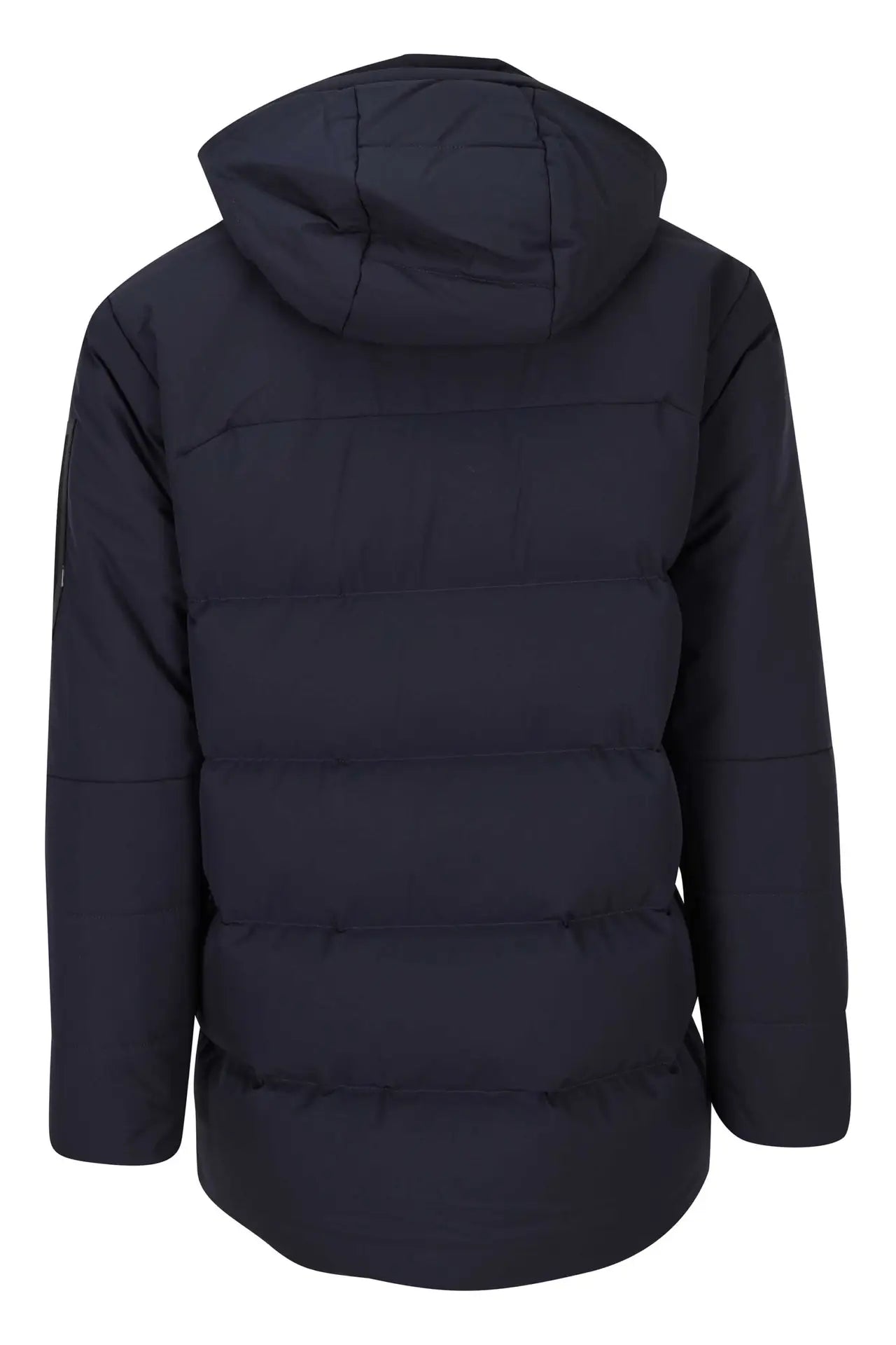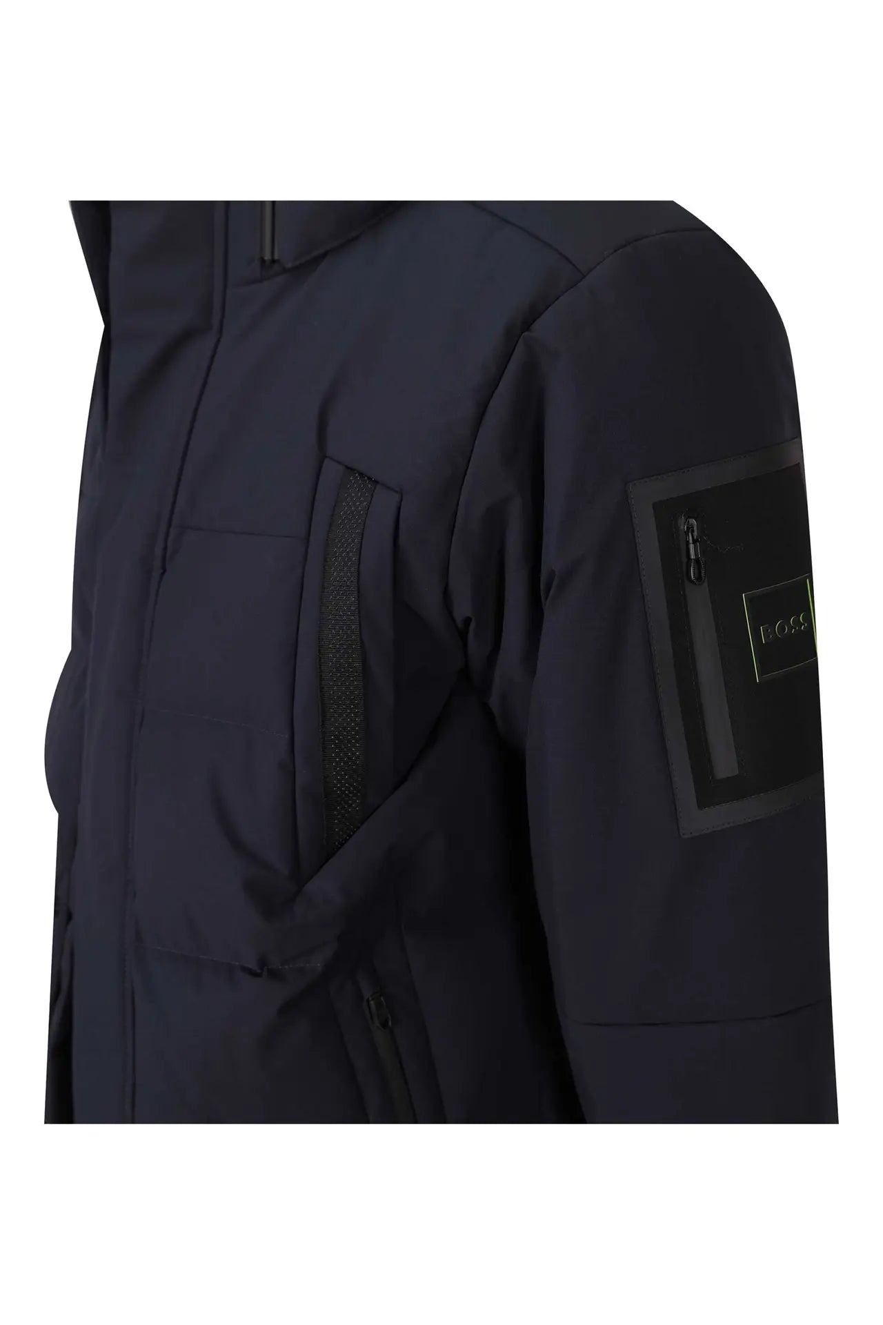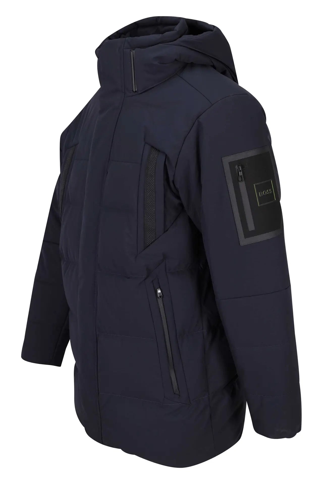 Parka azul oscura con capucha y minilogo "boss" - S -