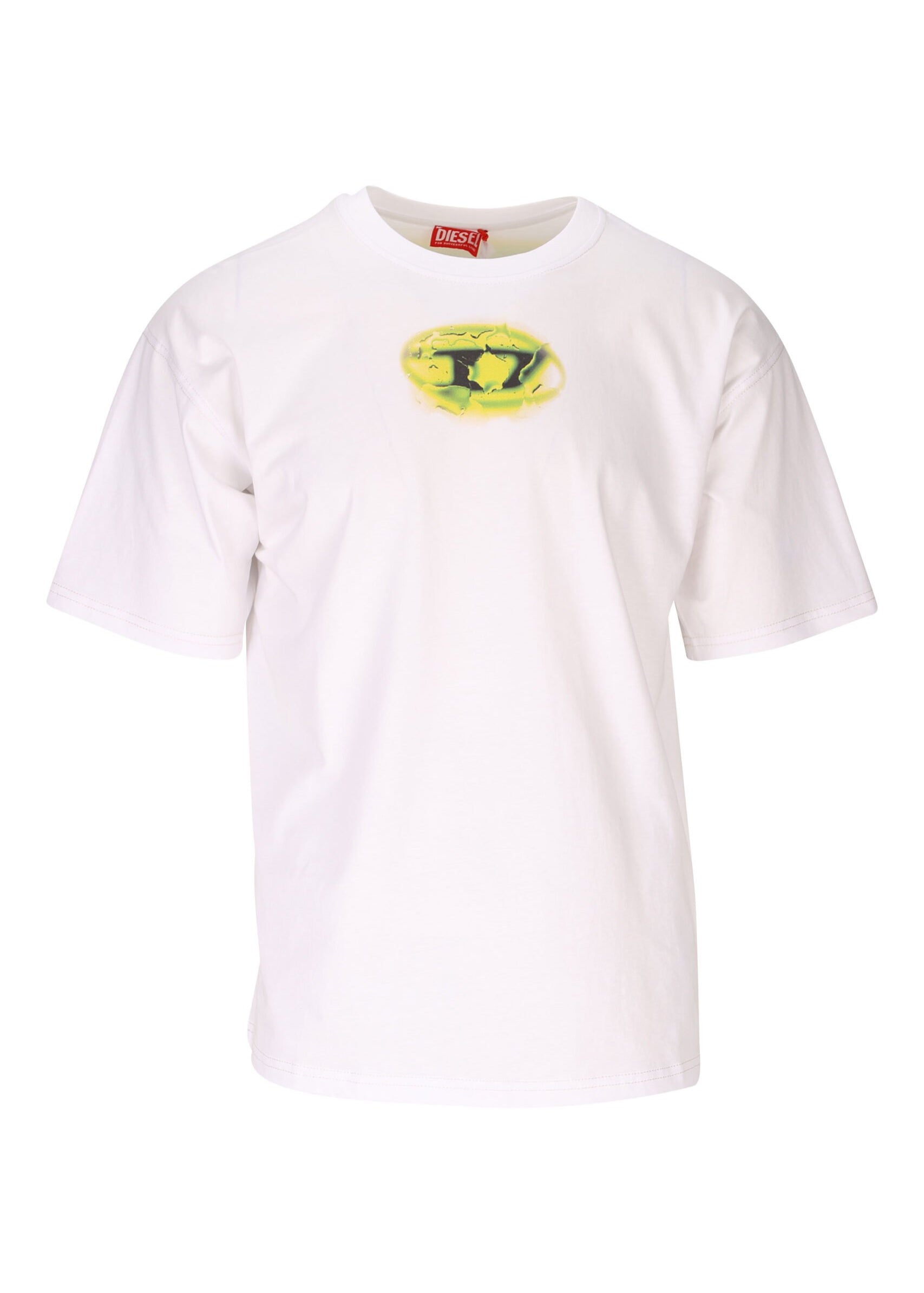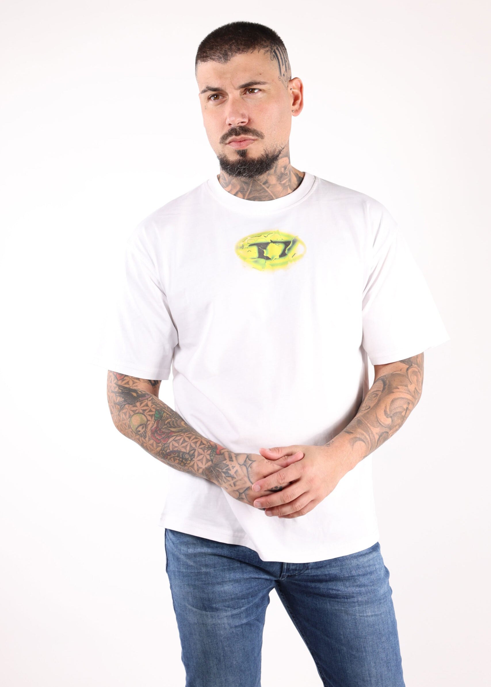 Camiseta blanca con minilogo circular brillante dorado - XL
