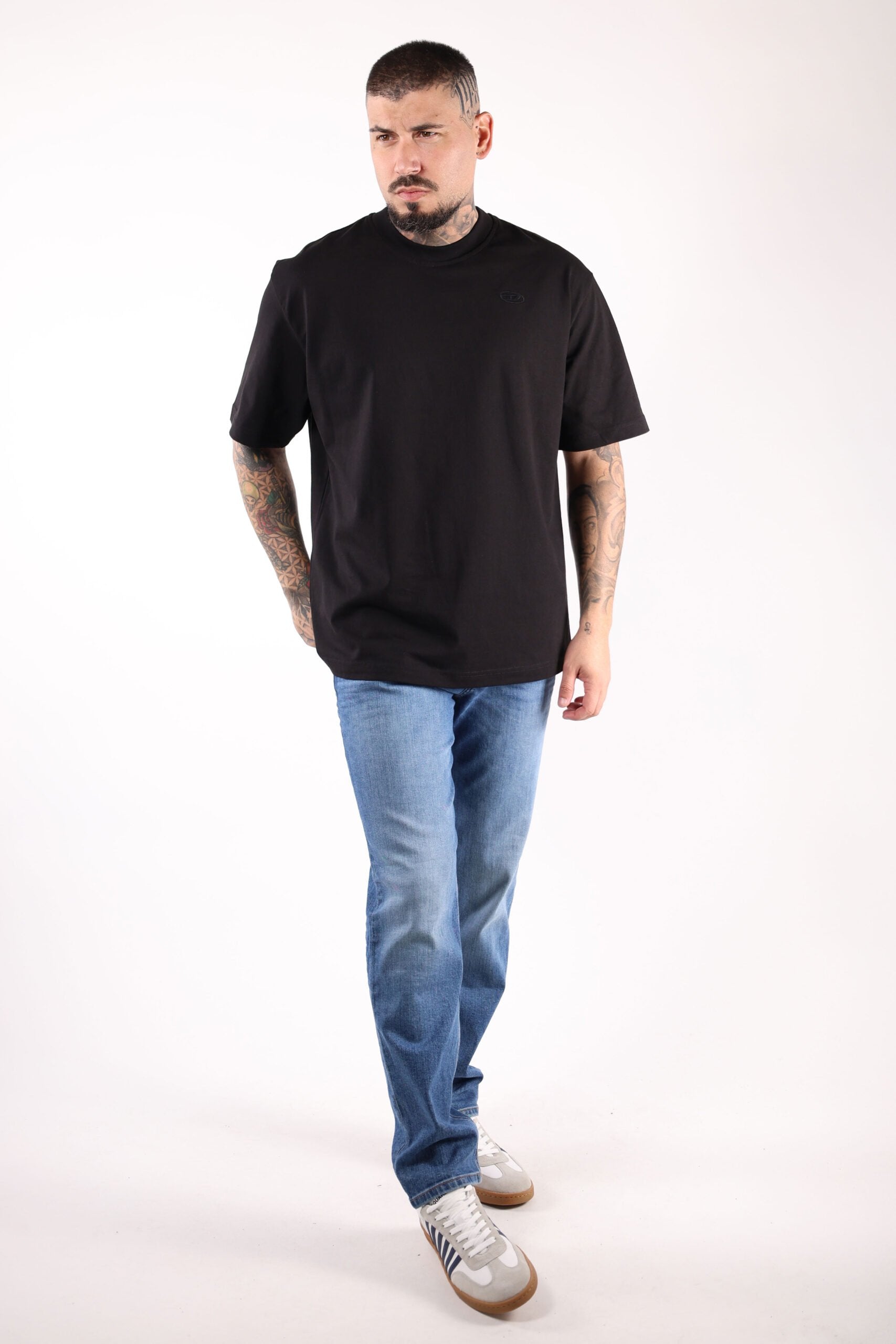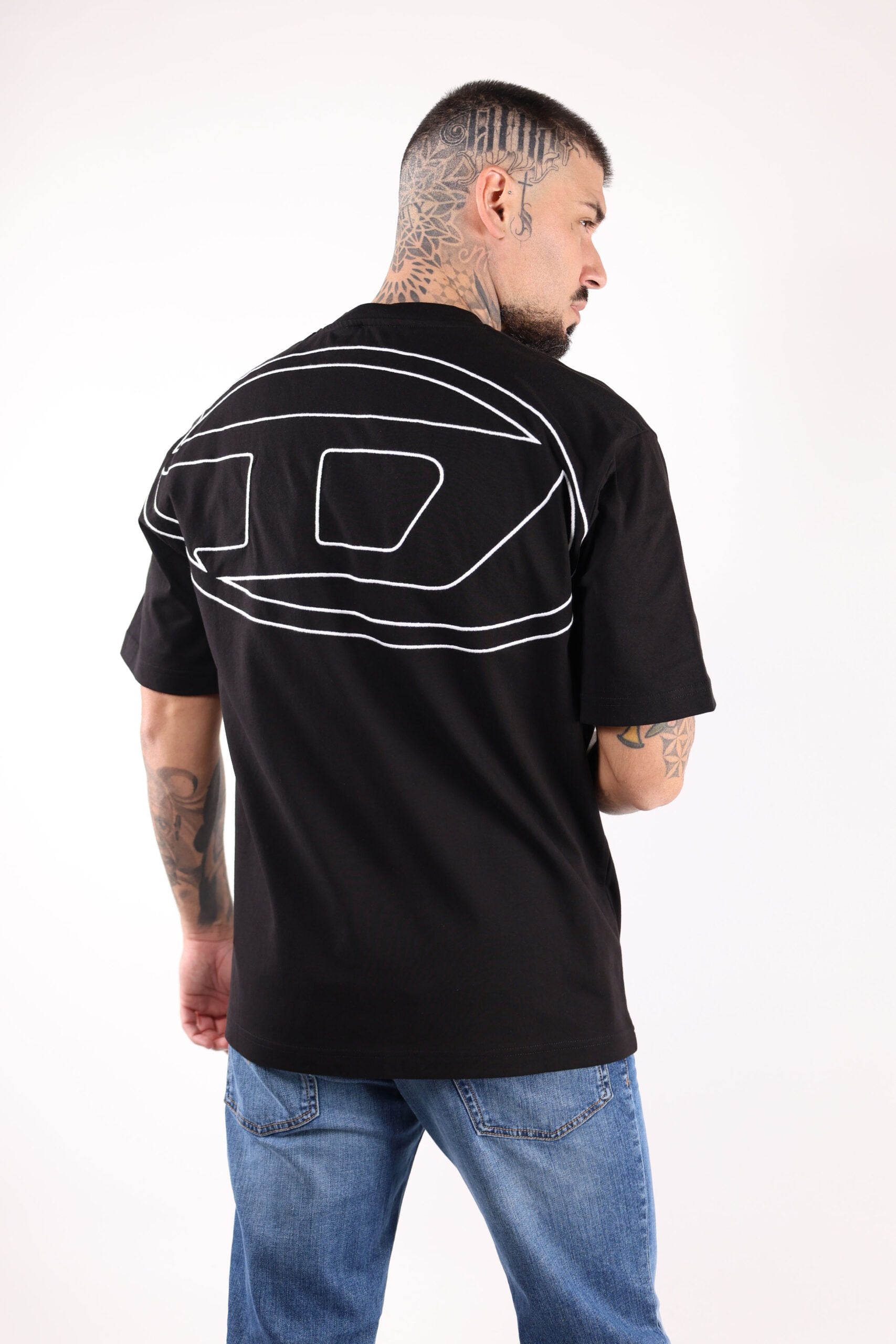 Camiseta negra con maxilogo "megoval-D" detrás - M
