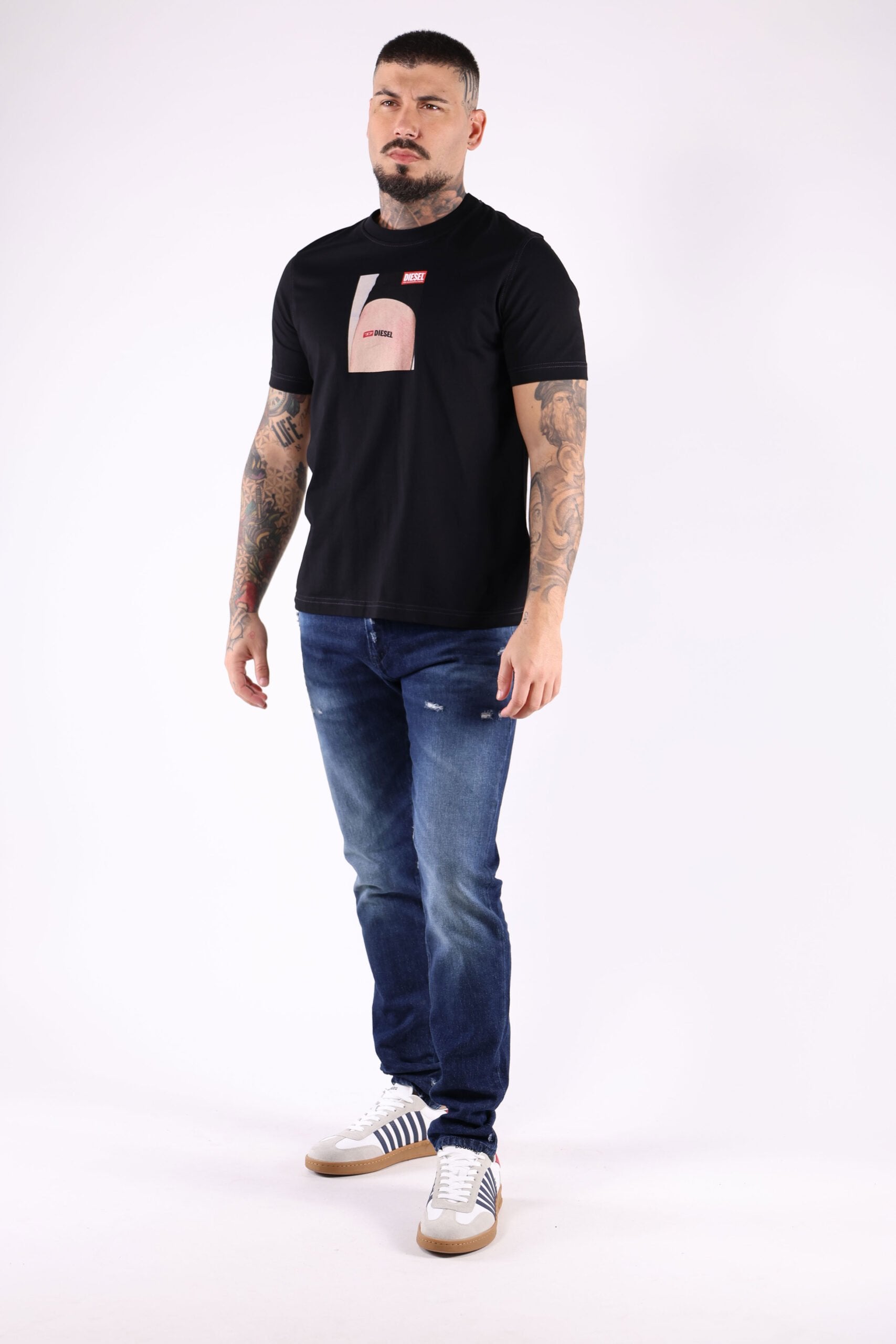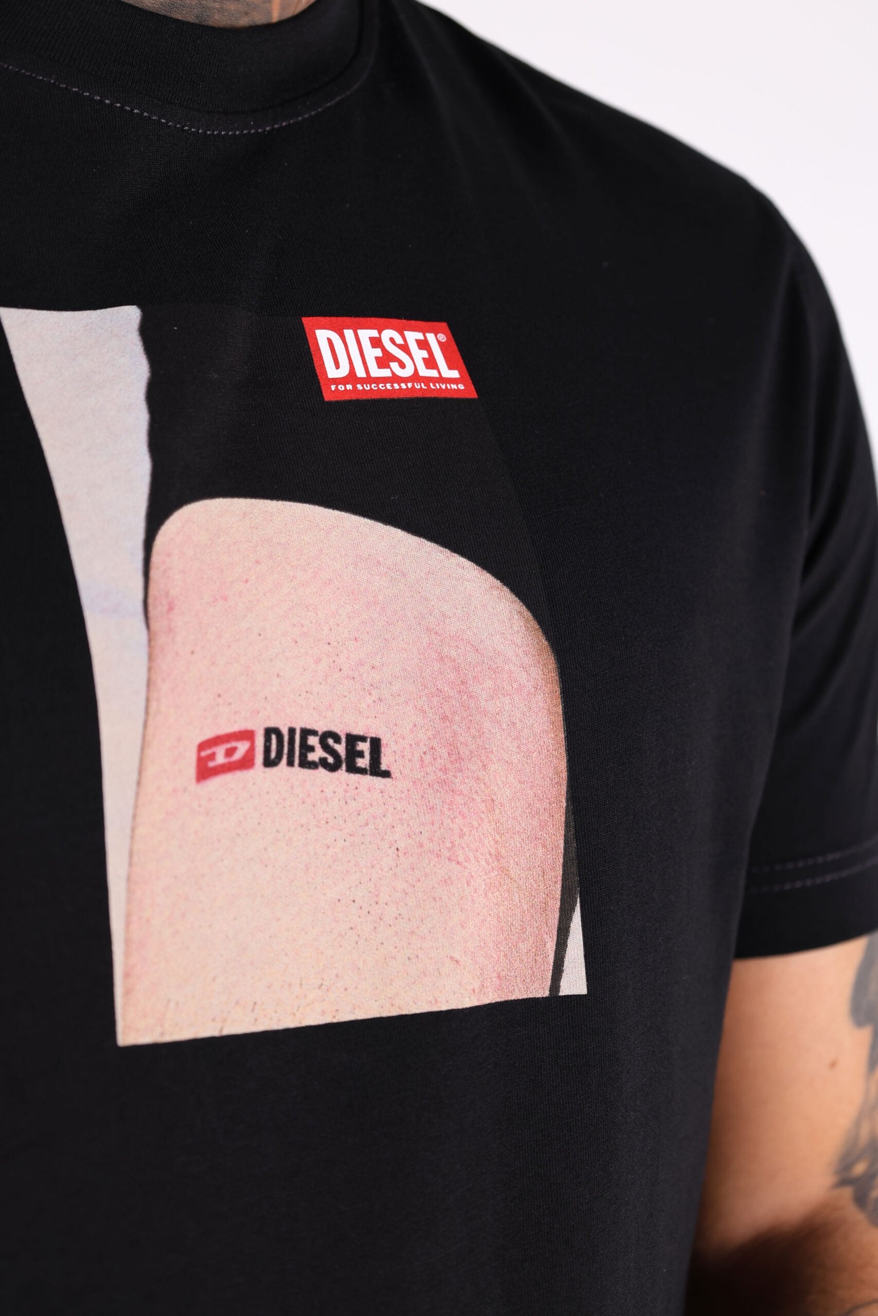 Camiseta negra con estampado tatuaje "Diesel" - XL