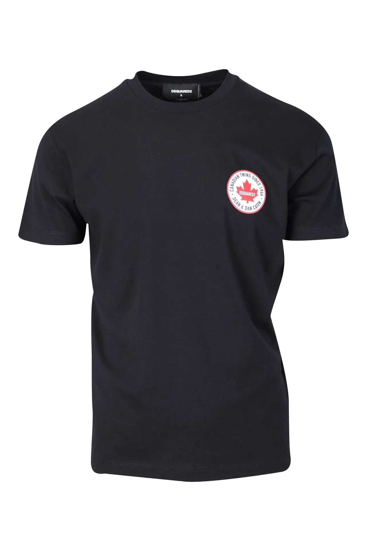 Camiseta negra con logo sello vintage circular de hoja Canadá -