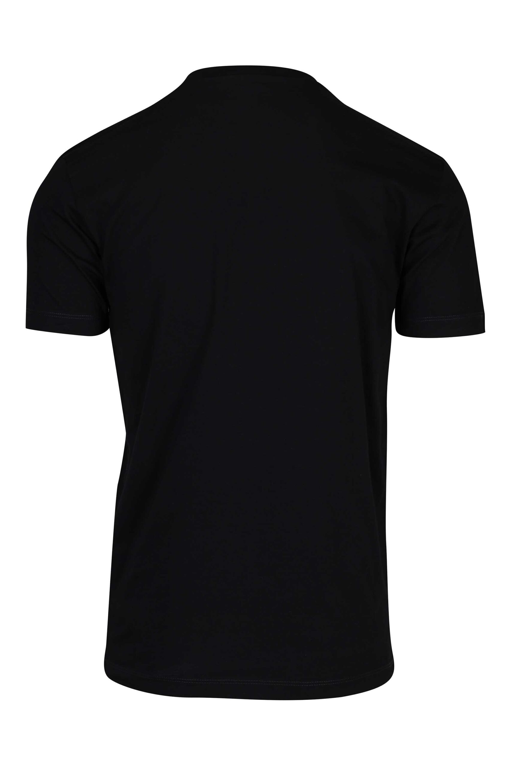Camiseta negra con minilogo hoja en contraste azul y rojo - L -