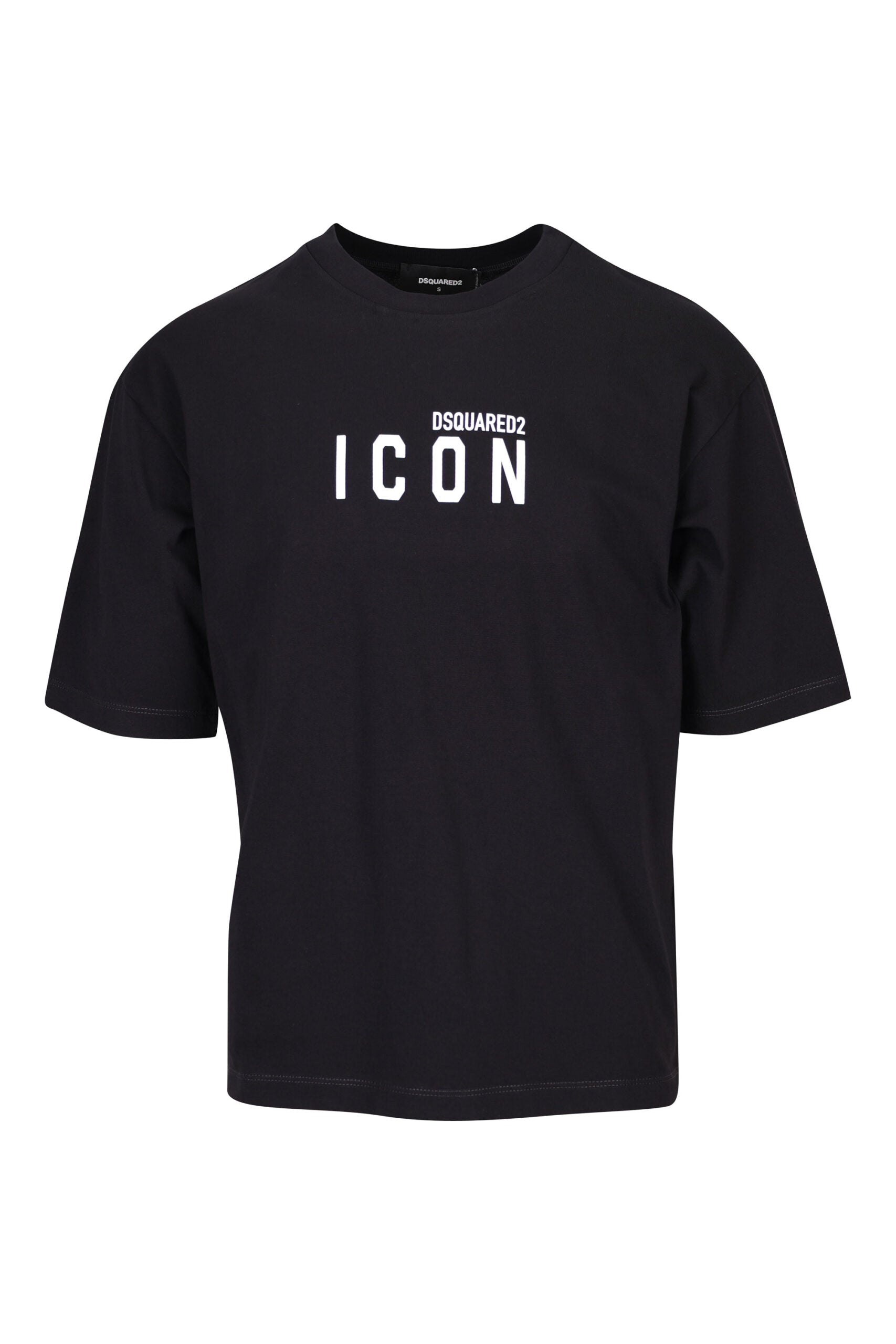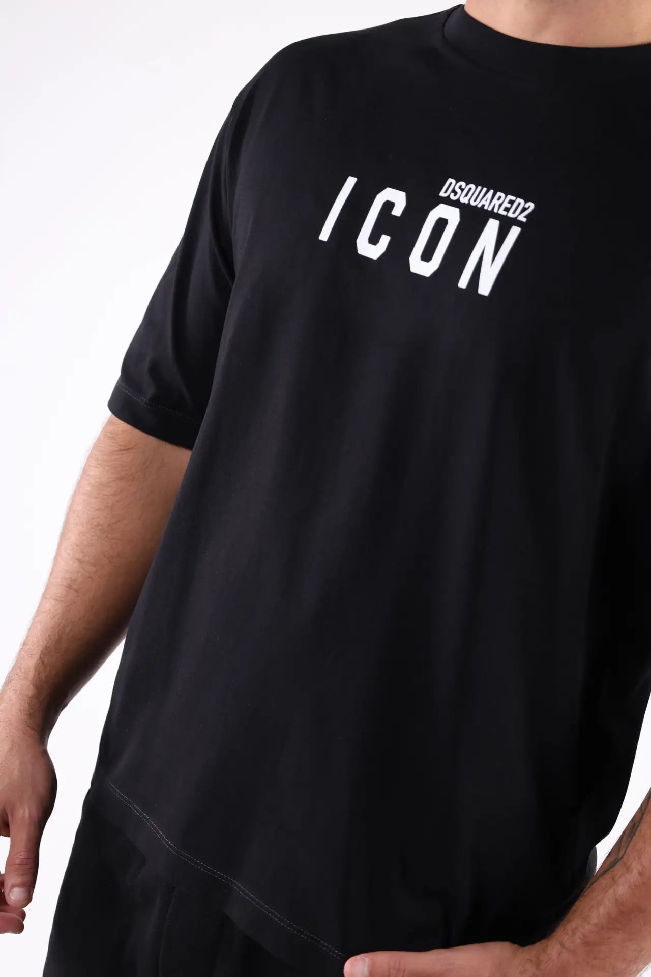 Camiseta negra "oversize" con minilogo "icon" centrado -
