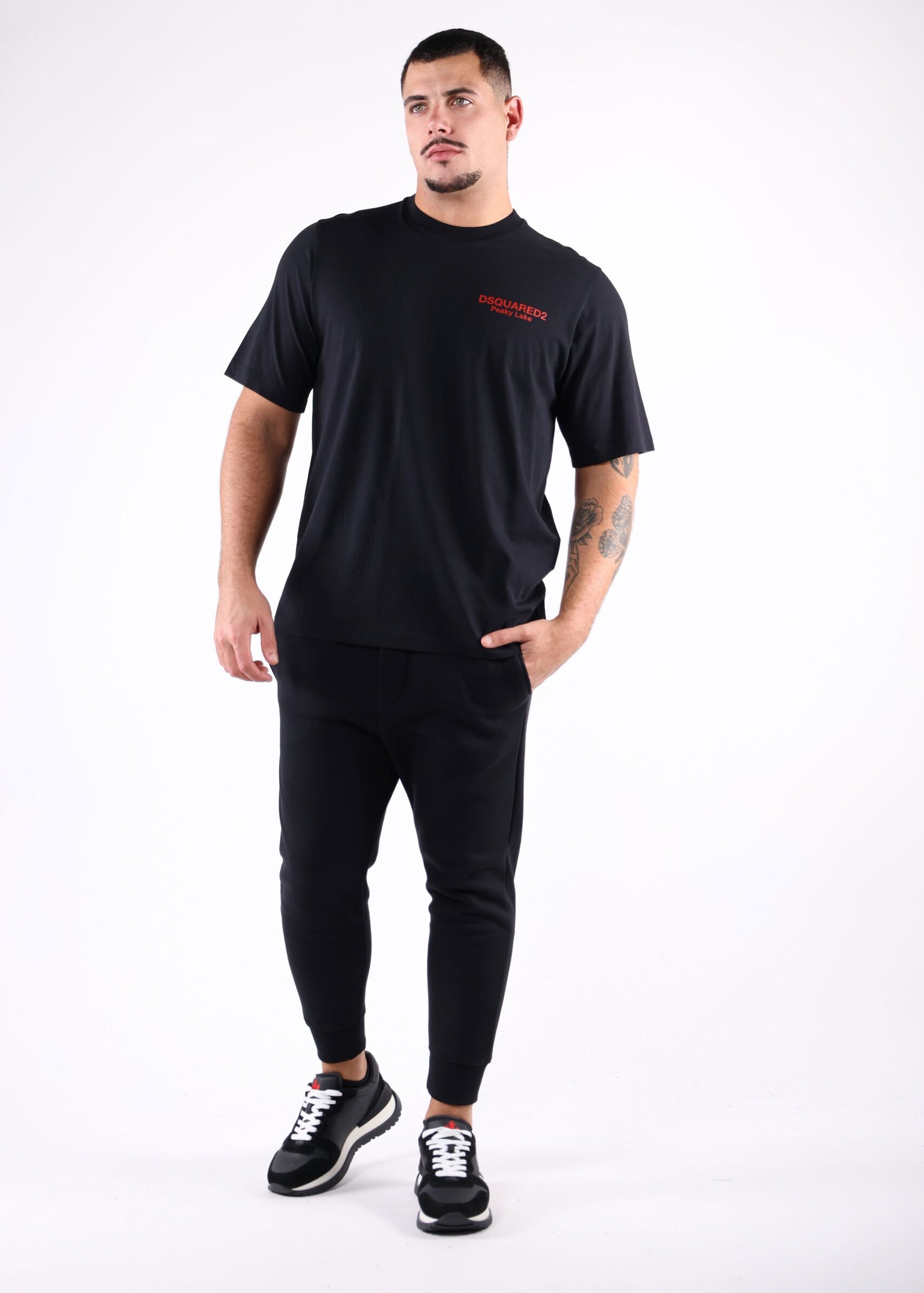Camiseta negra con minilogo rojo y estampa en espalda "Peake Lake" - S