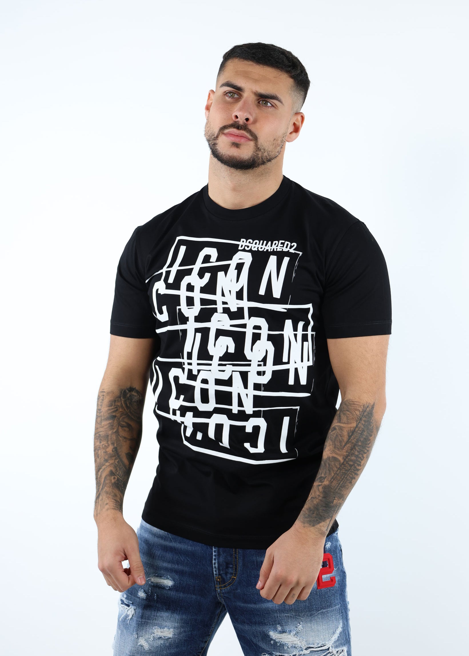 Camiseta negra con minilogo blanco y estampa "Headquarter" en esplada - XL