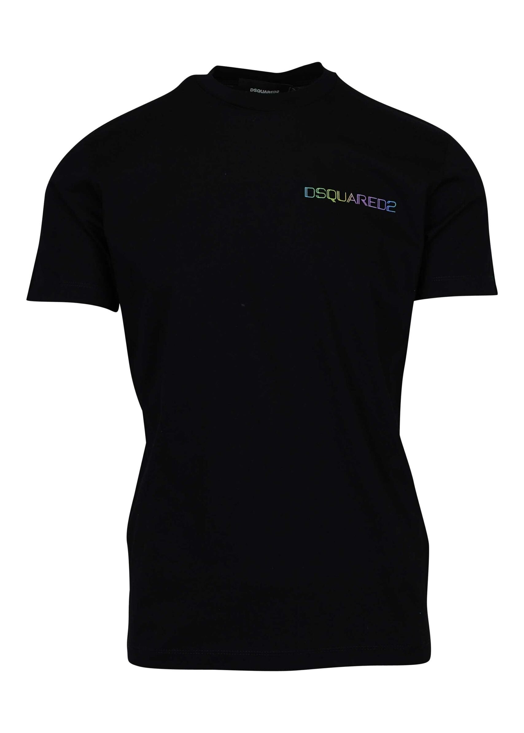 Camiseta negra con minilogo en "lettering" metal y "strass" rojo - XS