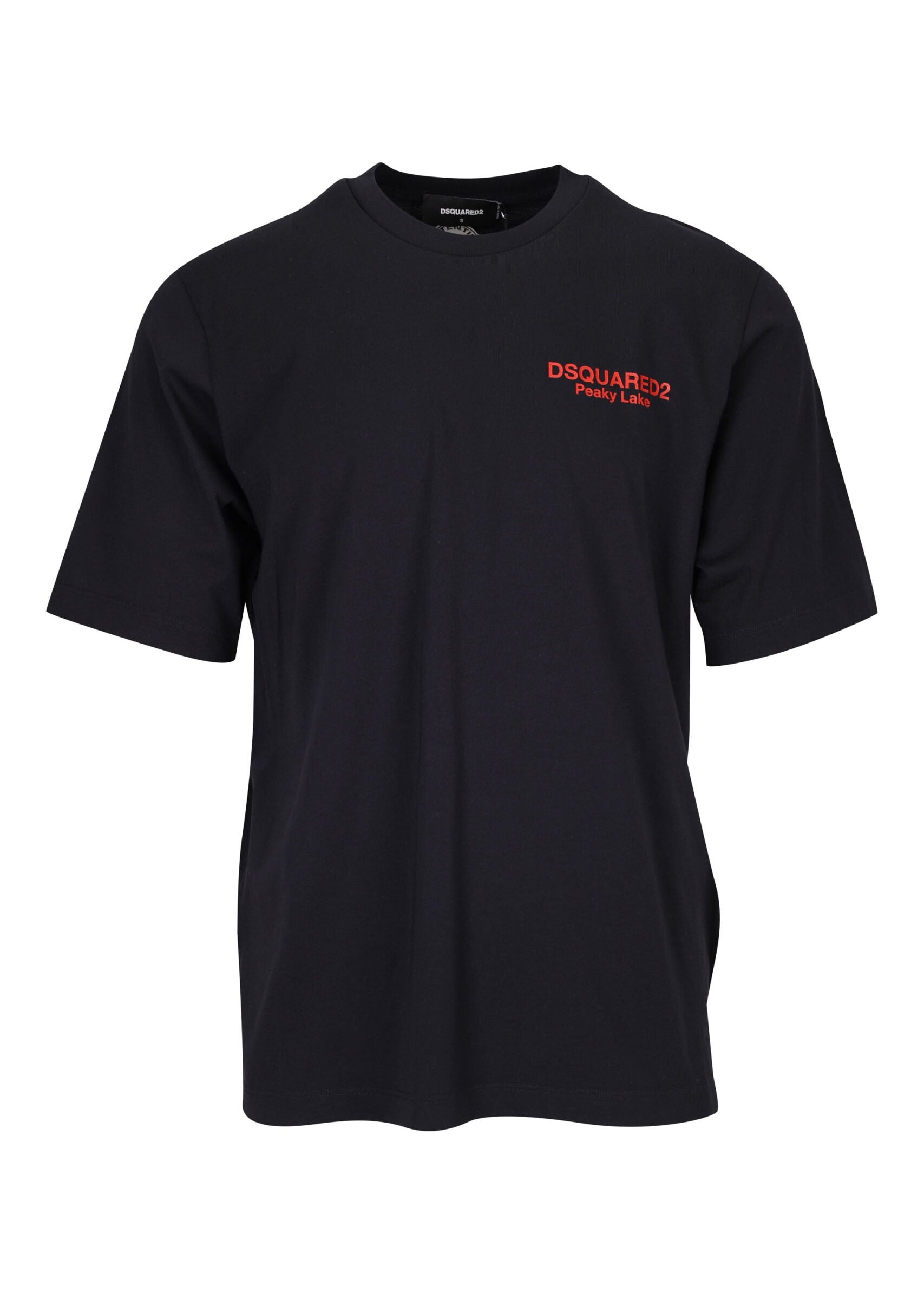 Camiseta negra con minilogo rojo y estampa en espalda "Peake Lake" - XXL