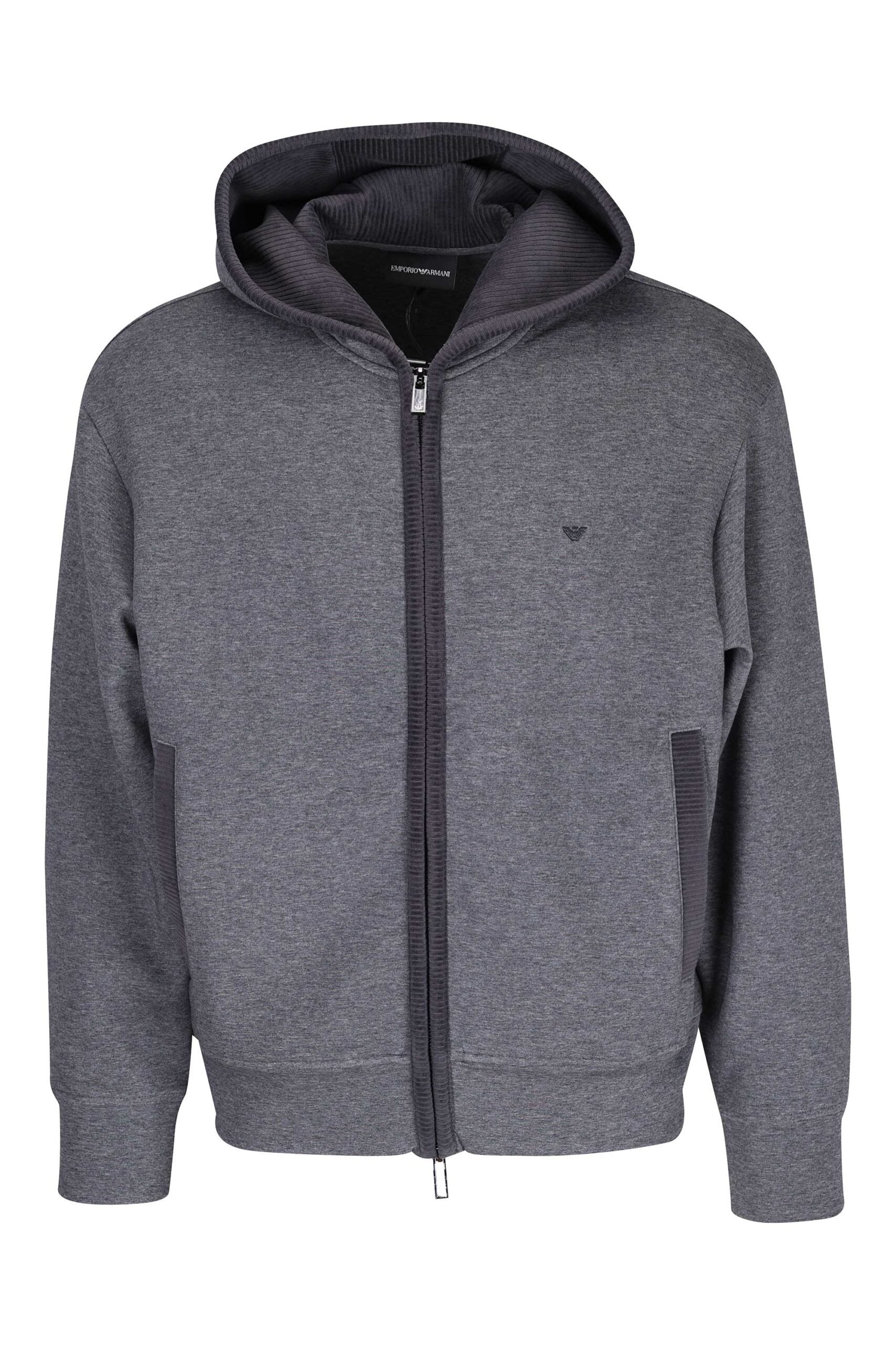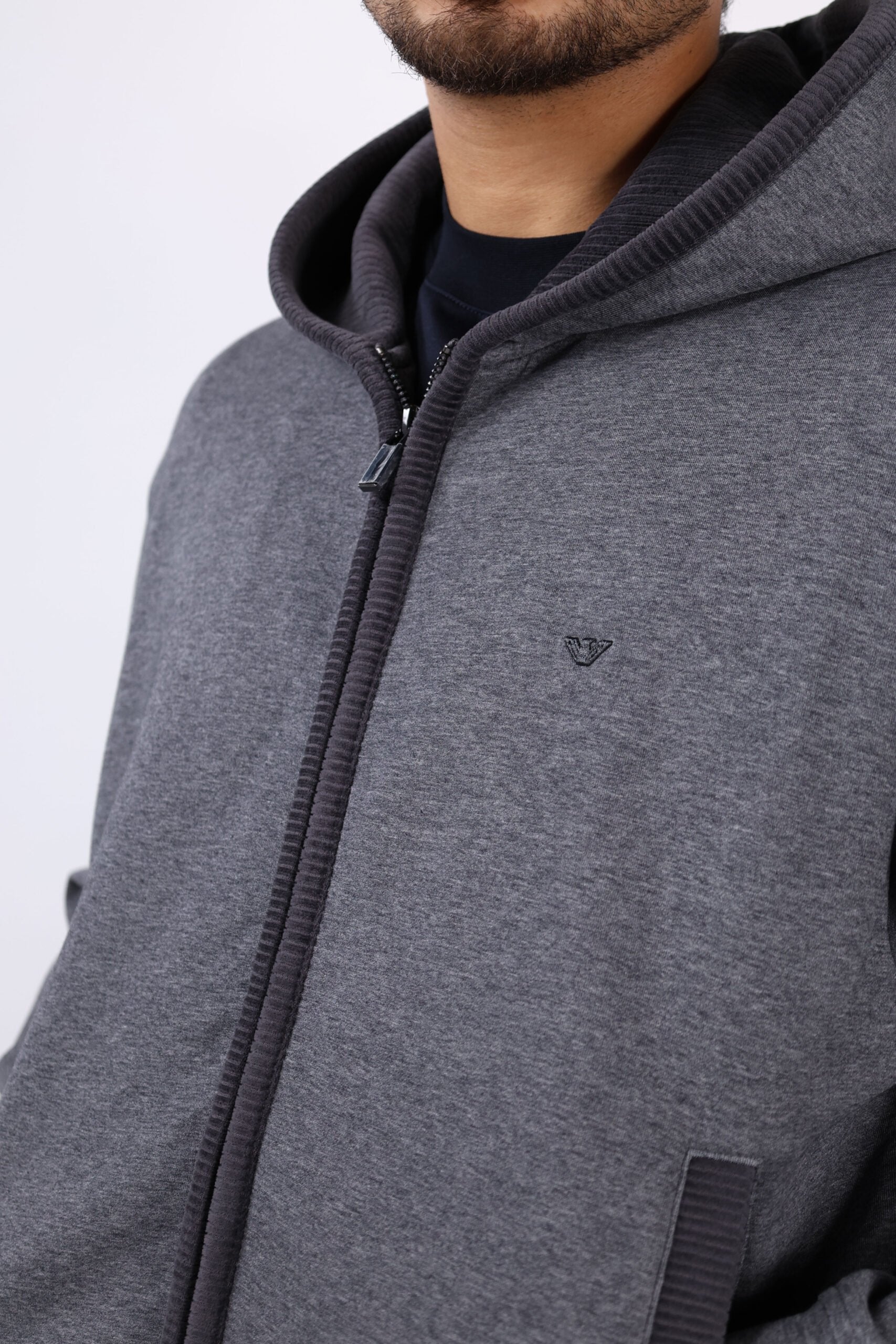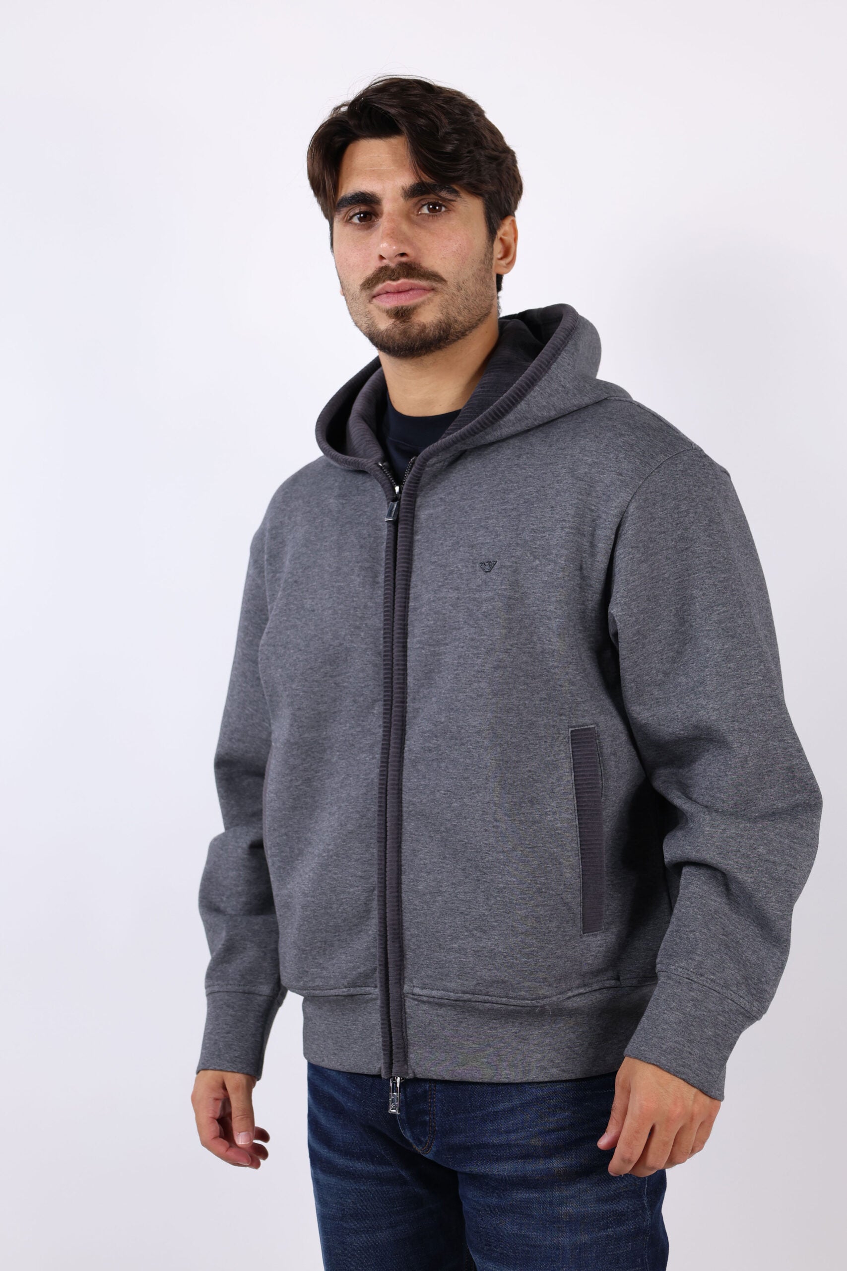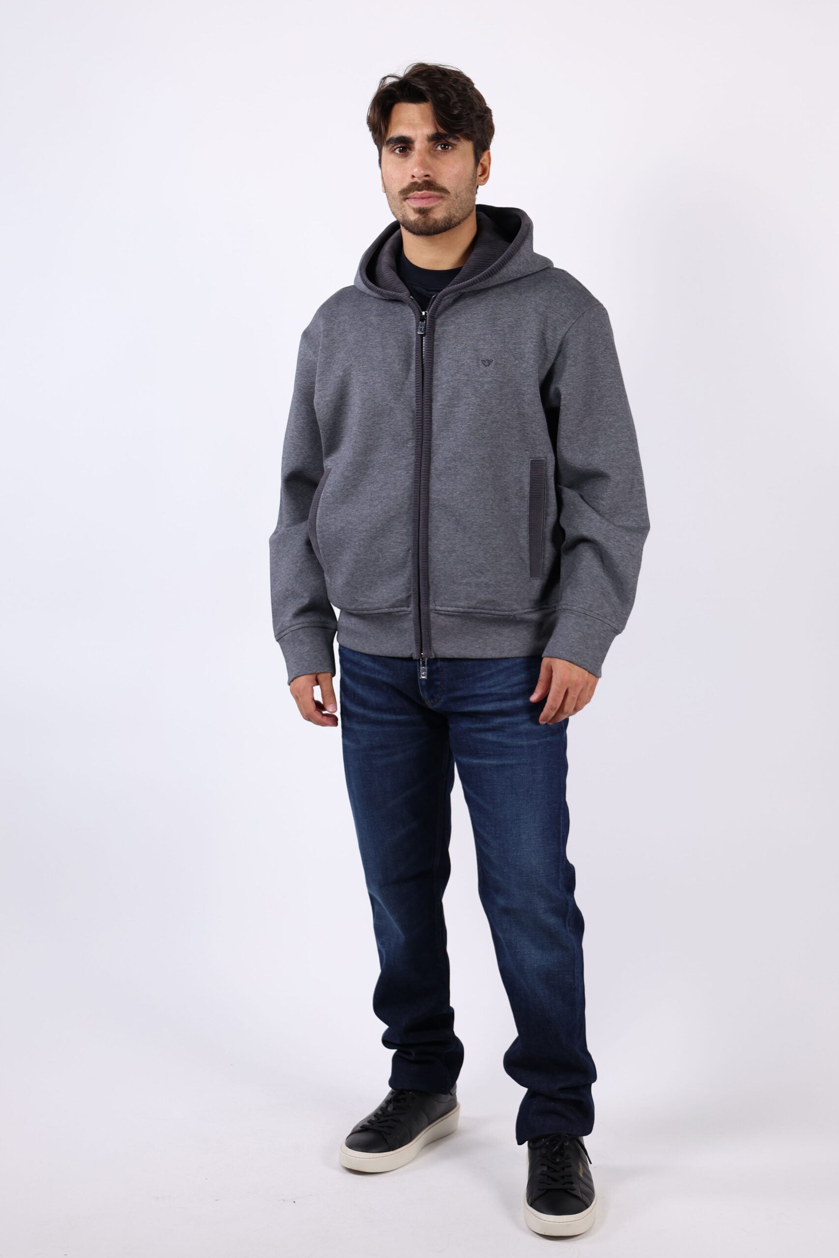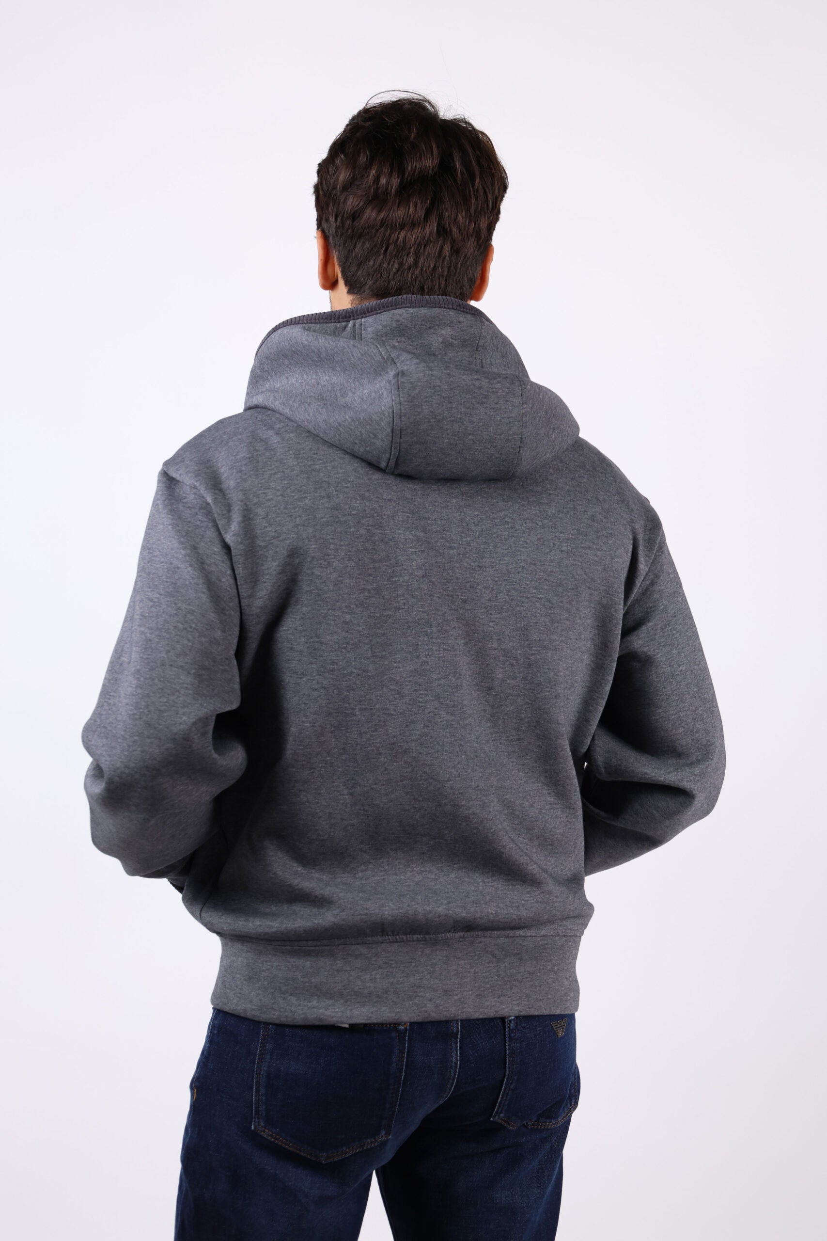 Sudadera gris abierta con cremallera y capucha con minilogo águila - XL