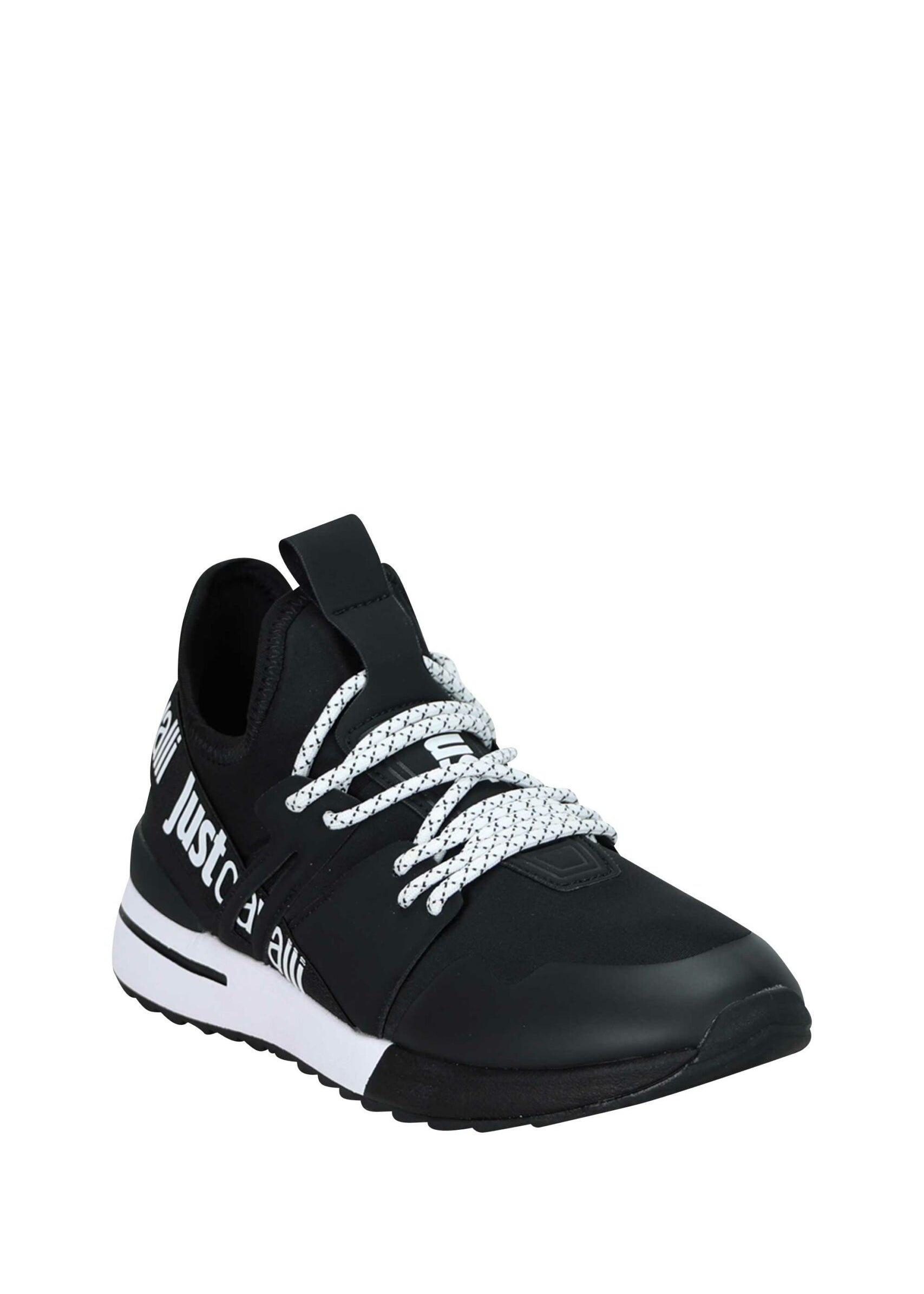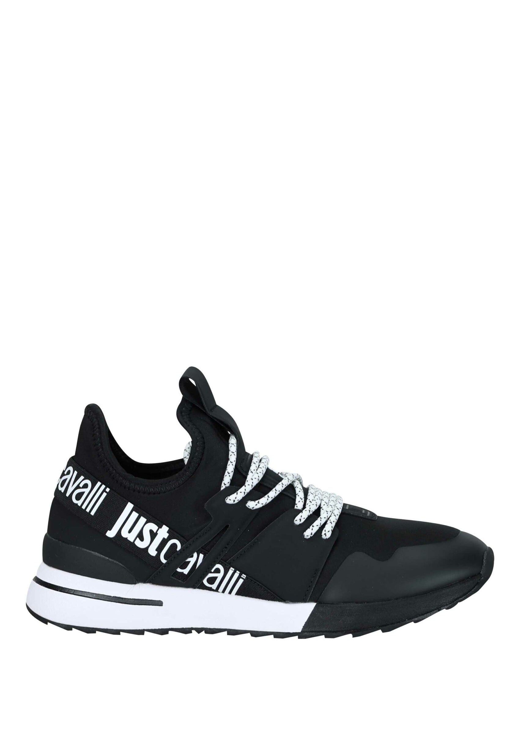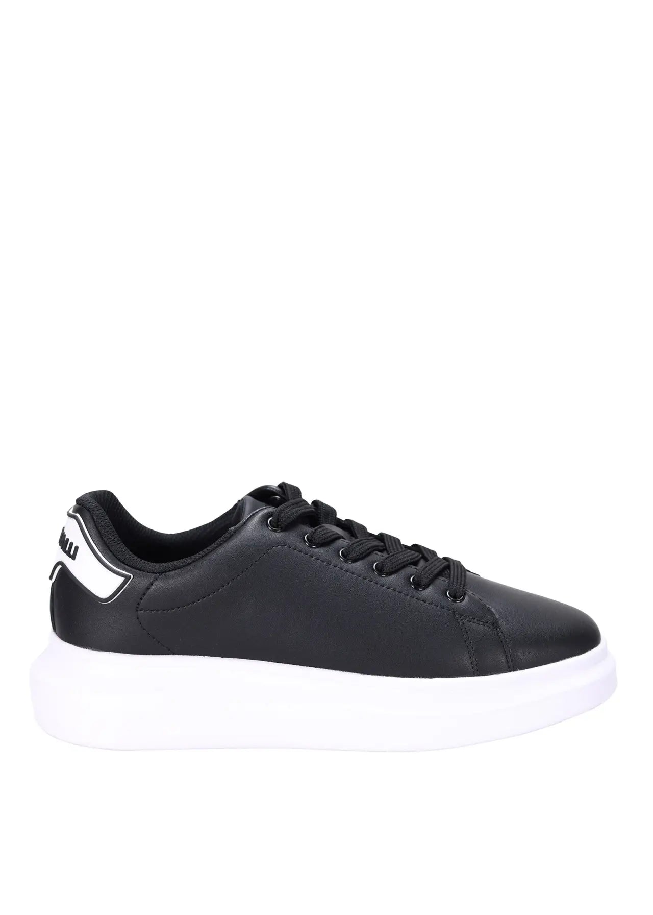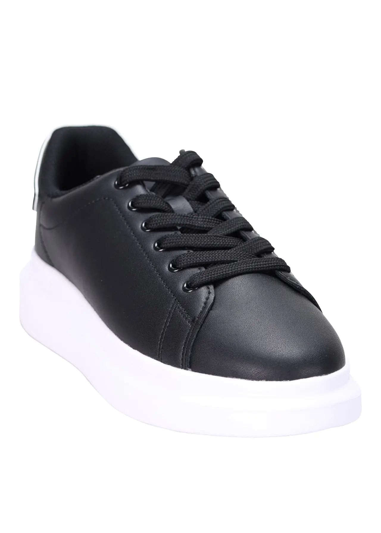 Zapatillas negras de piel con refuerzo de talón blanco y logotipo -