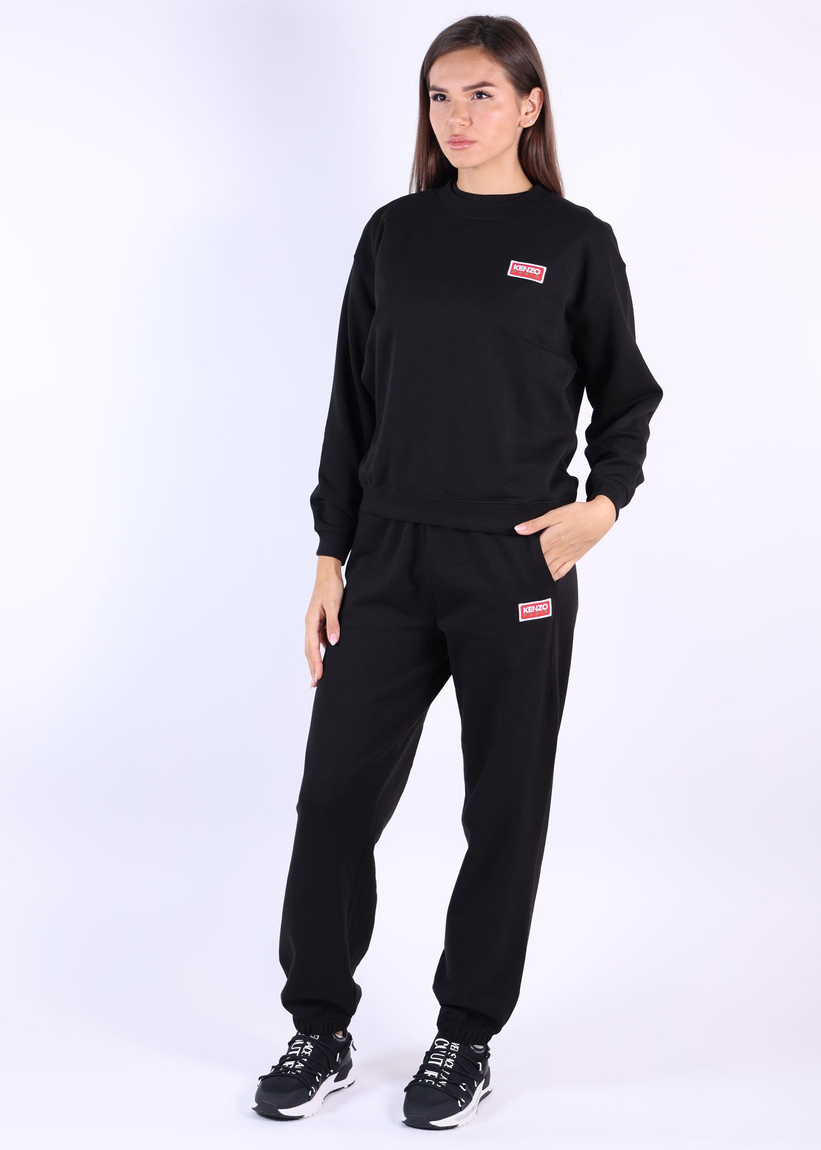 Zapatillas negras "kenzo foxy" con logo "boke flower" blanco - 40