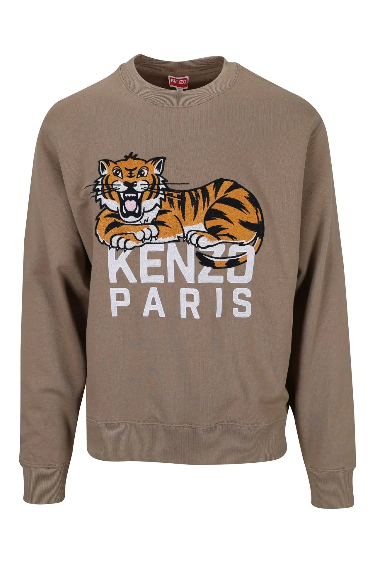 Sudadera color marrón con logo bordado "Kenzo Happy Tiger" -