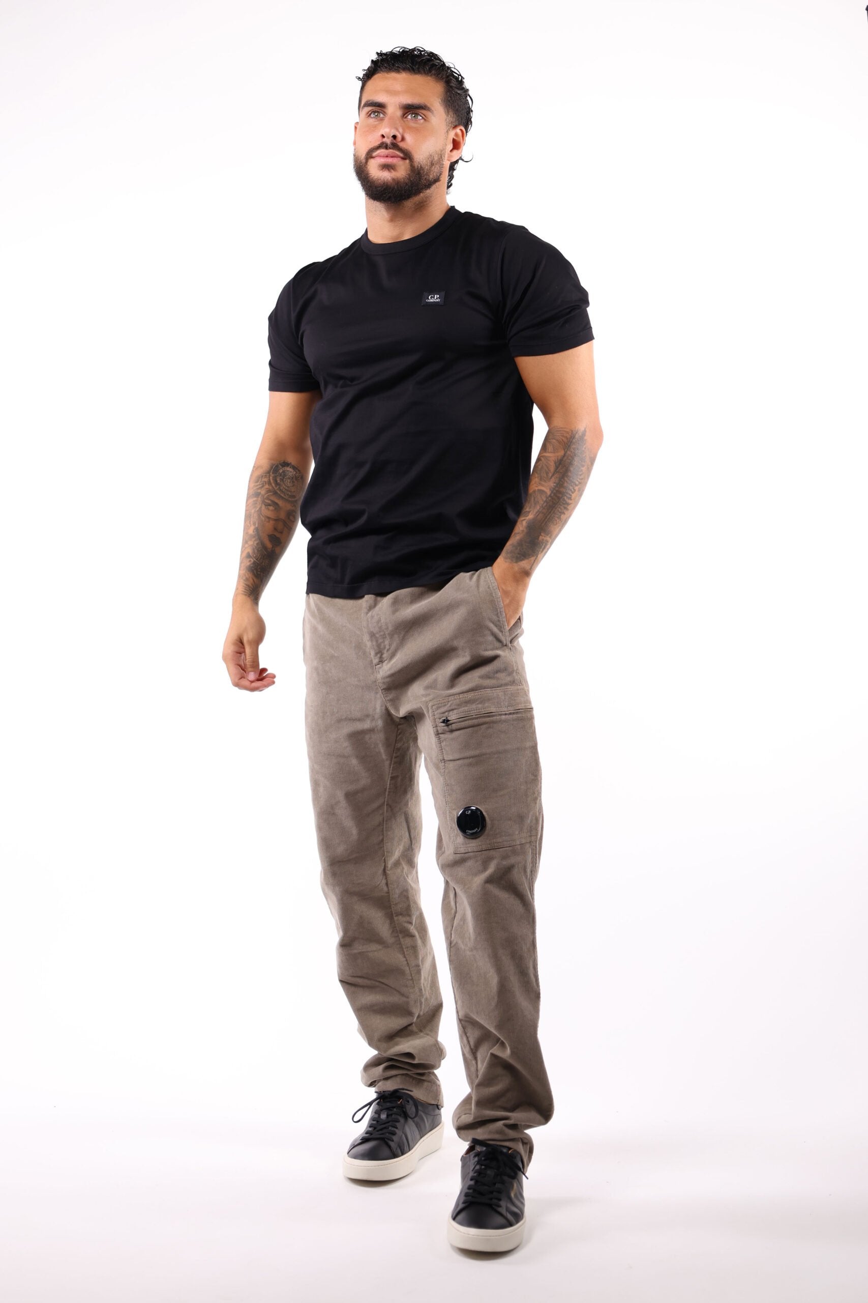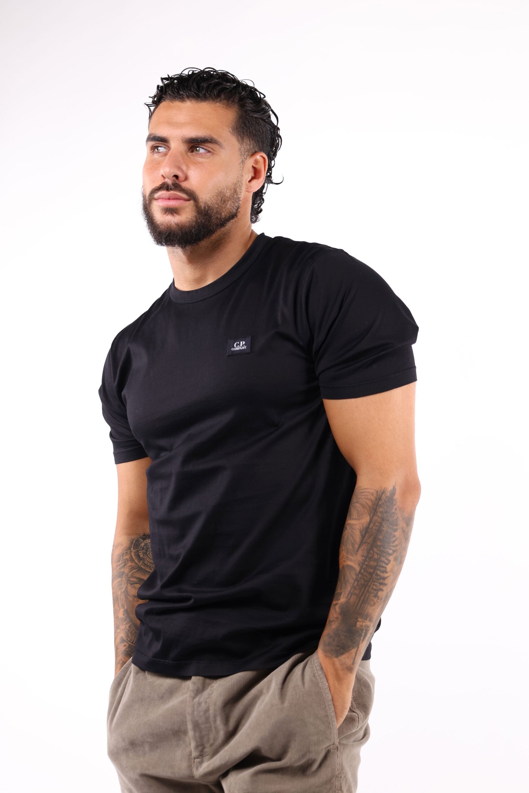Camiseta negra mercerizada con minilogo parche "cp" - S