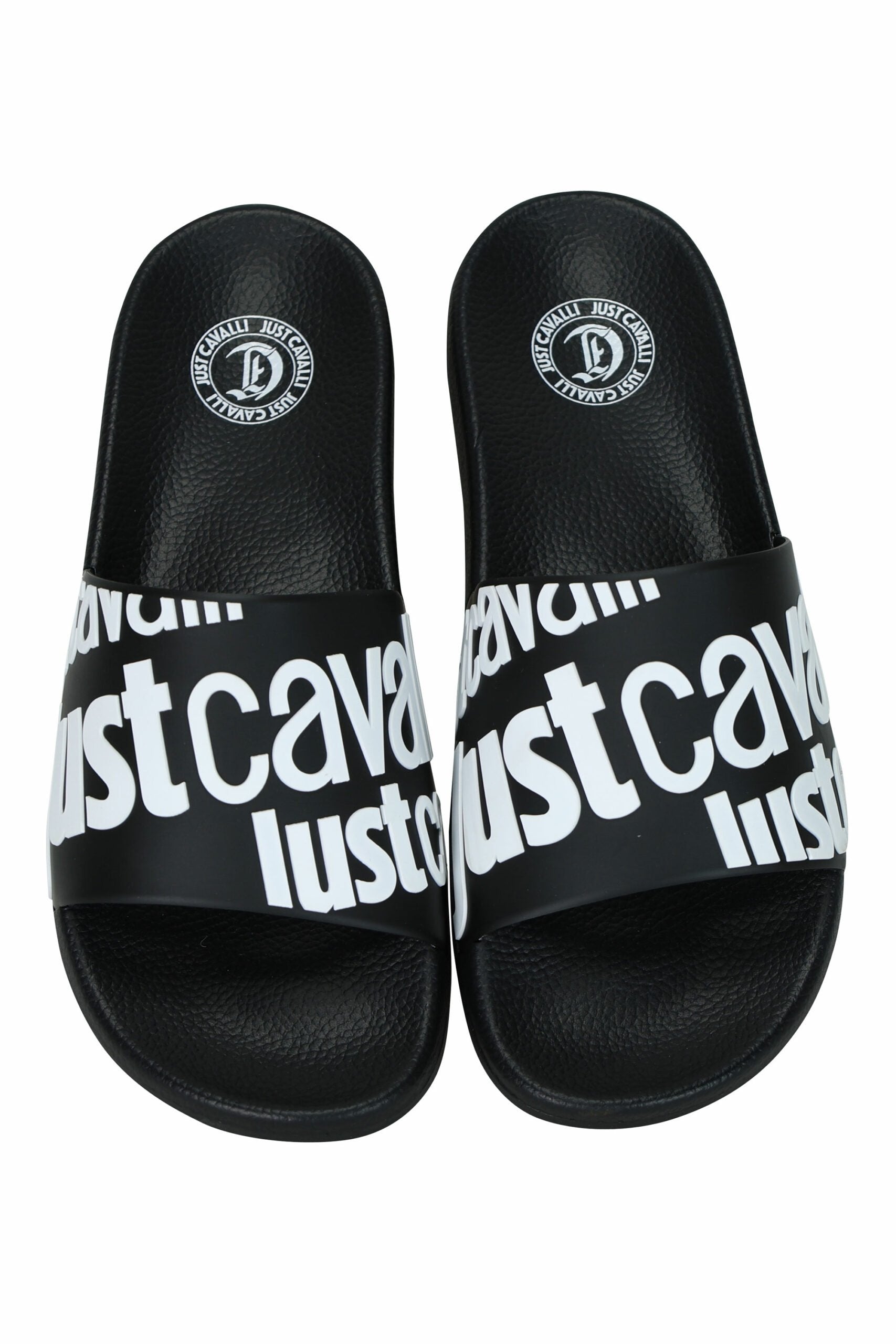 Chanclas negras con maxilogo "all over logo just cavalli" blanco - 41 -