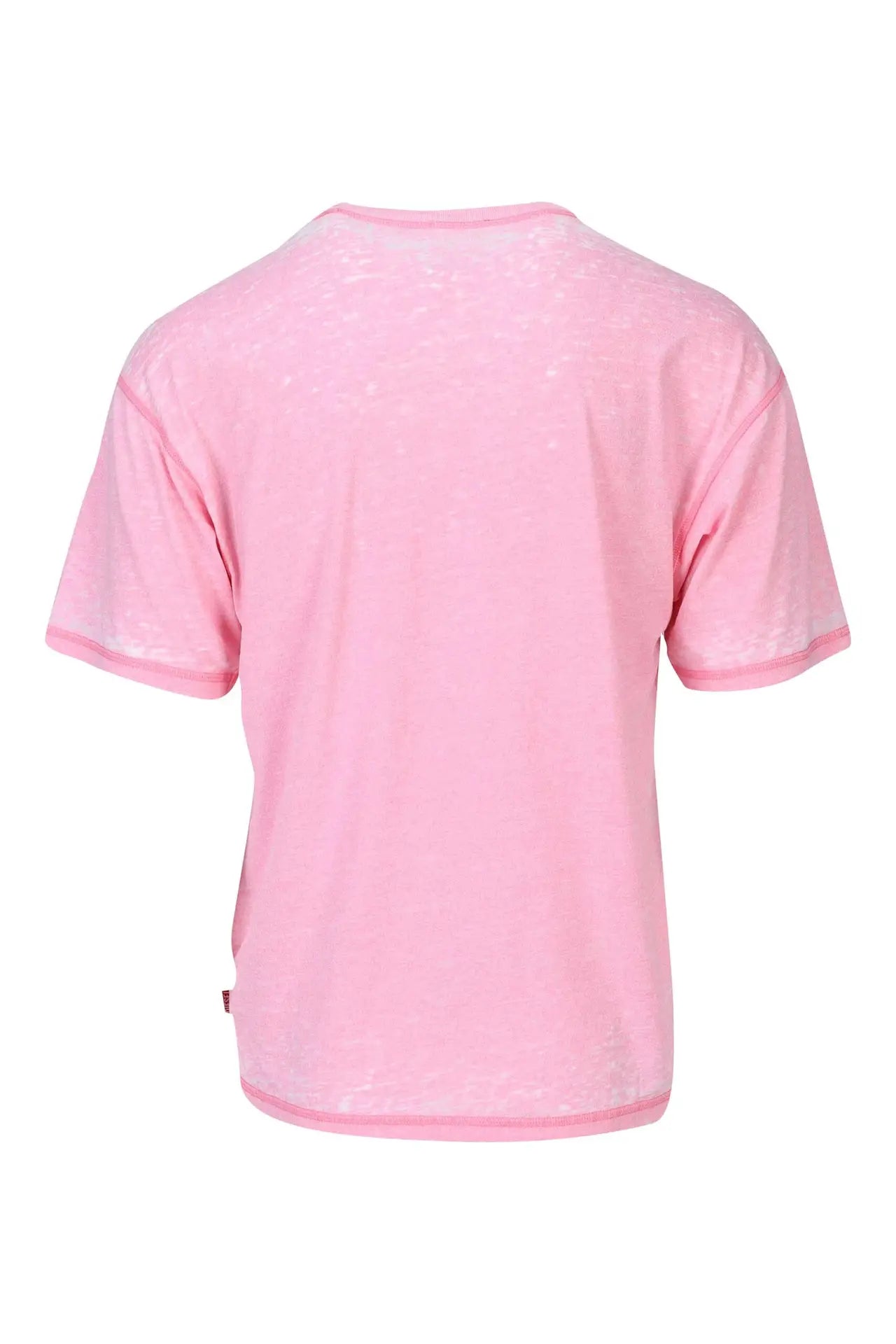 Camiseta rosa "T-BOXT" desgastada con minilogo "Oval-D" -