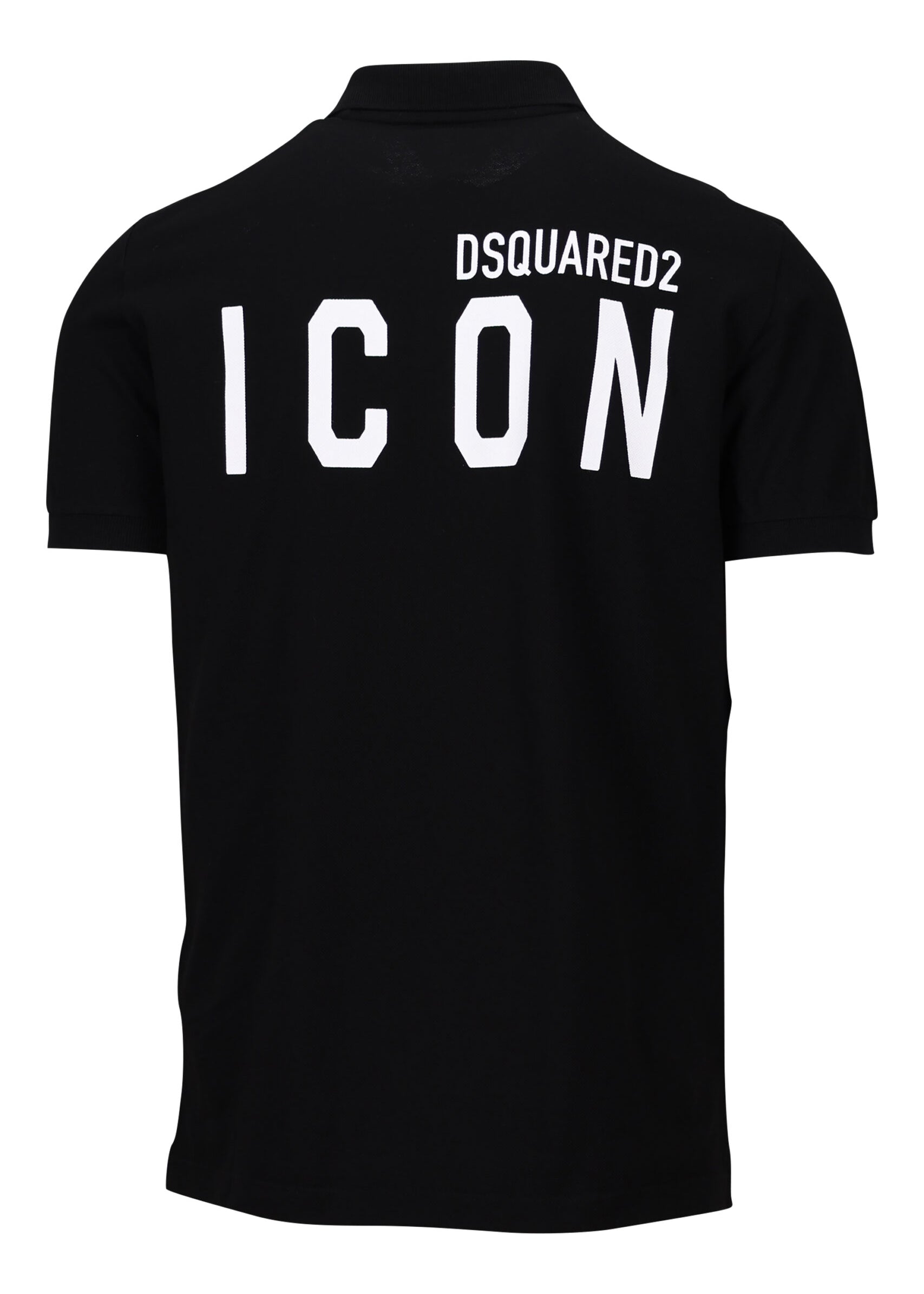 Black "tennis fit" polo shirt with "icon" logo on the back