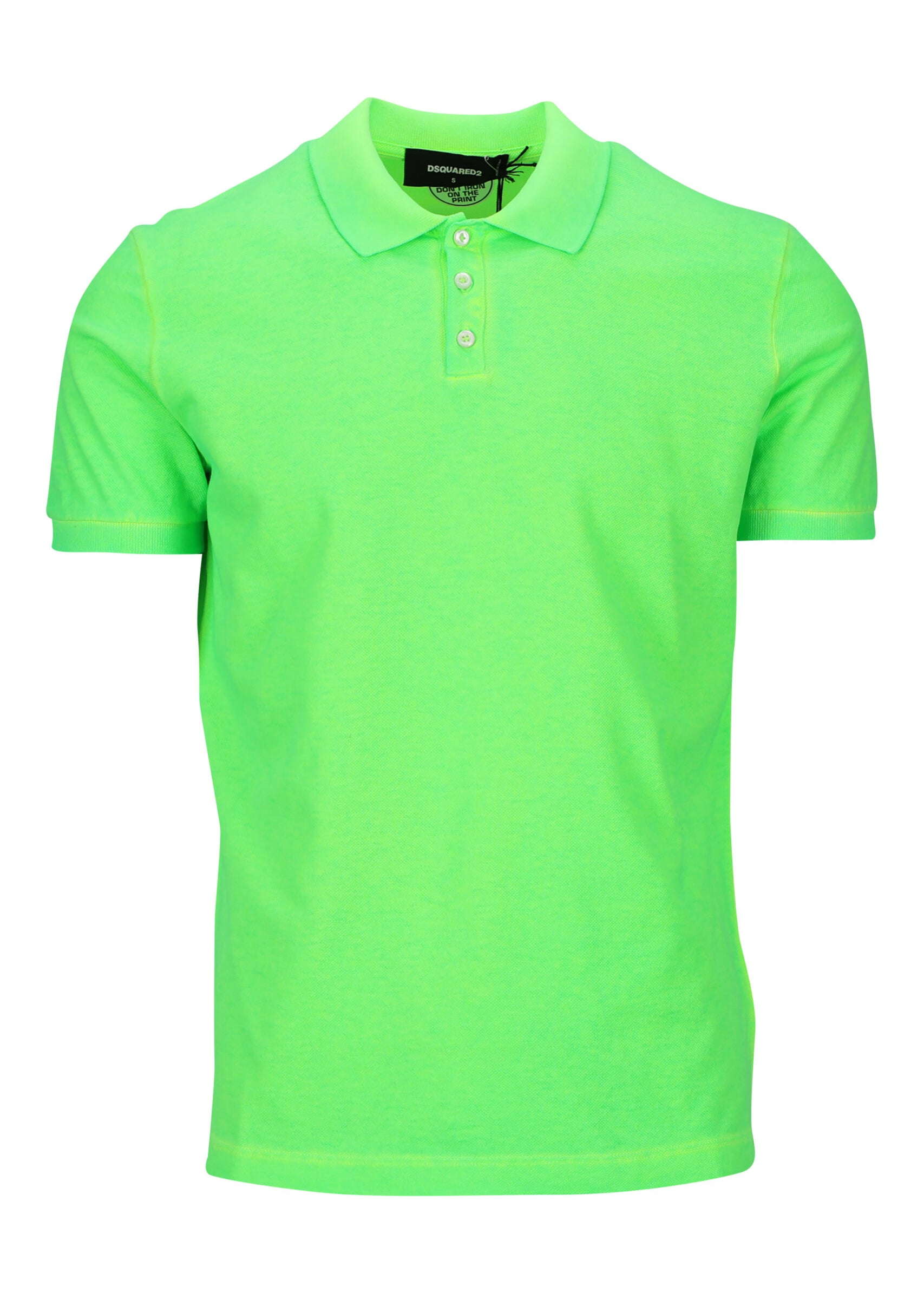 Neon green "tennis fit" polo shirt with "icon" logo on the back