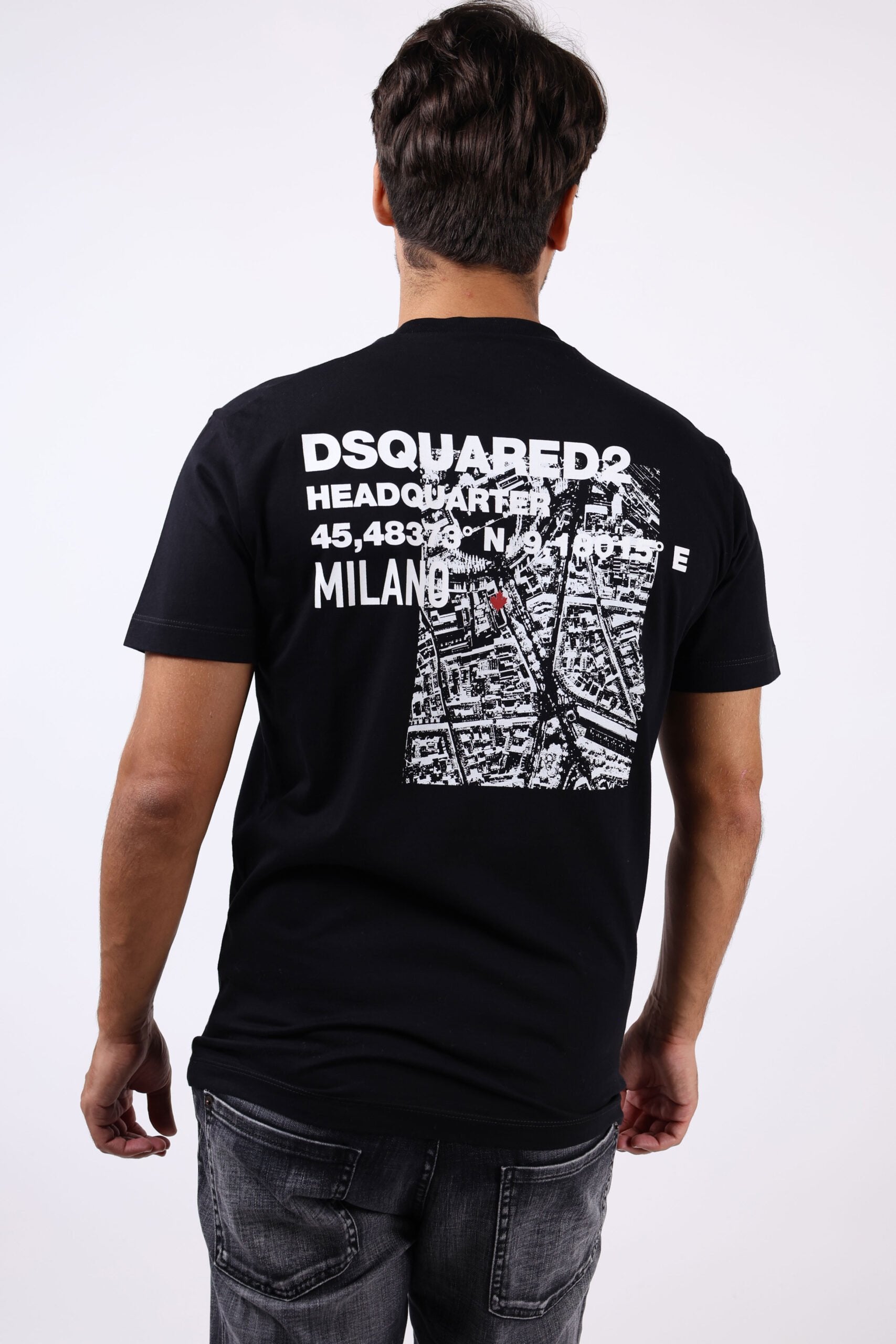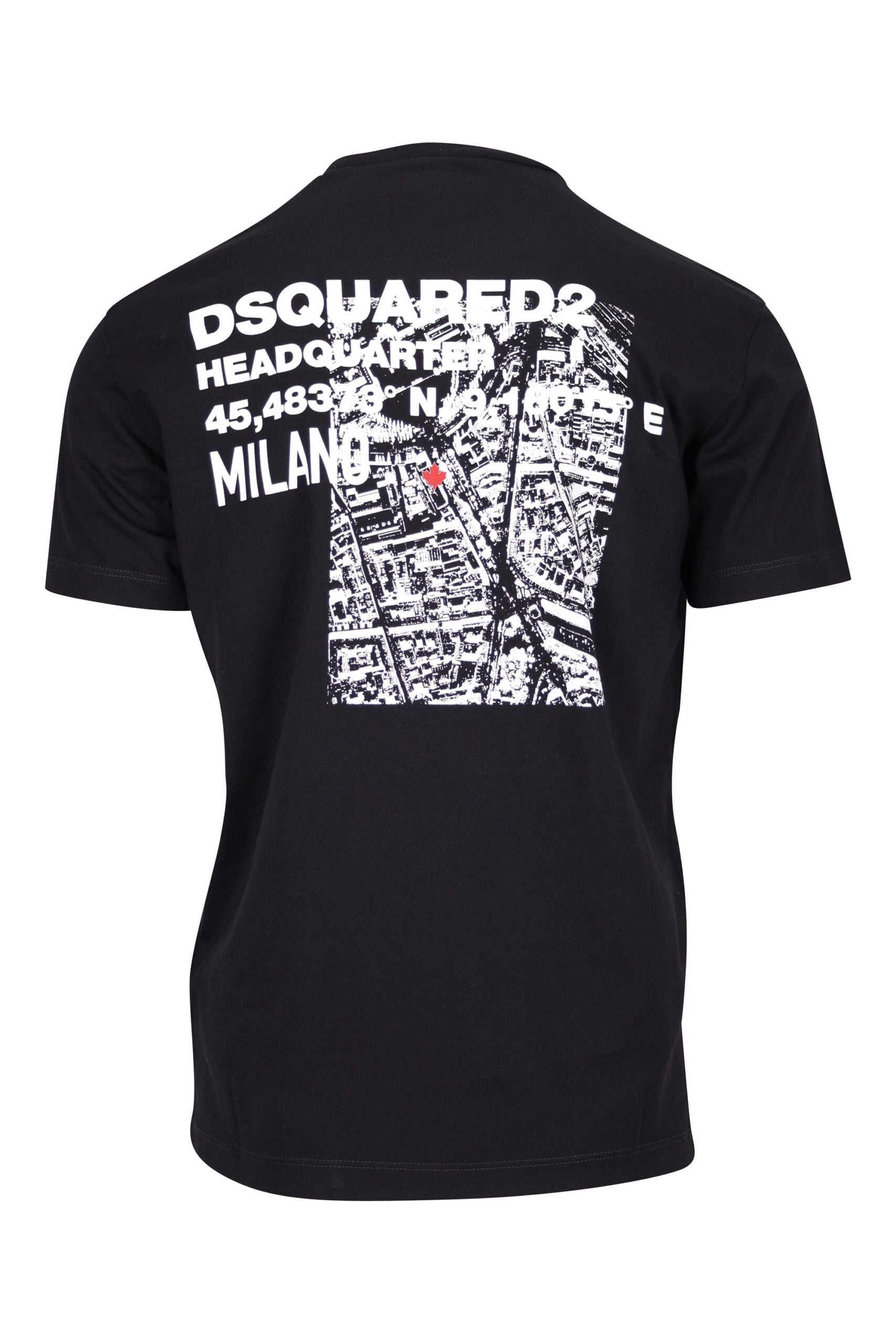 Camiseta negra con minilogo blanco y estampa "Headquarter" en esplada - L