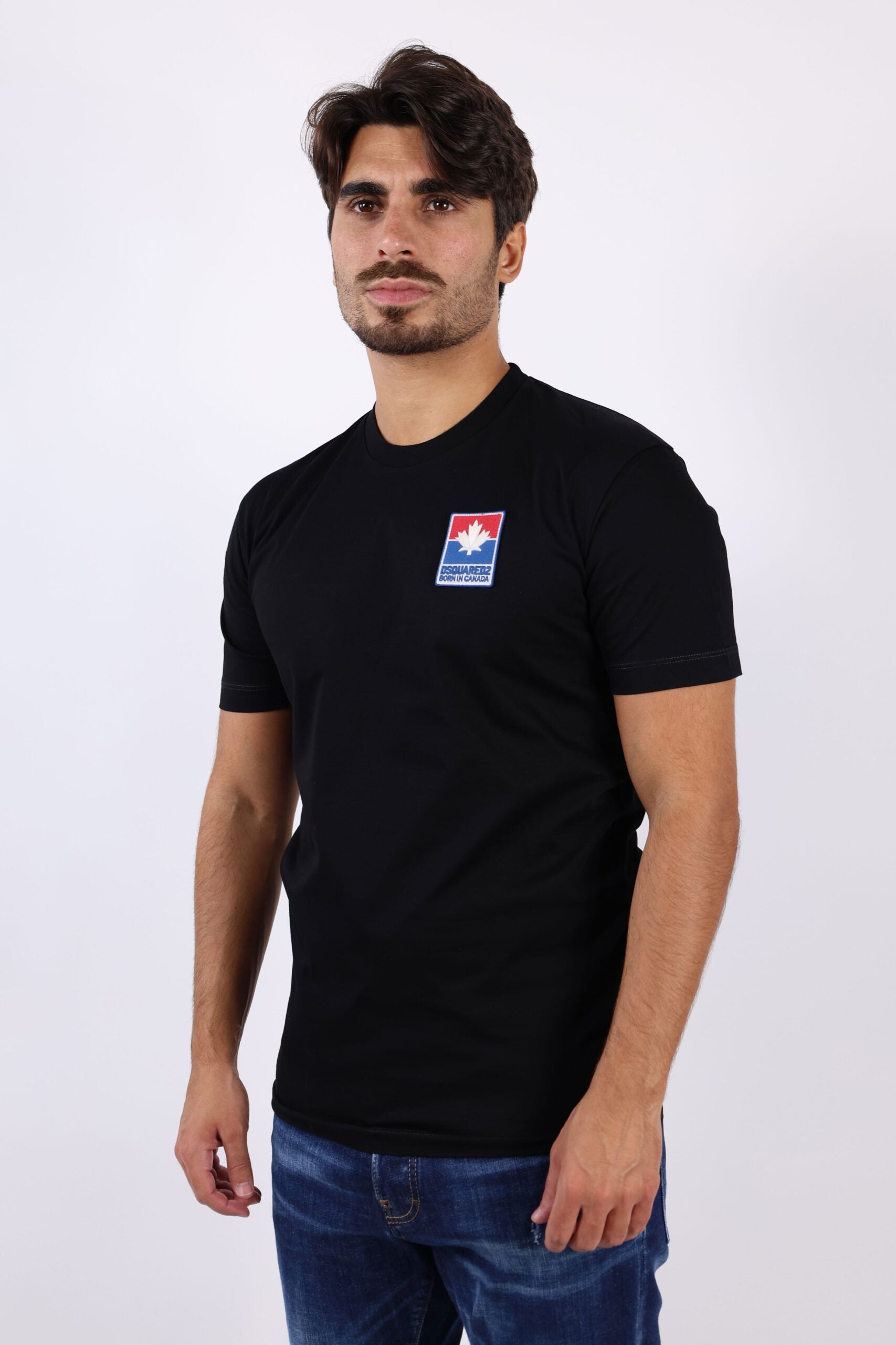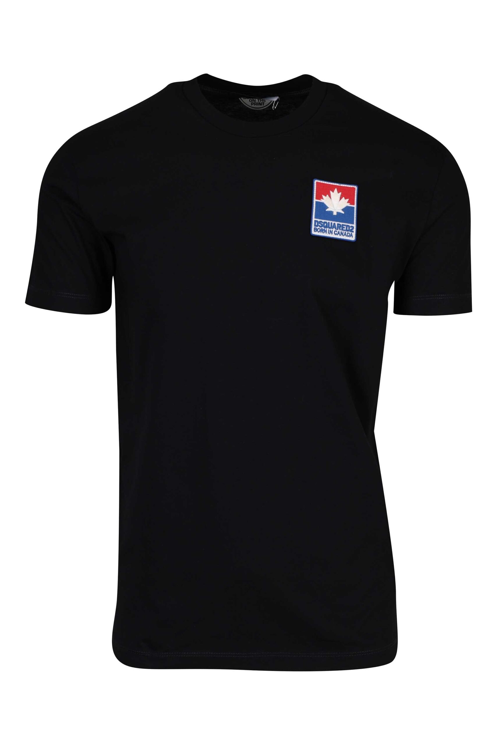 Camiseta negra con minilogo hoja en contraste azul y rojo - S -