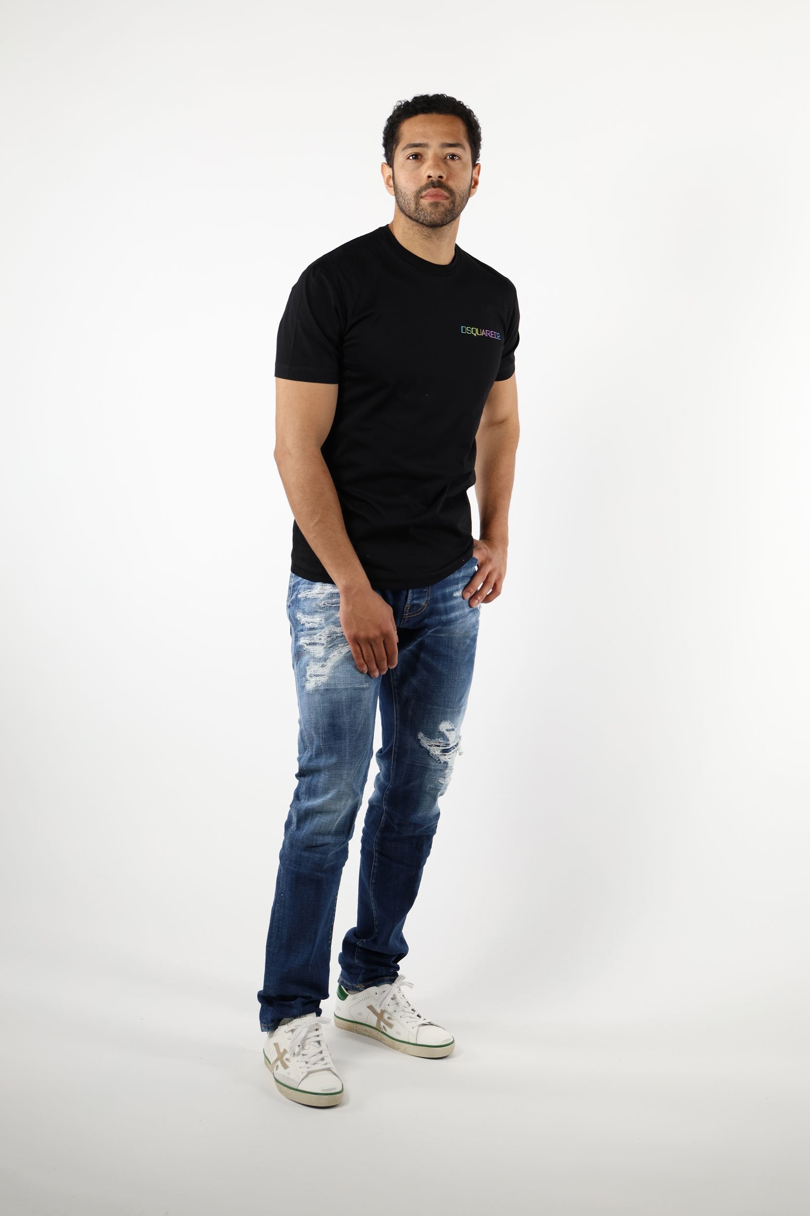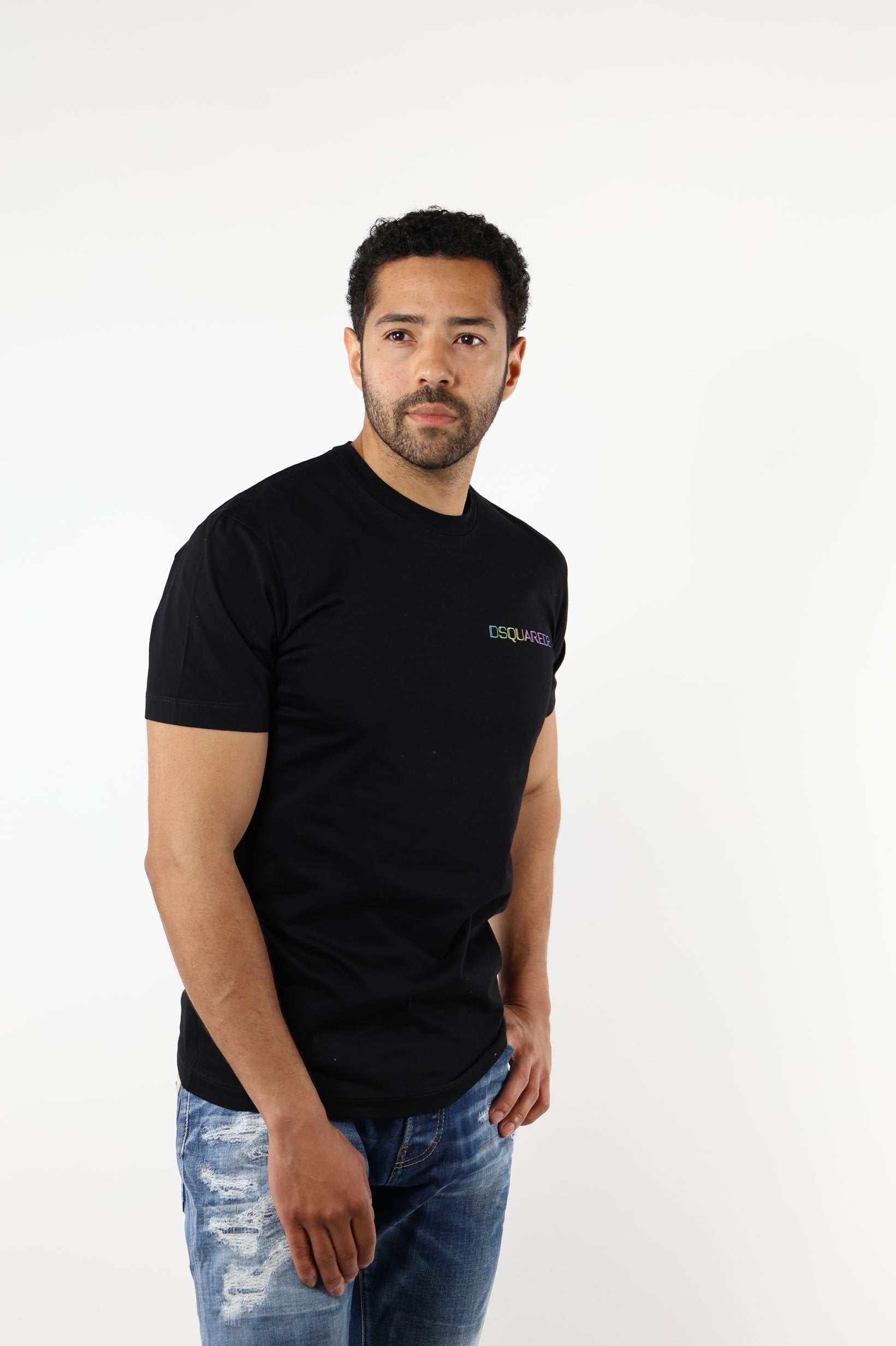 Camiseta negra con minilogo lateral multicolor - XL