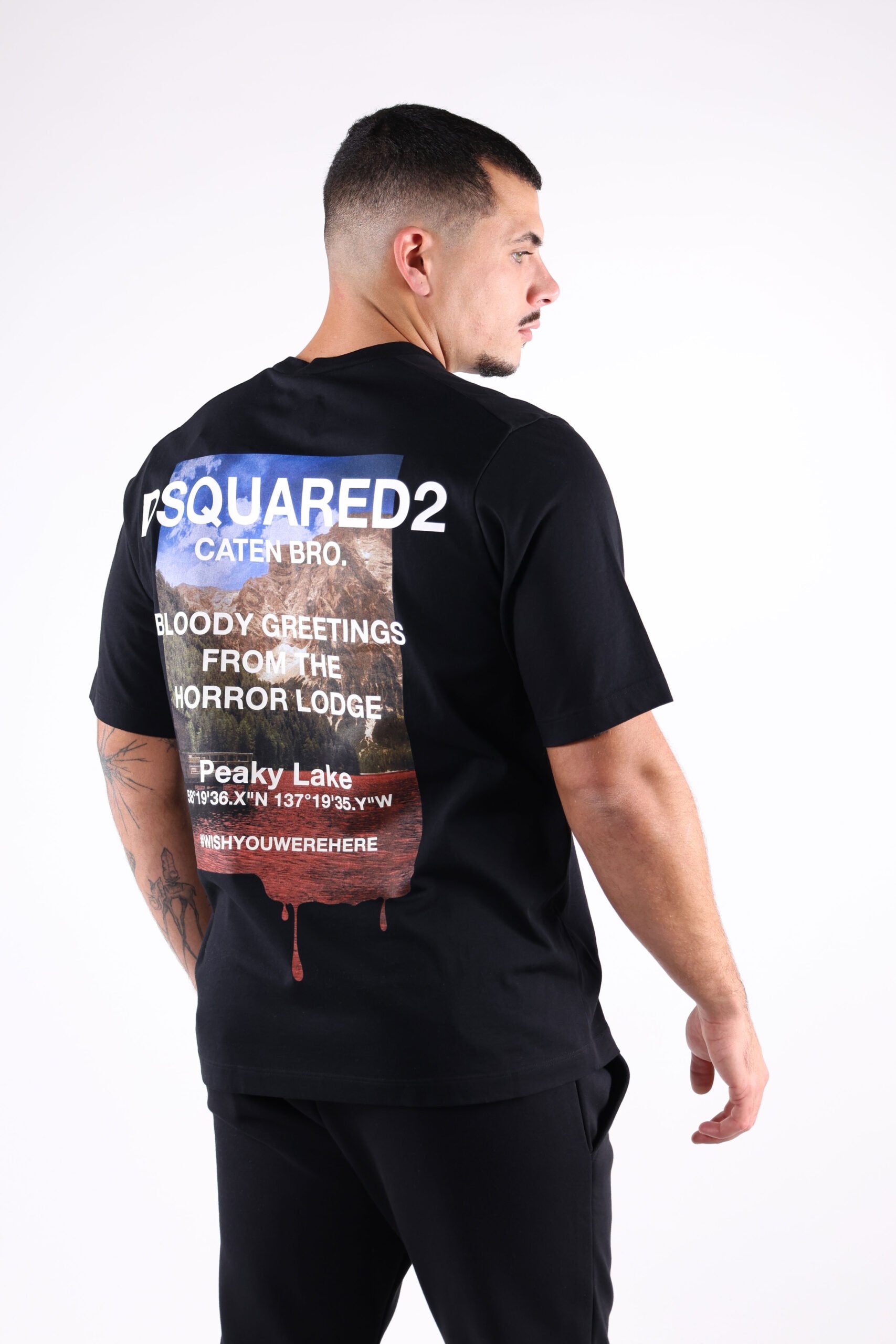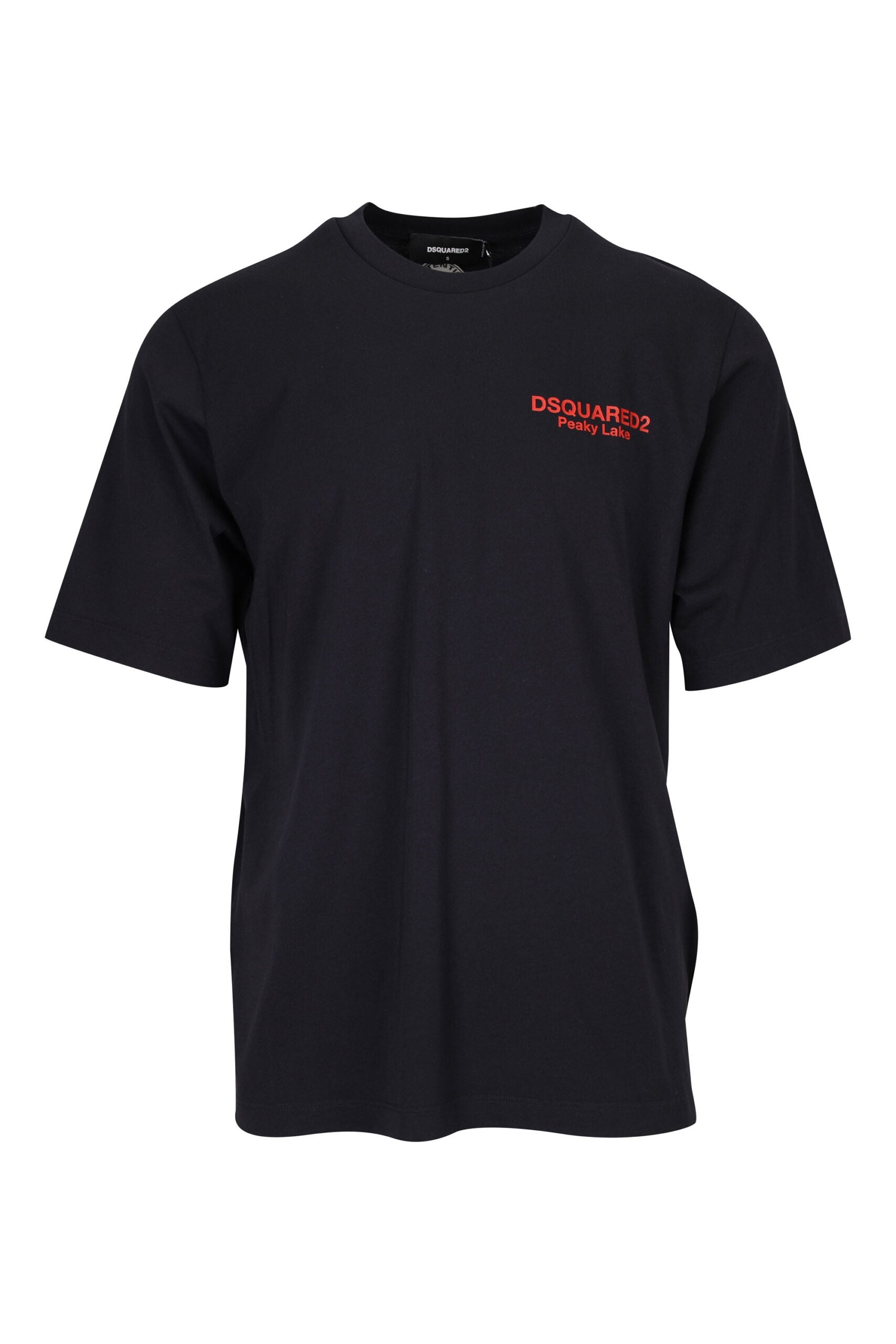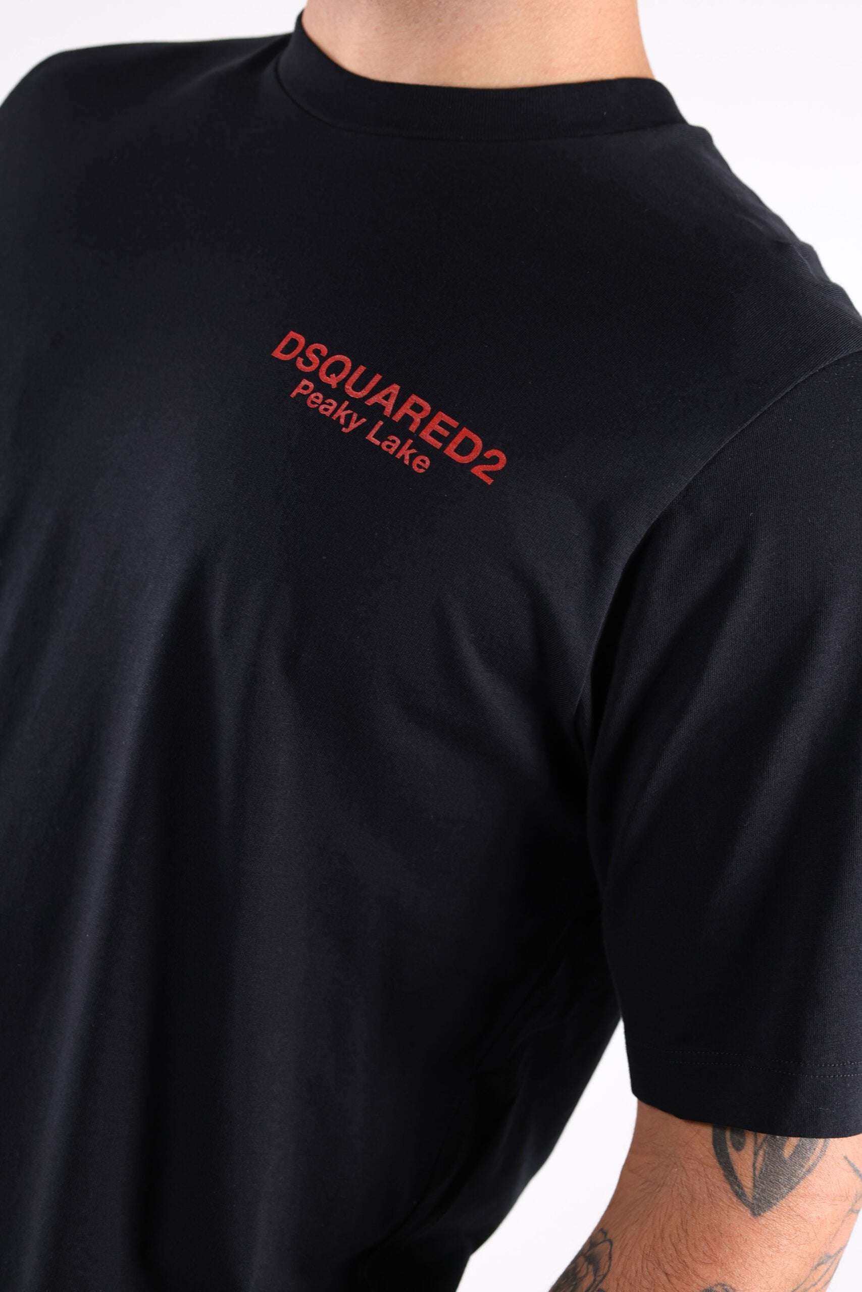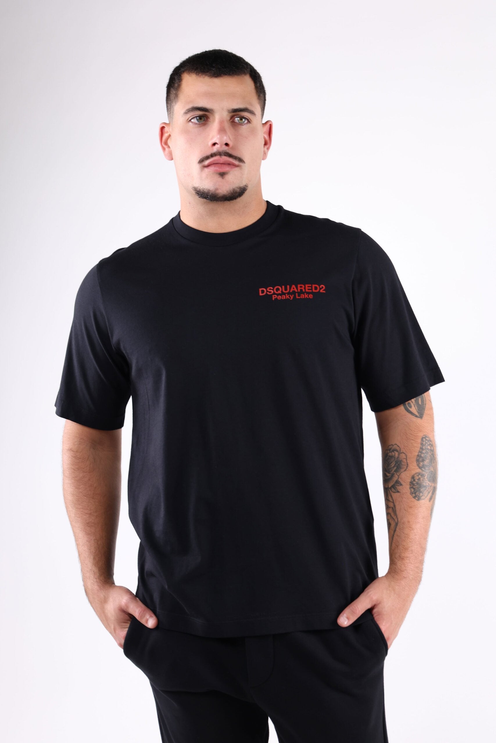 Camiseta negra con minilogo rojo y estampa en espalda "Peake Lake" - XXL