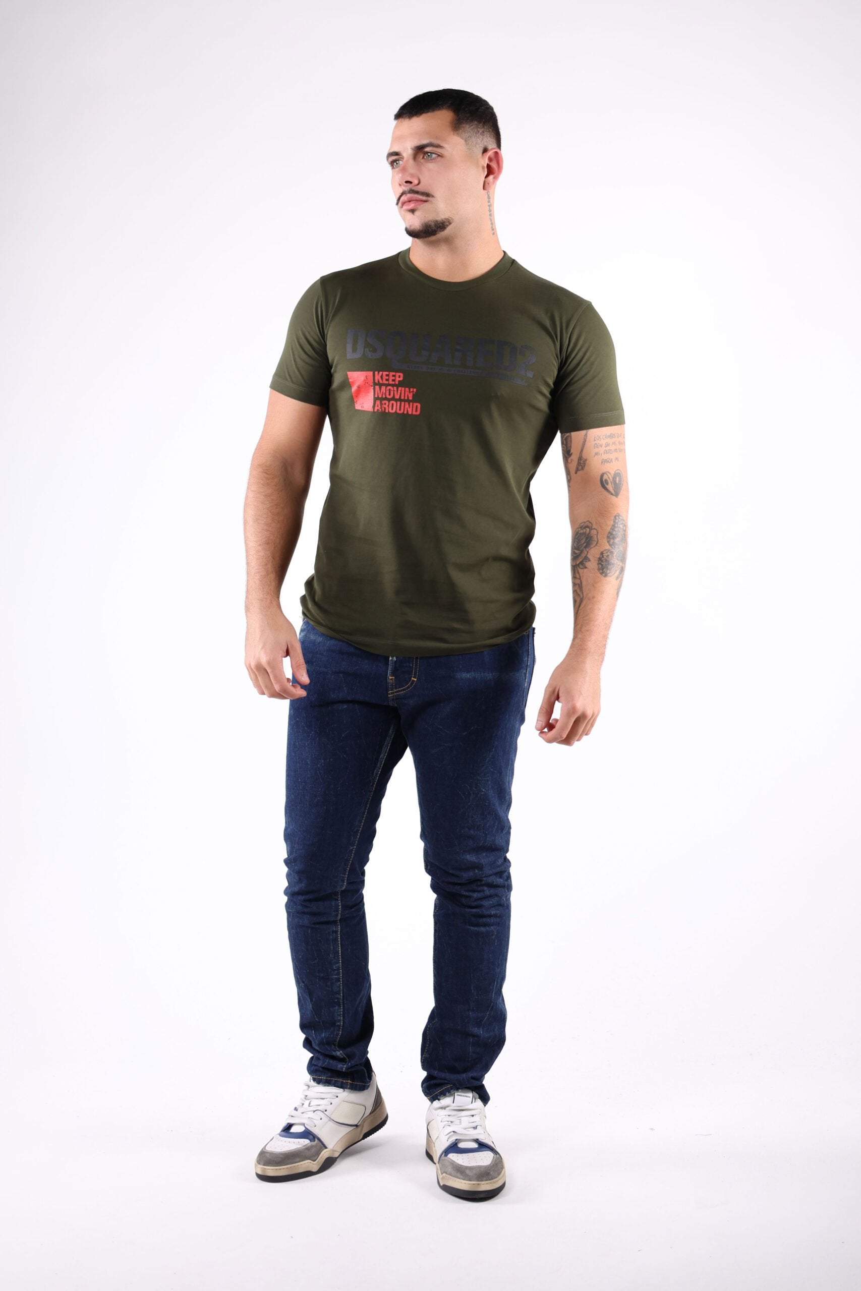 Camiseta verde militar con maxilogo "keep moving around" - XL