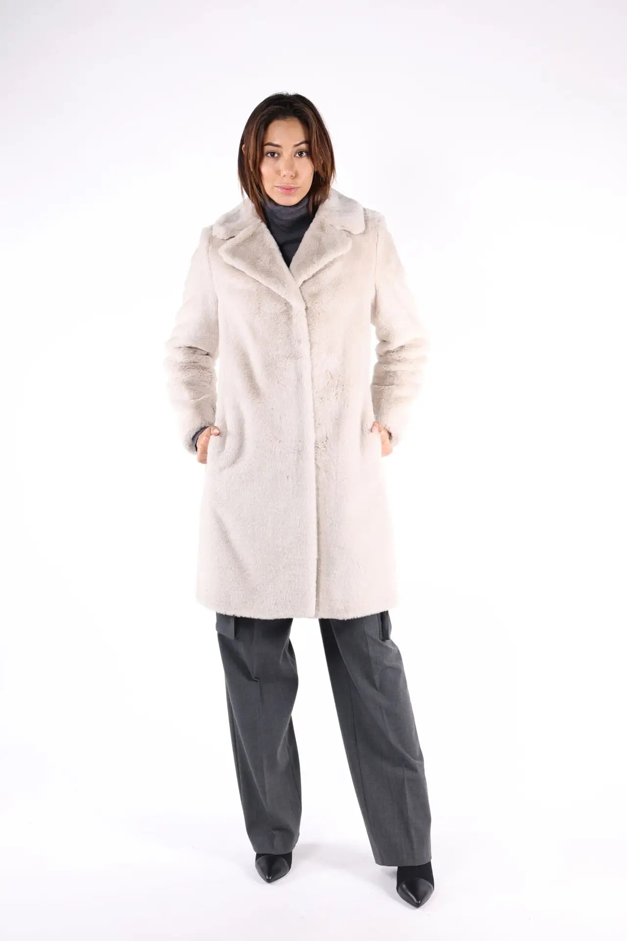 Abrigo beige de cuello alto "SOFT FAUX FUR" - 40 -