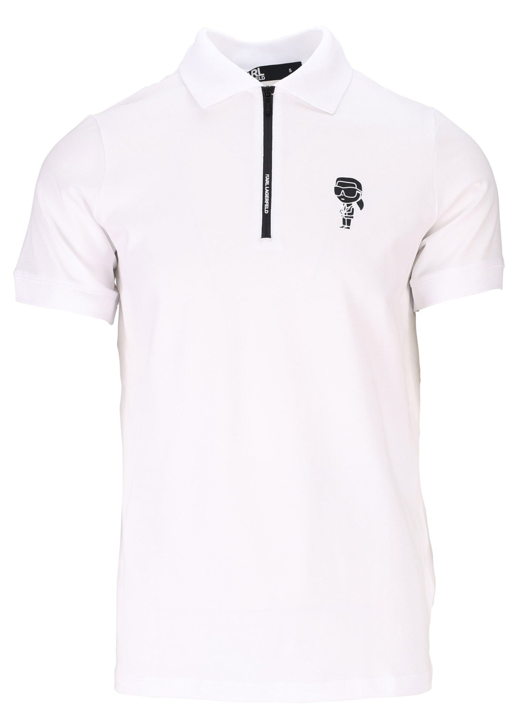 Polo blanco con cremallera y minilogo "karl" en negro - XL