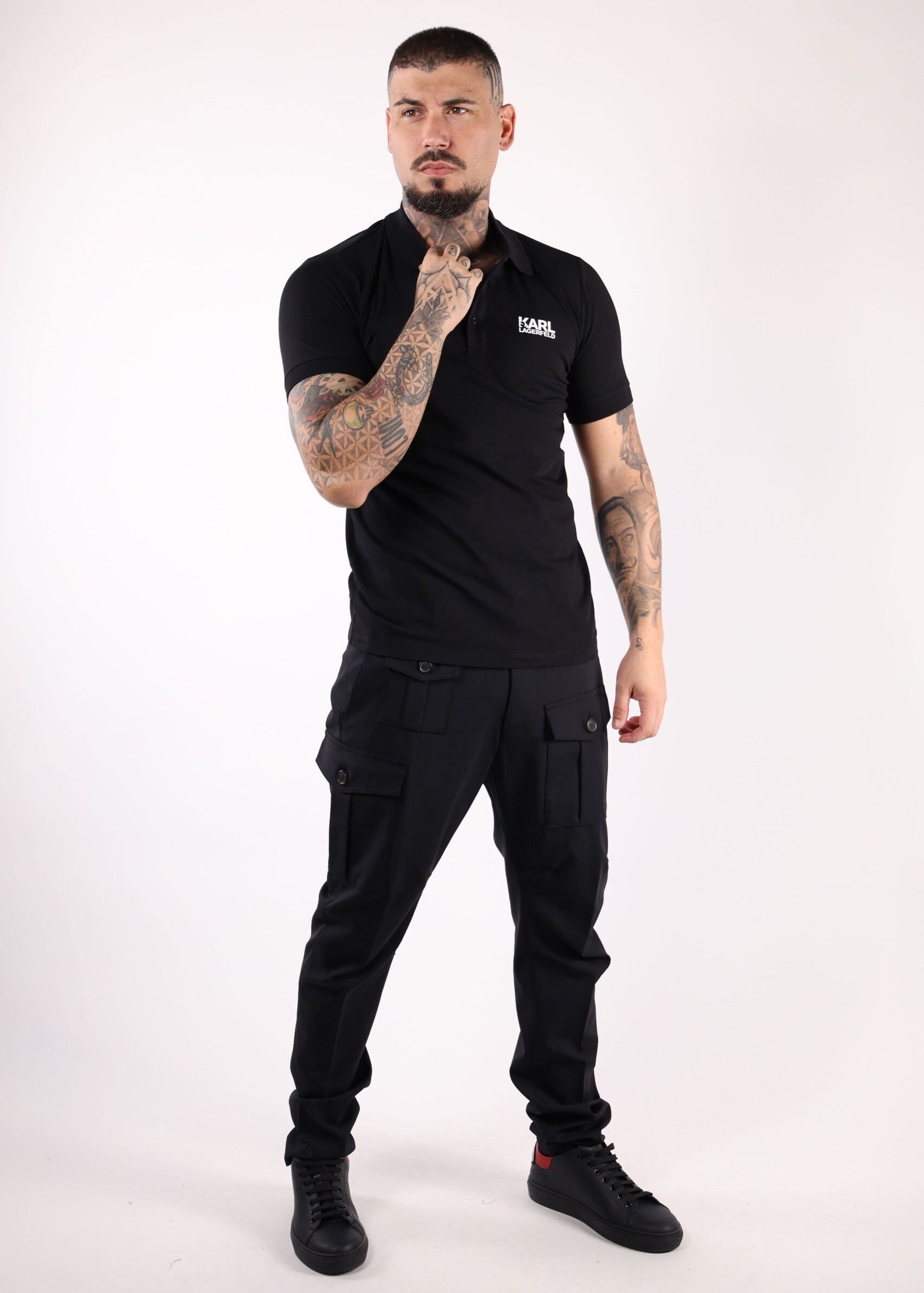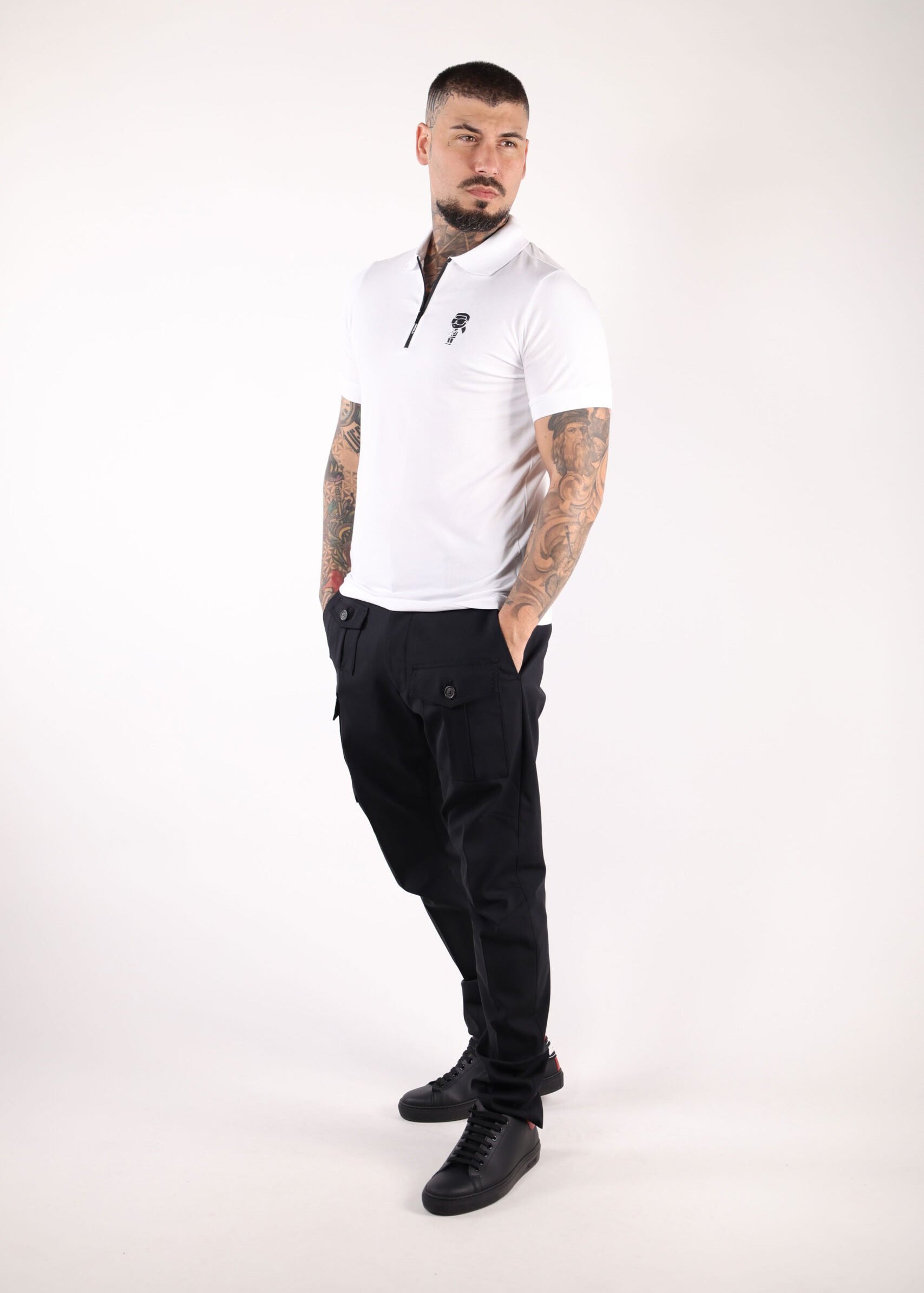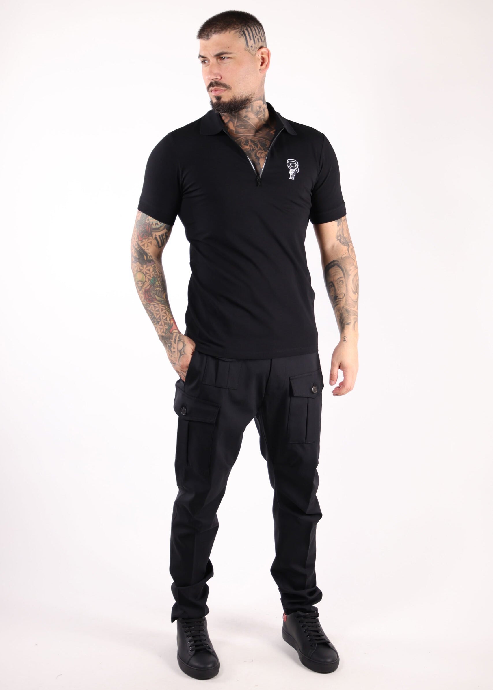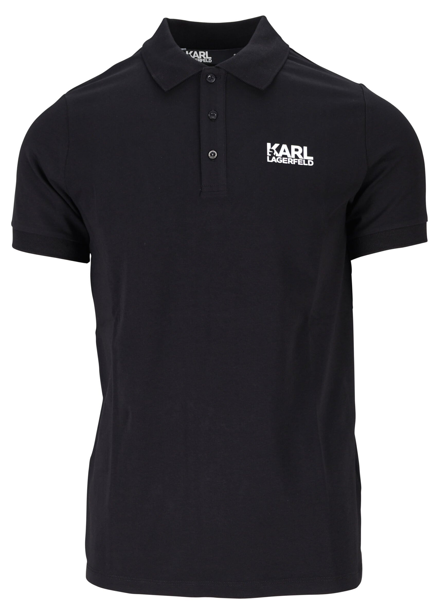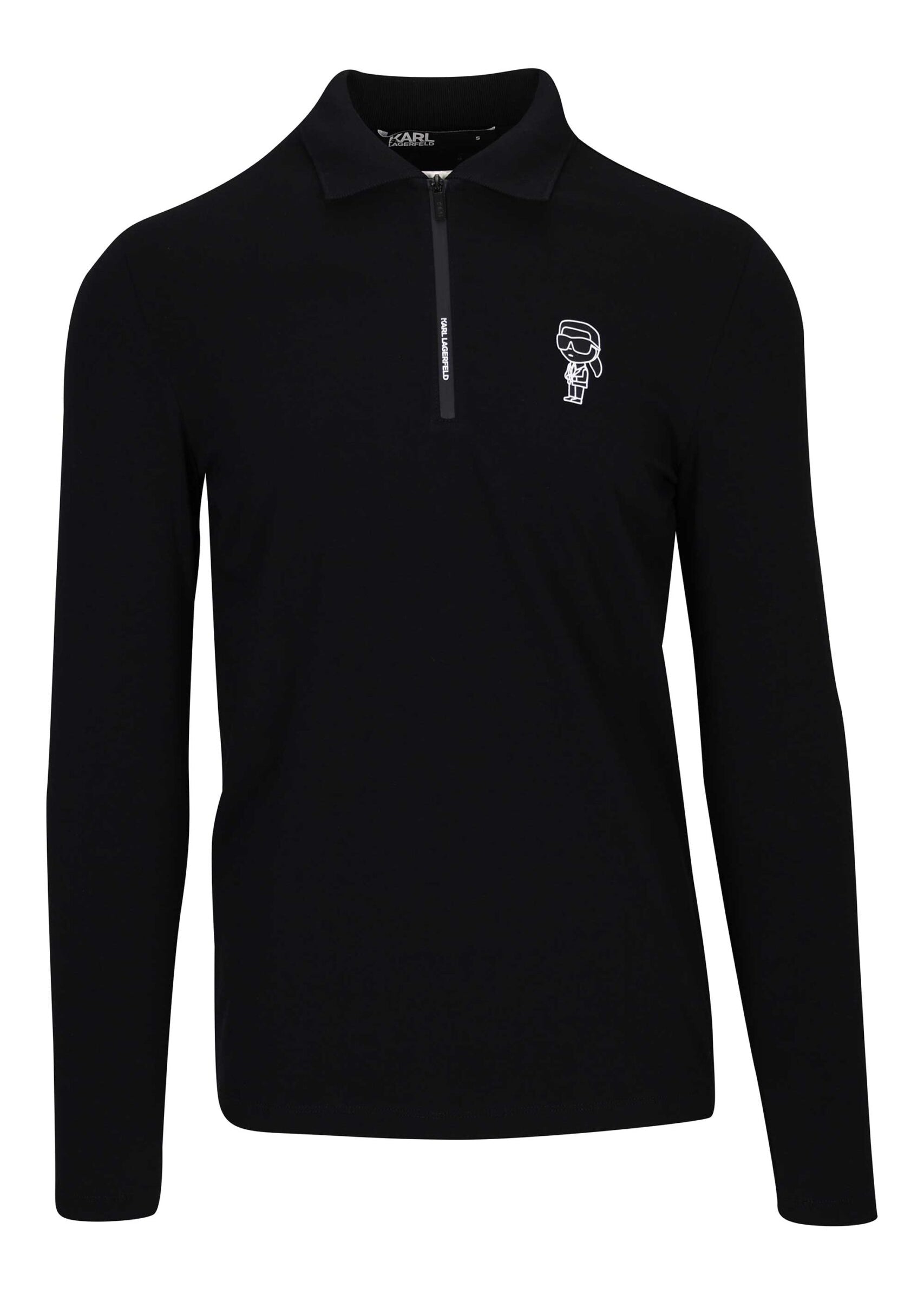 Polo negro con cremallera y minilogo "karl" en blanco - S