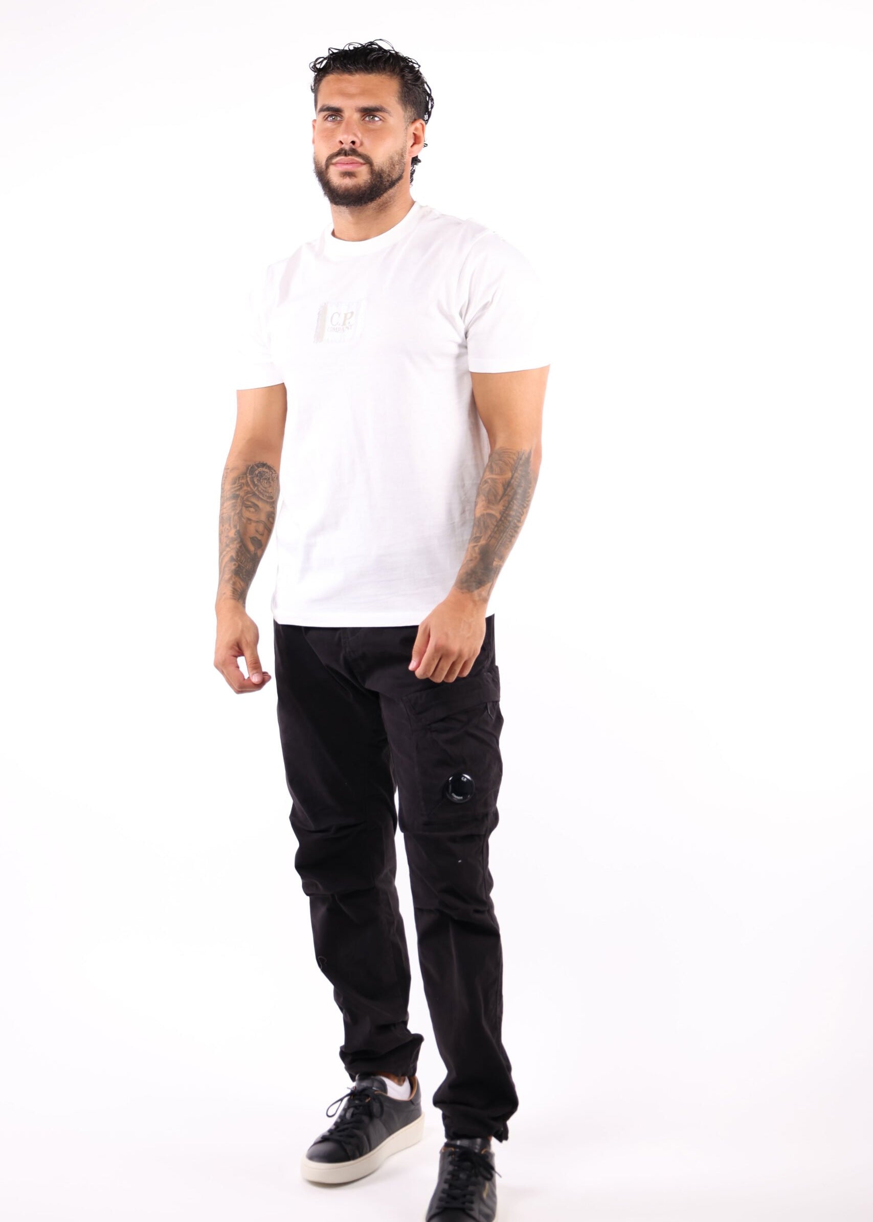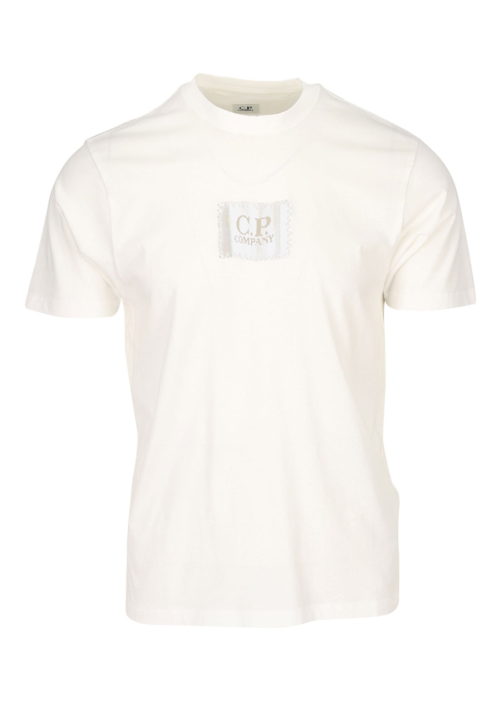 Camiseta blanca con logo gráfico etiqueta "cp" centrado - L