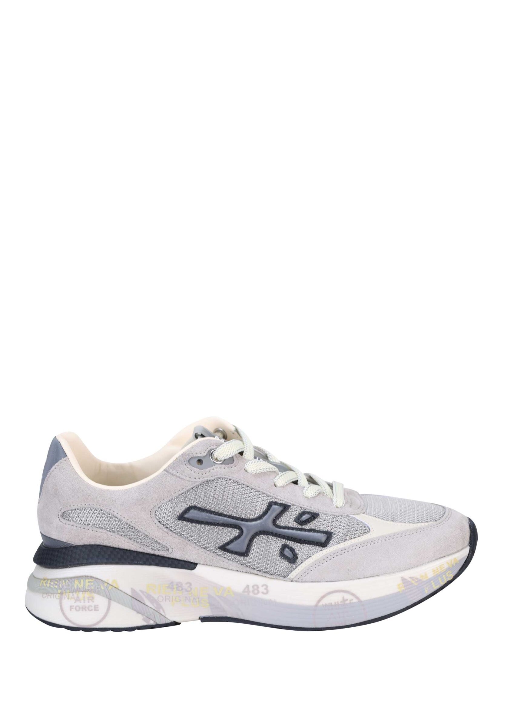 Zapatillas grises con azul y etiqueta "MASE 6621" -