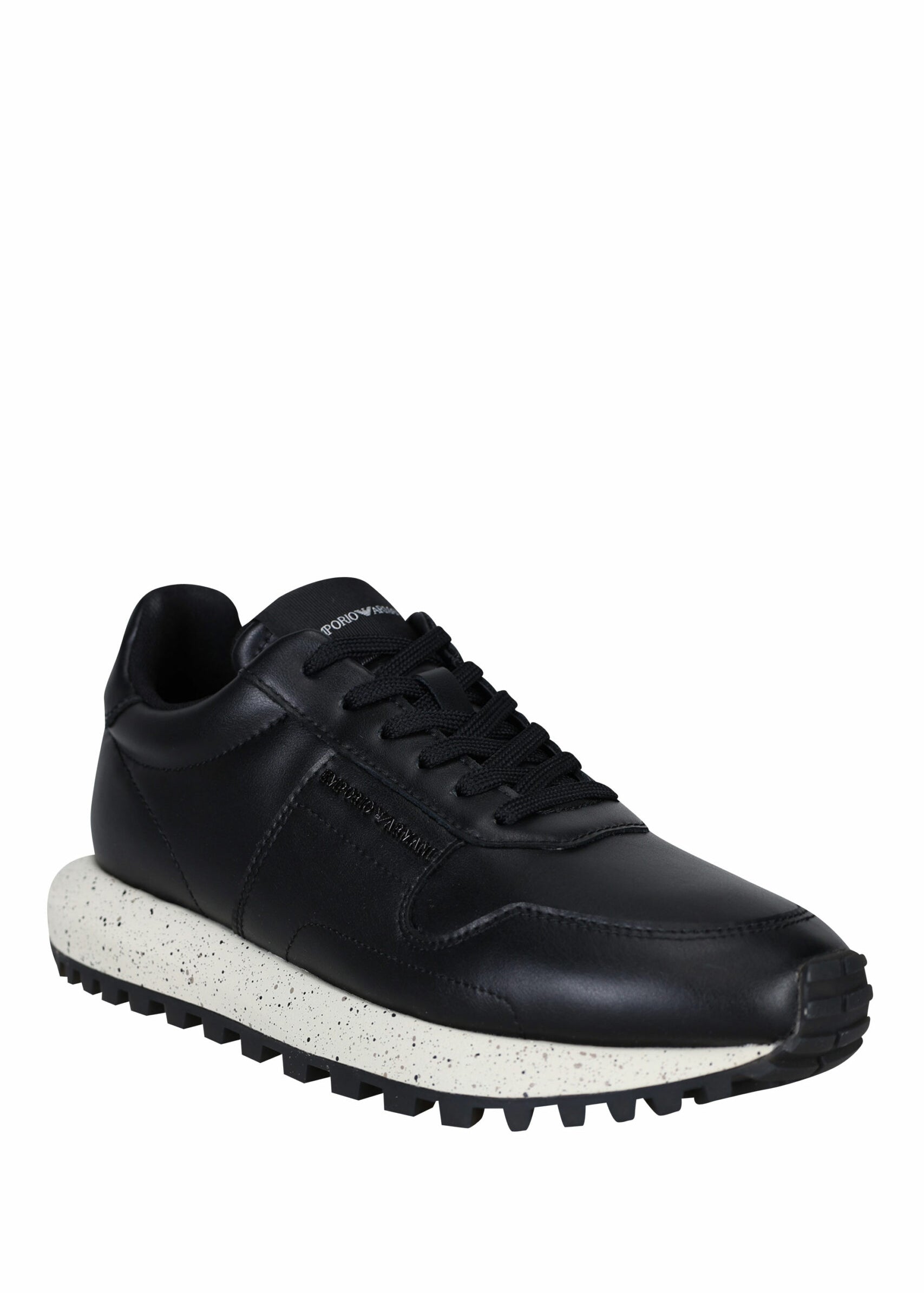 Black breathable sneakers with white "lux identity" logo and two-tone sole