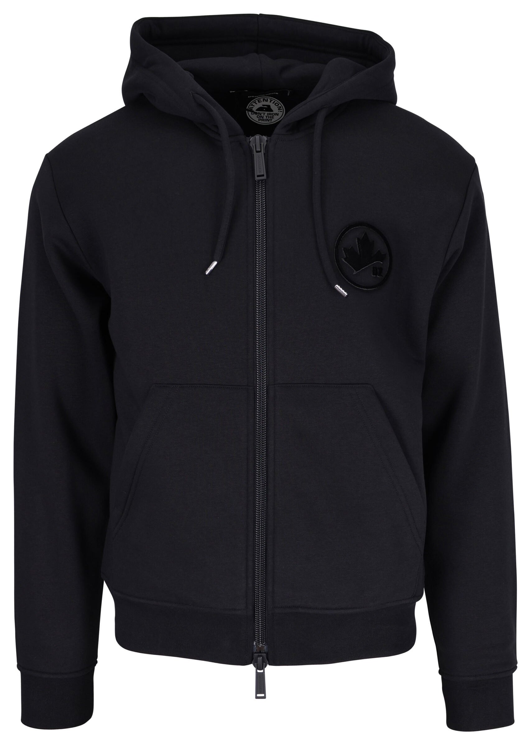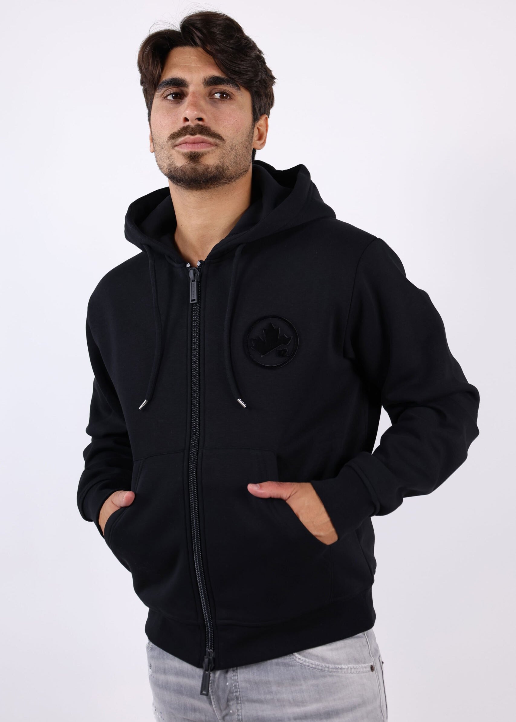 Sudadera negra con capucha y cremallera con minilogo hoja en relieve monocromática - L