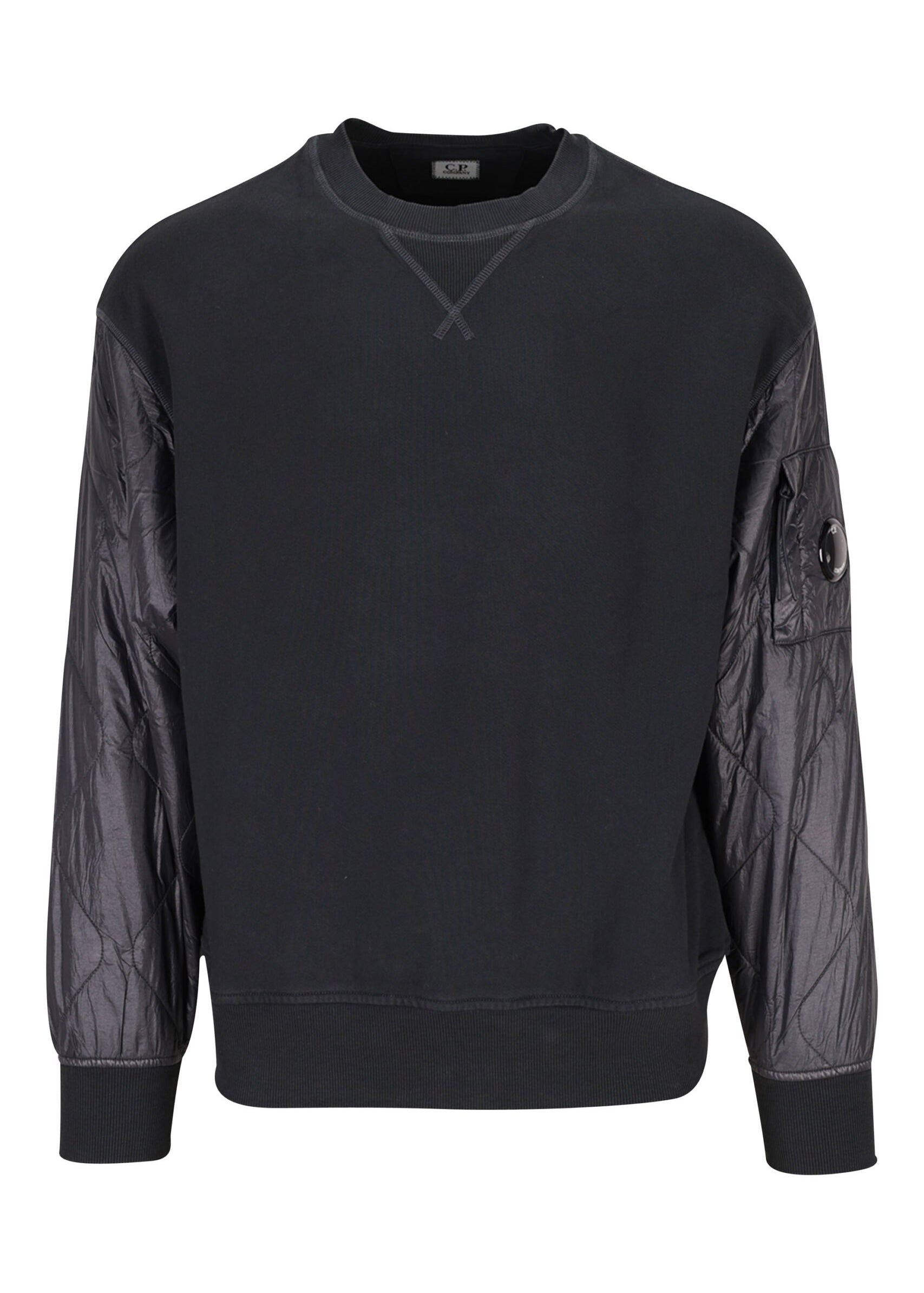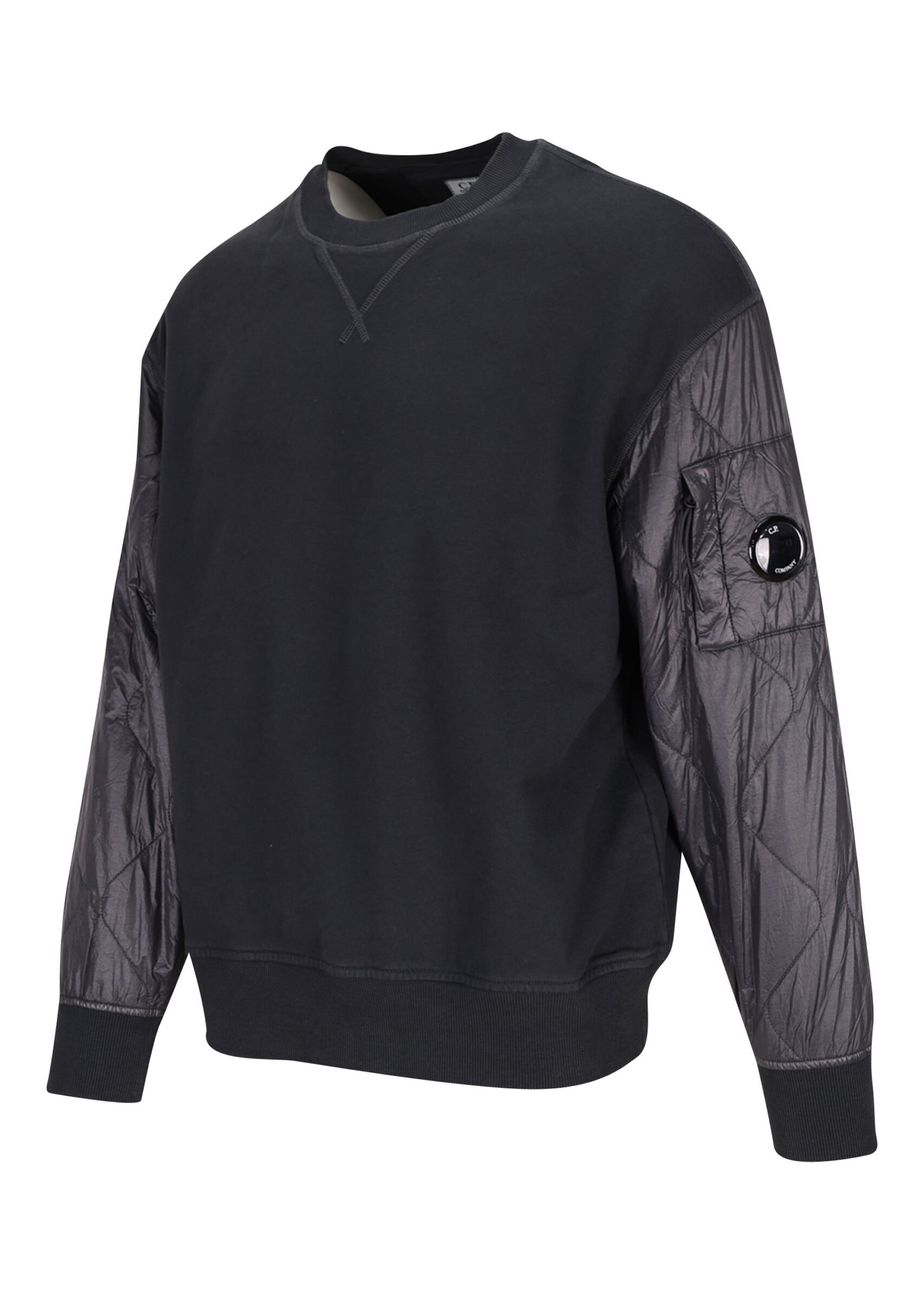 Sudadera negra acolchado mixto polar de cuello redondo con relieve diagonal - L