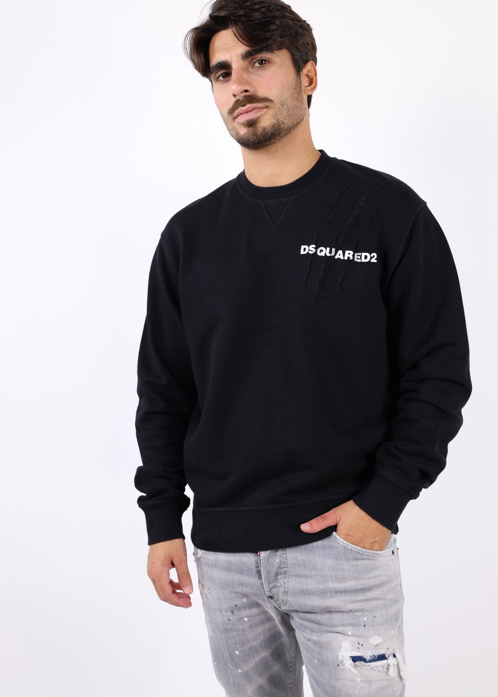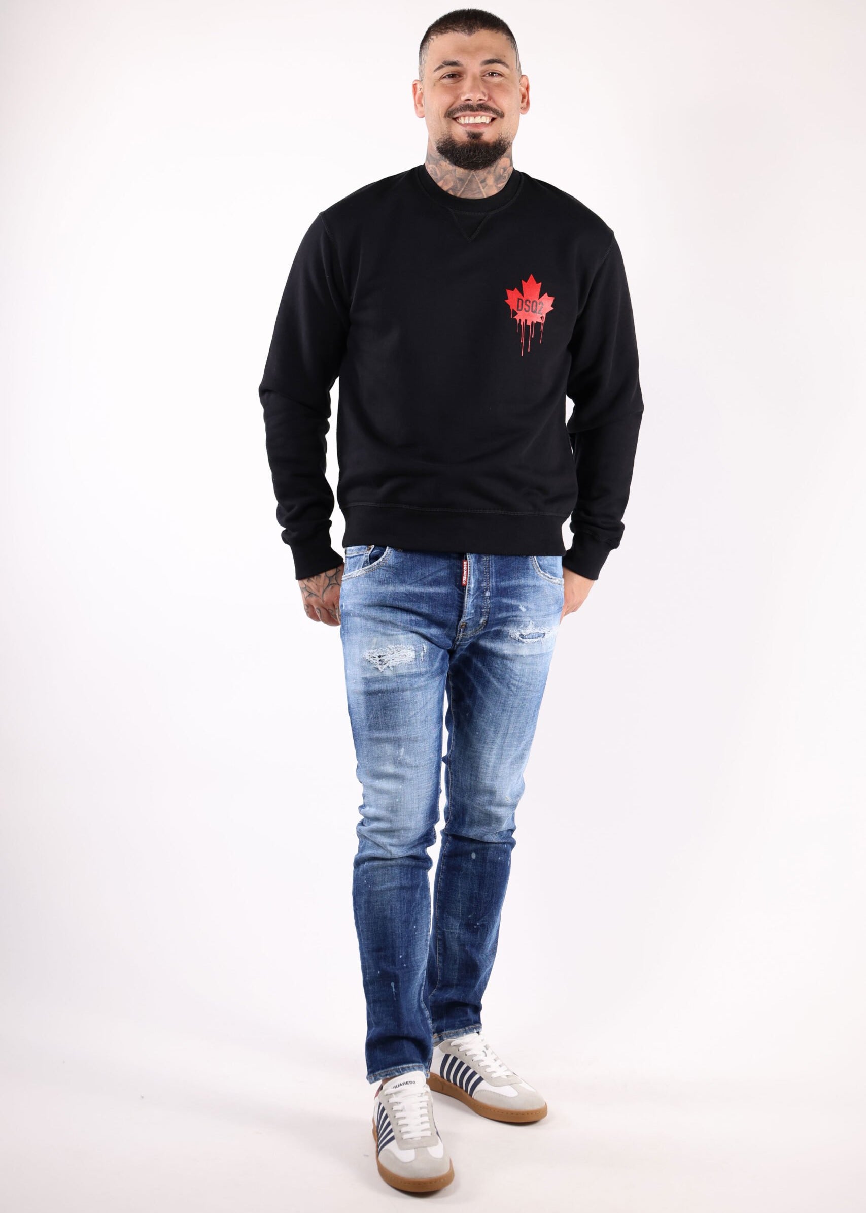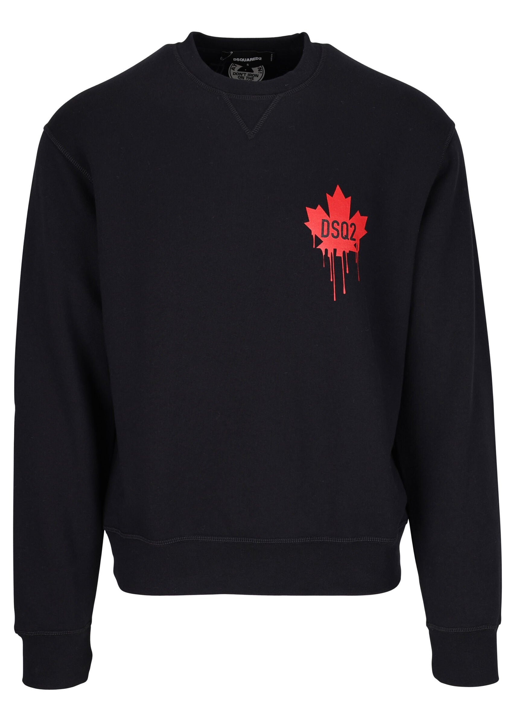 Sudadera negra con minilogo hoja monocromático en goma - S