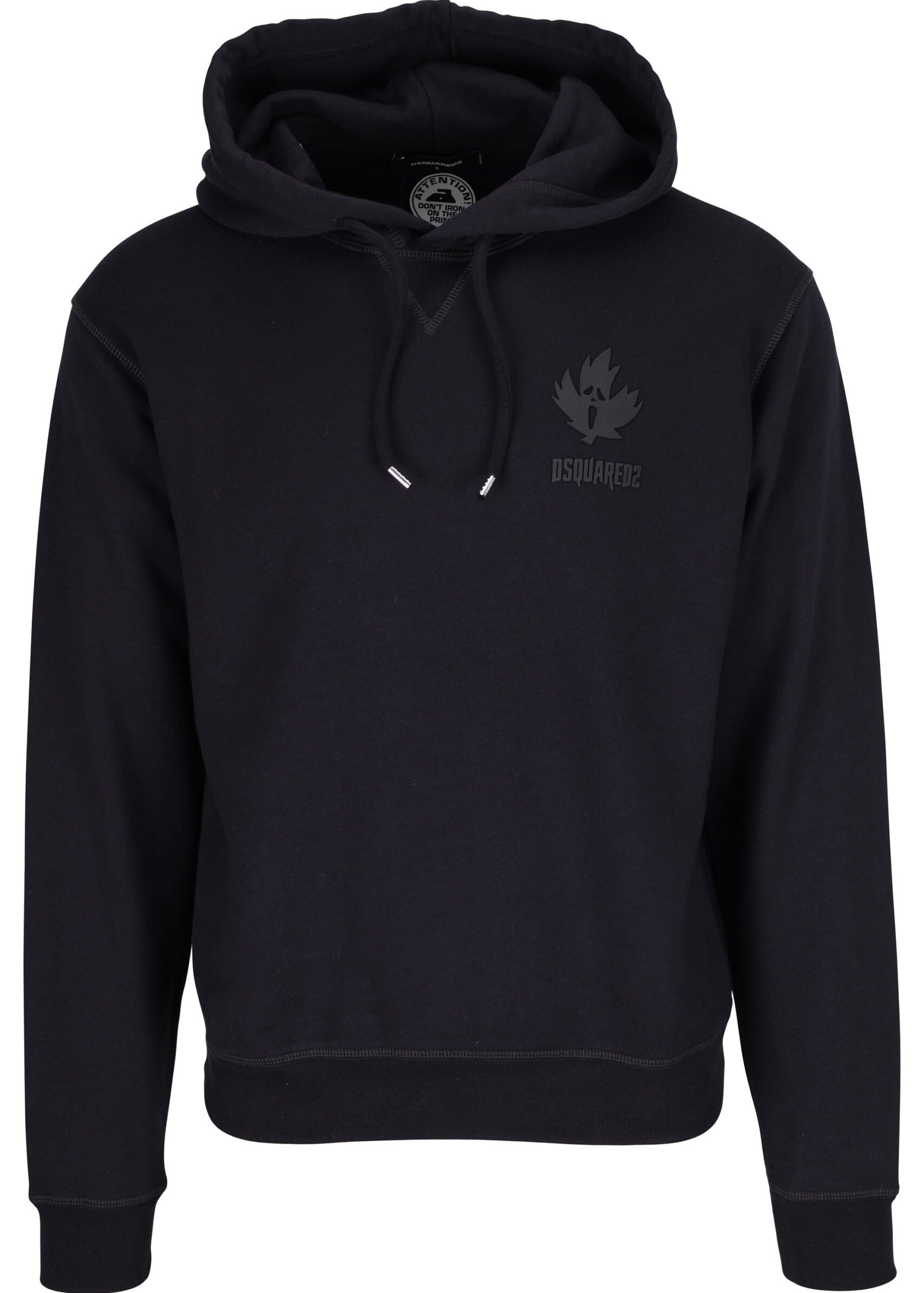 Sudadera negra con minilogo hoja monocromático en goma - XXL