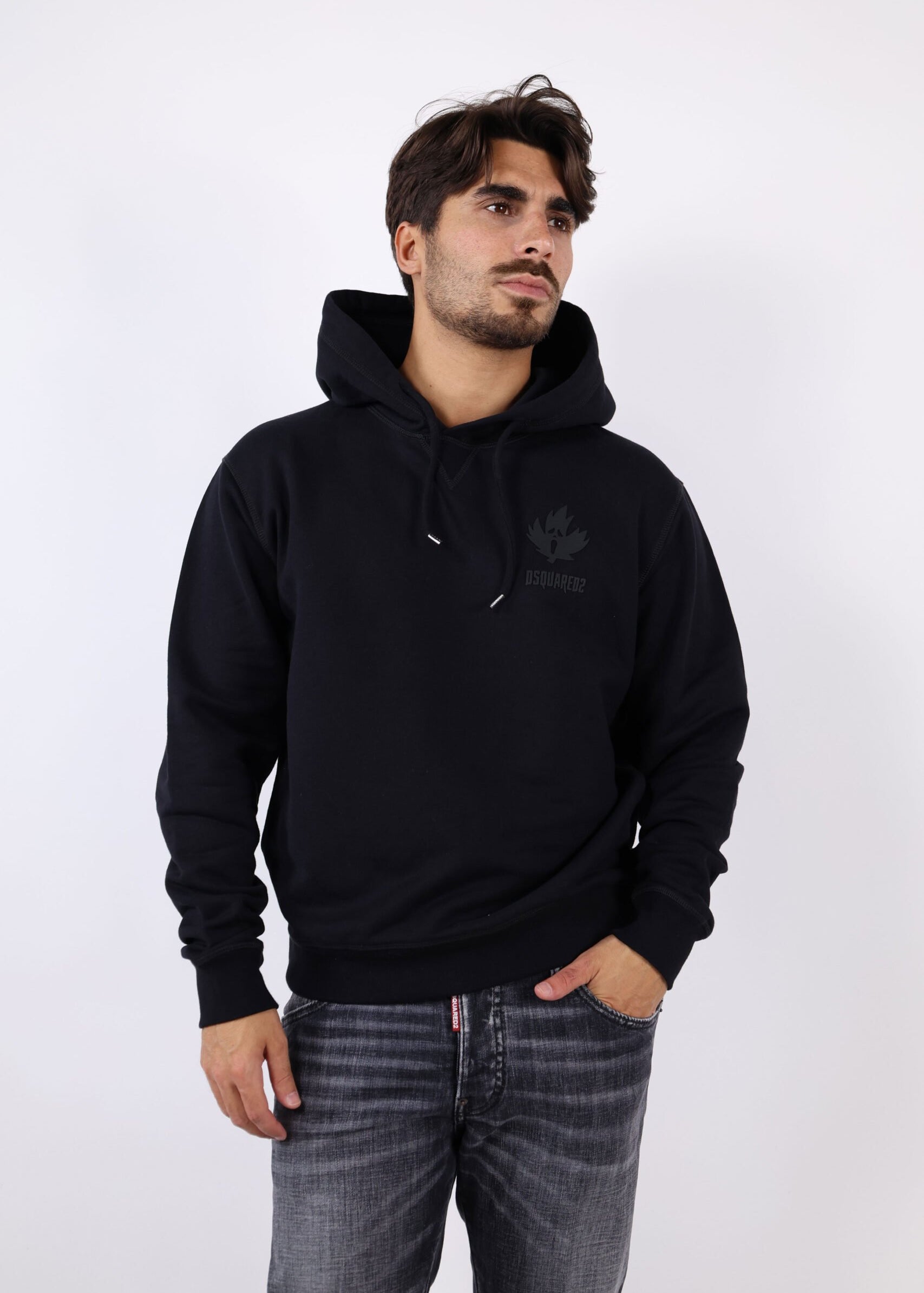 Sudadera negra con minilogo hoja monocromático en goma - M