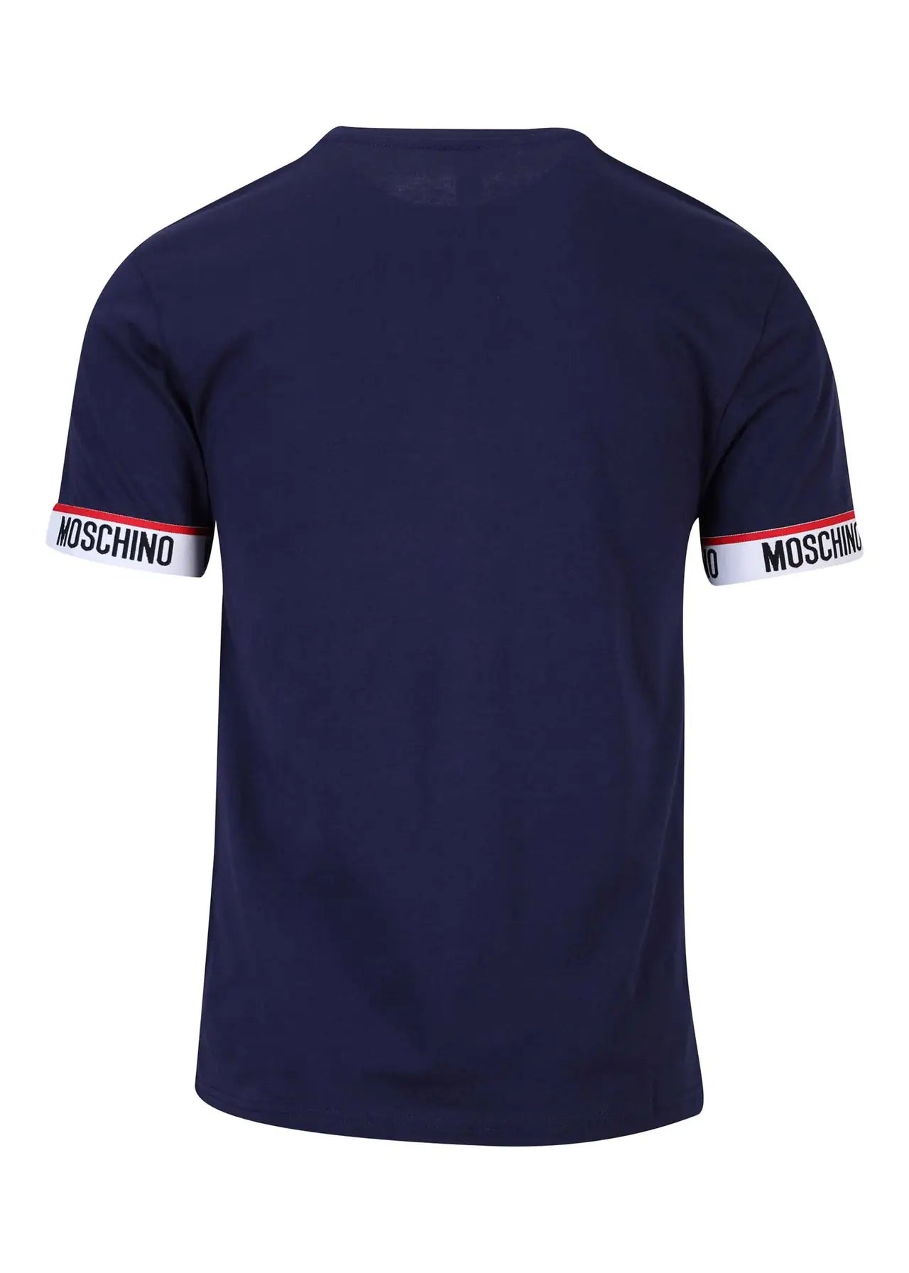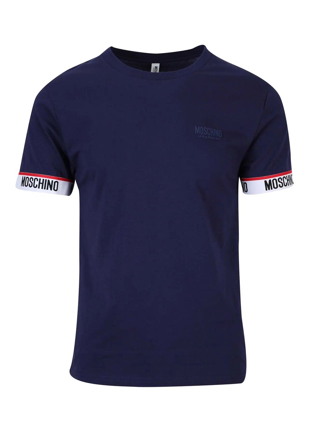 Camiseta azul con logo y línea roja en mangas - L