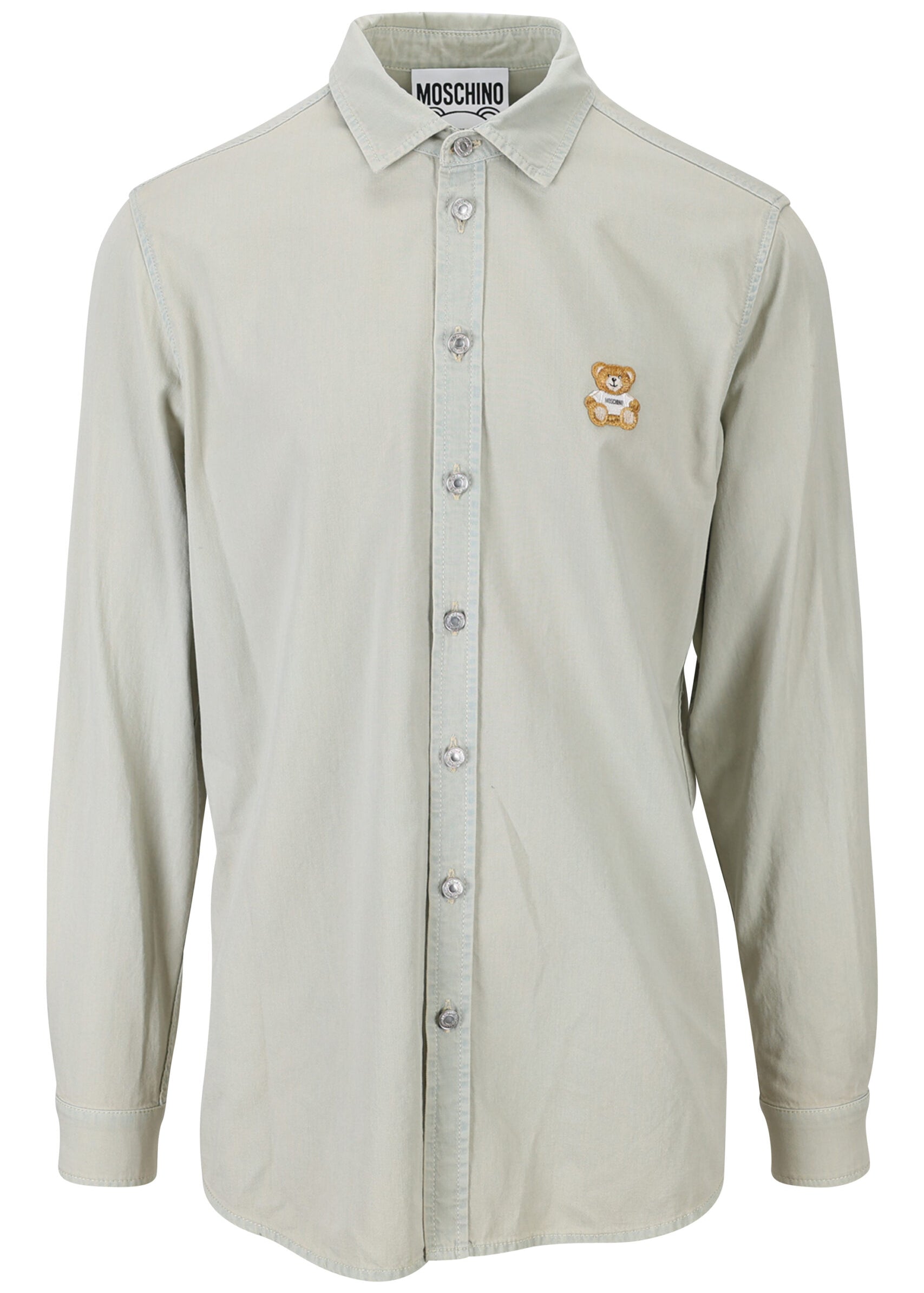 Faded gray denim shirt with bear logo